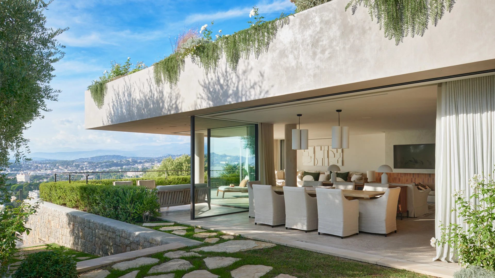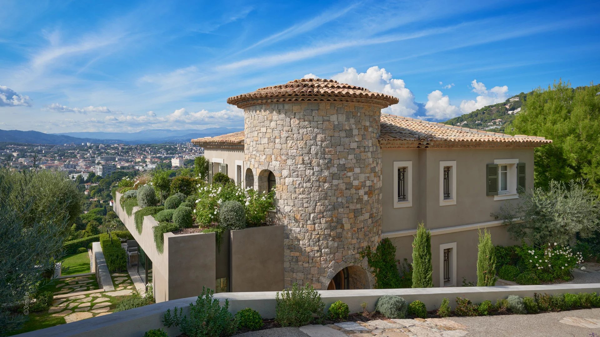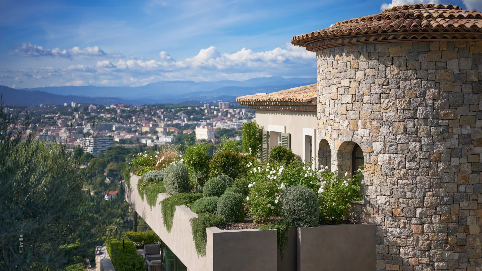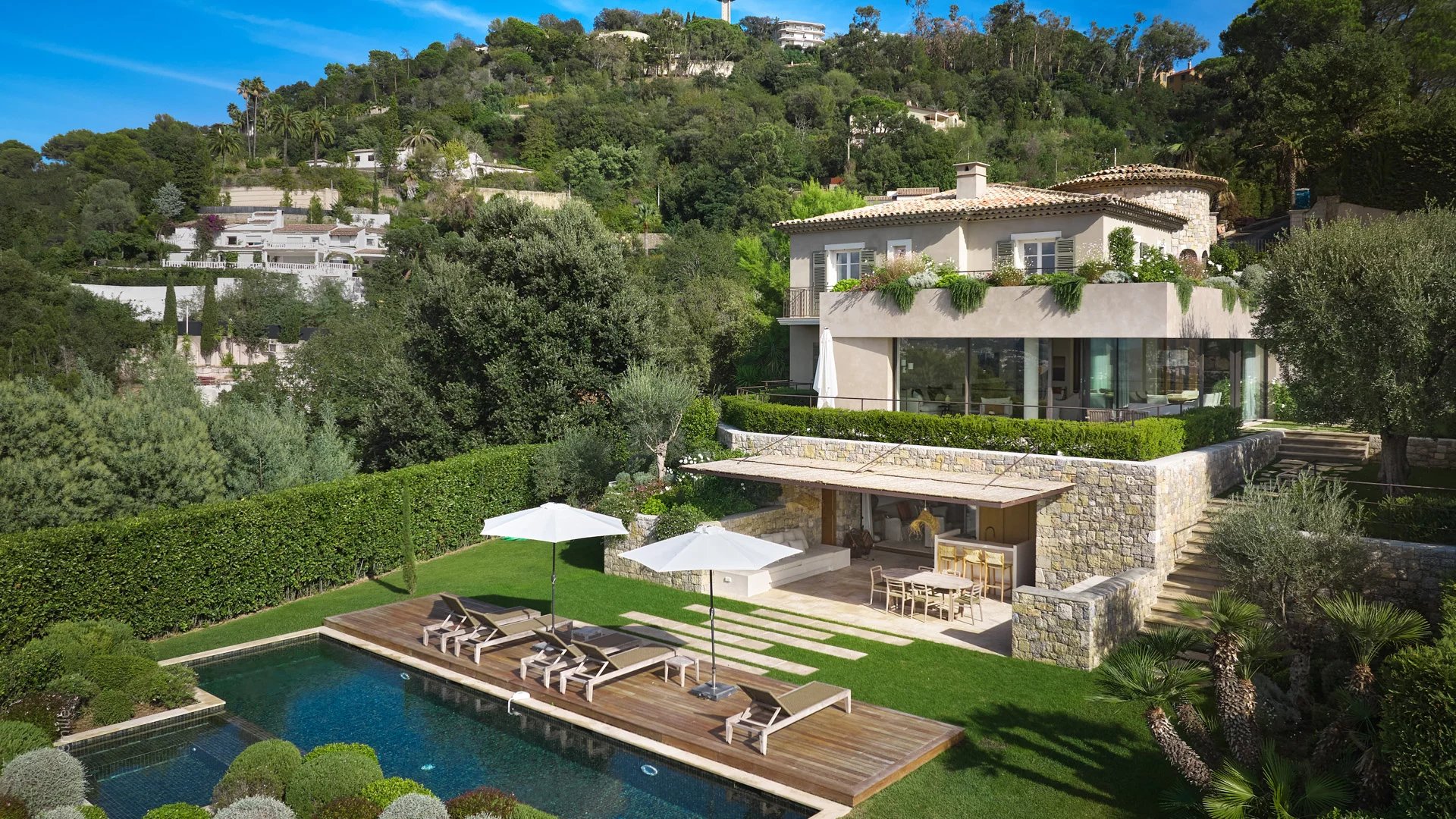 Dans un domaine privé sur les hauteurs de Cannes, élégante propriété, entièrement rénovée et climatisée, jouissant d'une belle vue sur la Baie de Cannes.