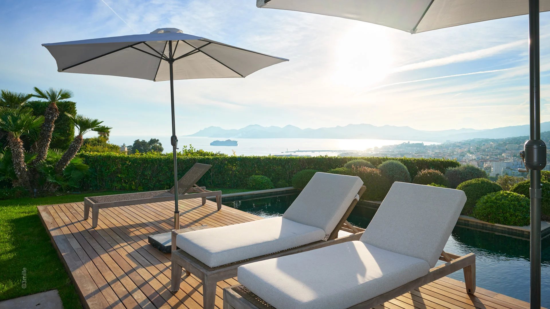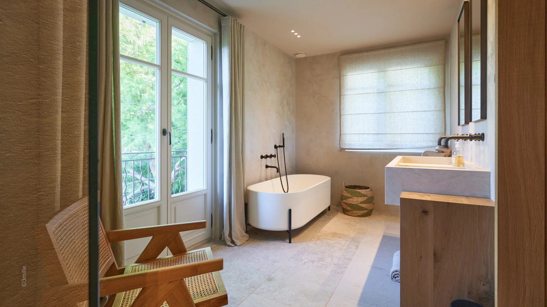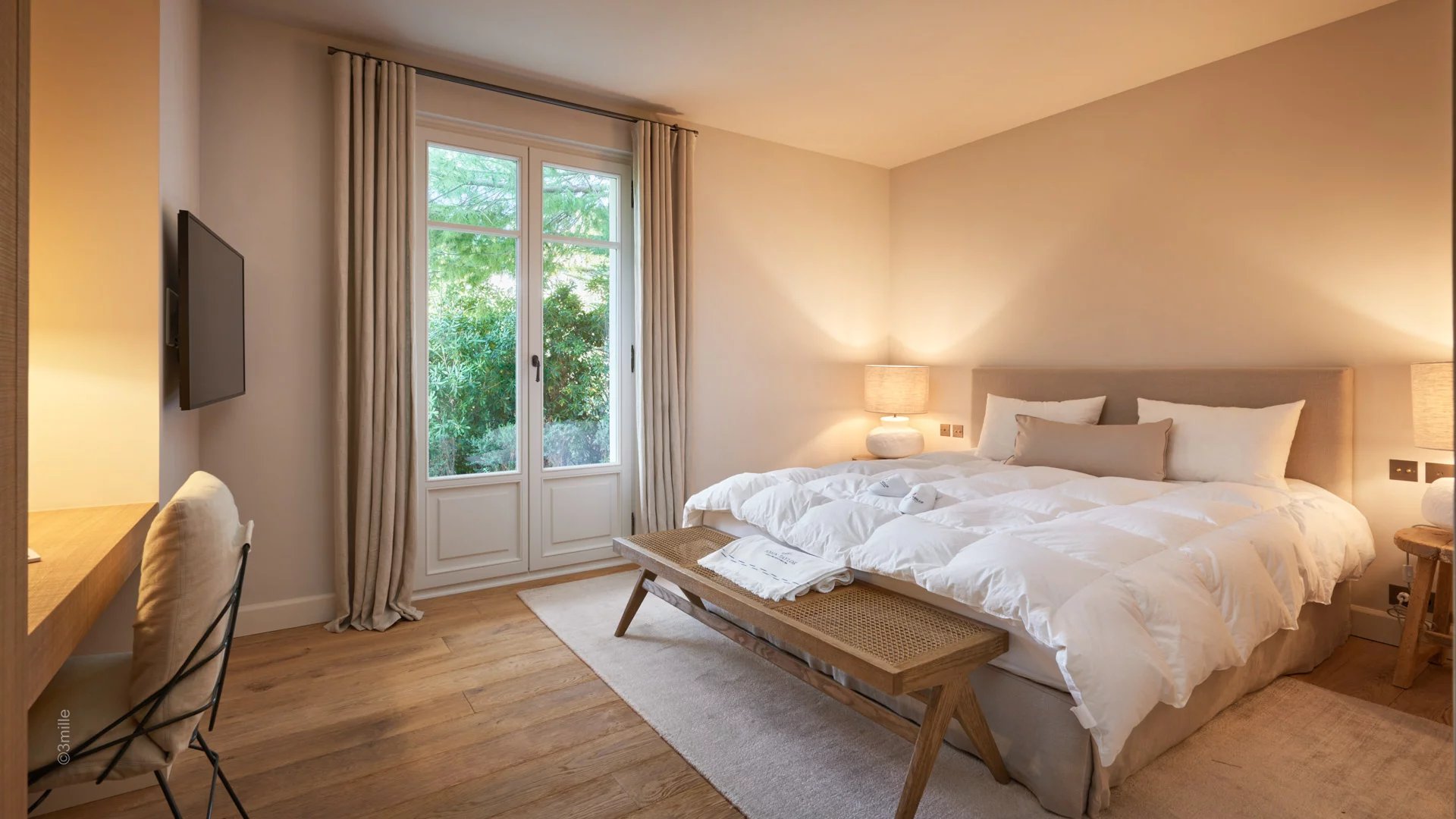 Suite de Maître s'ouvrant sur une terrasse privative (avec salon d'été) comprenant chambre, grand dressing, bureau et salle de bains / douche / WC
