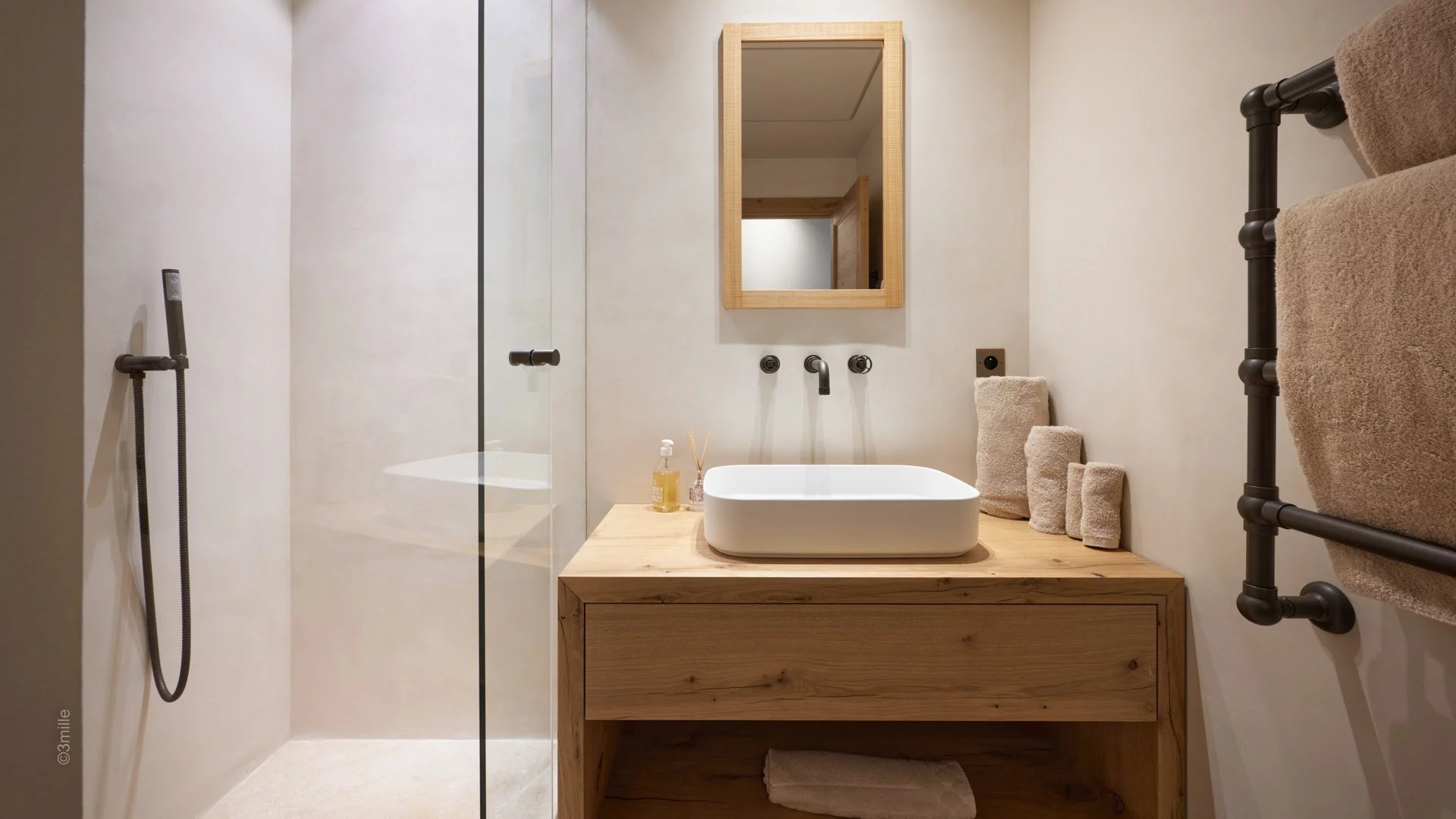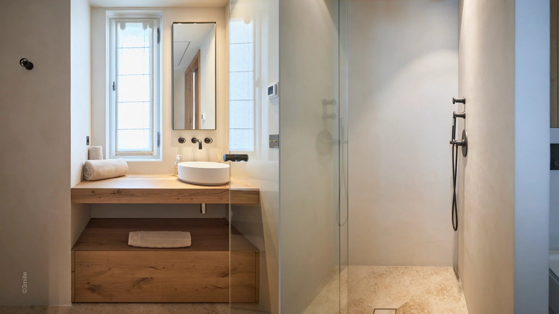 Chambre (lit double) s'ouvrant sur une petite terrasse - Dressing - Salle de bains / douche / WC