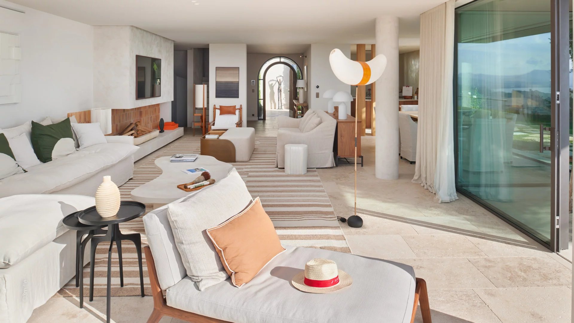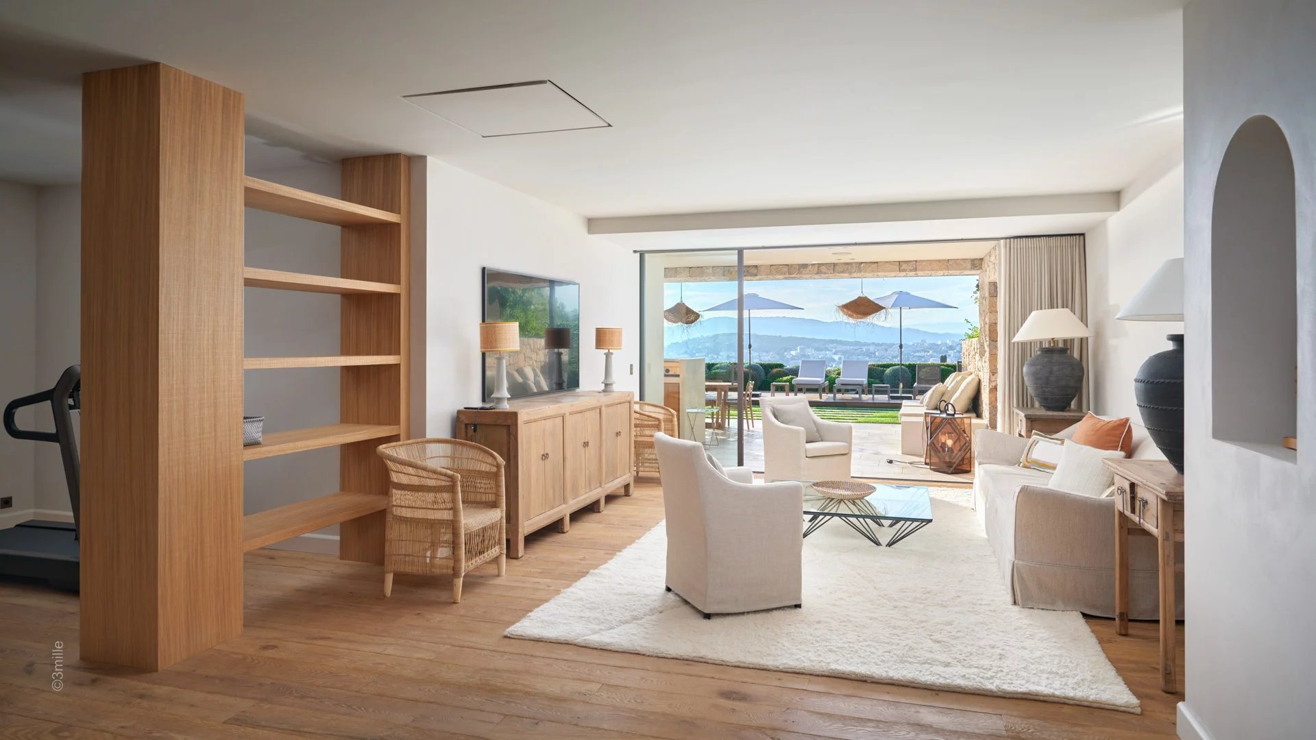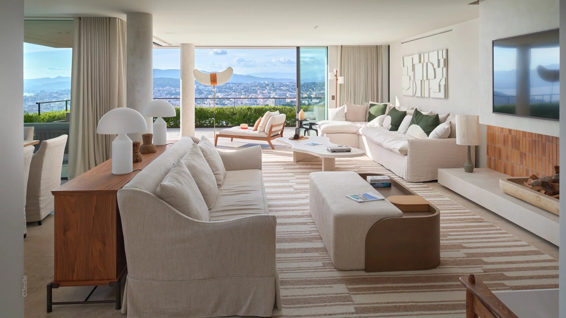 Grand salon - Salle à manger s'ouvrant sur terrasse, vue mer