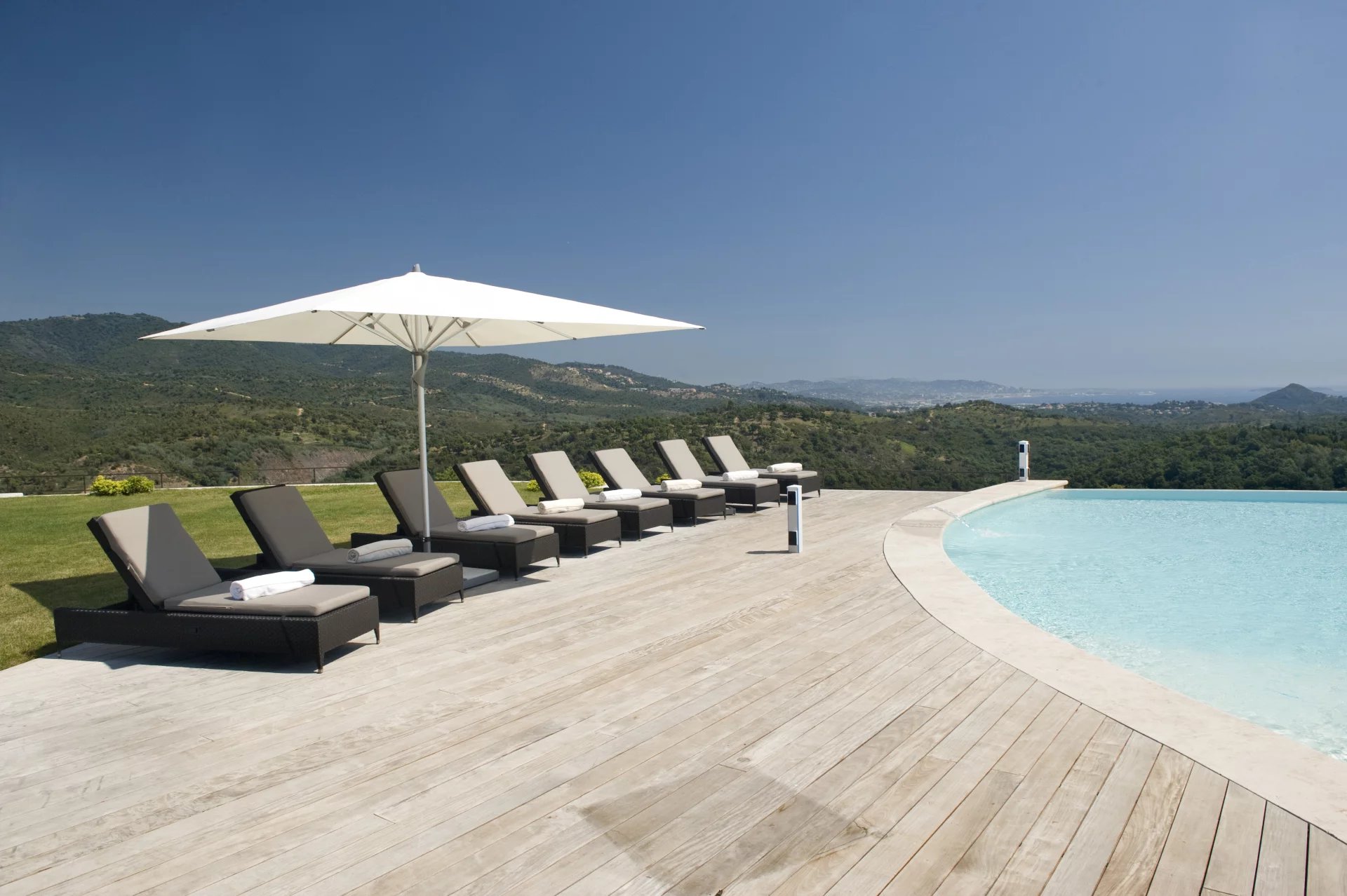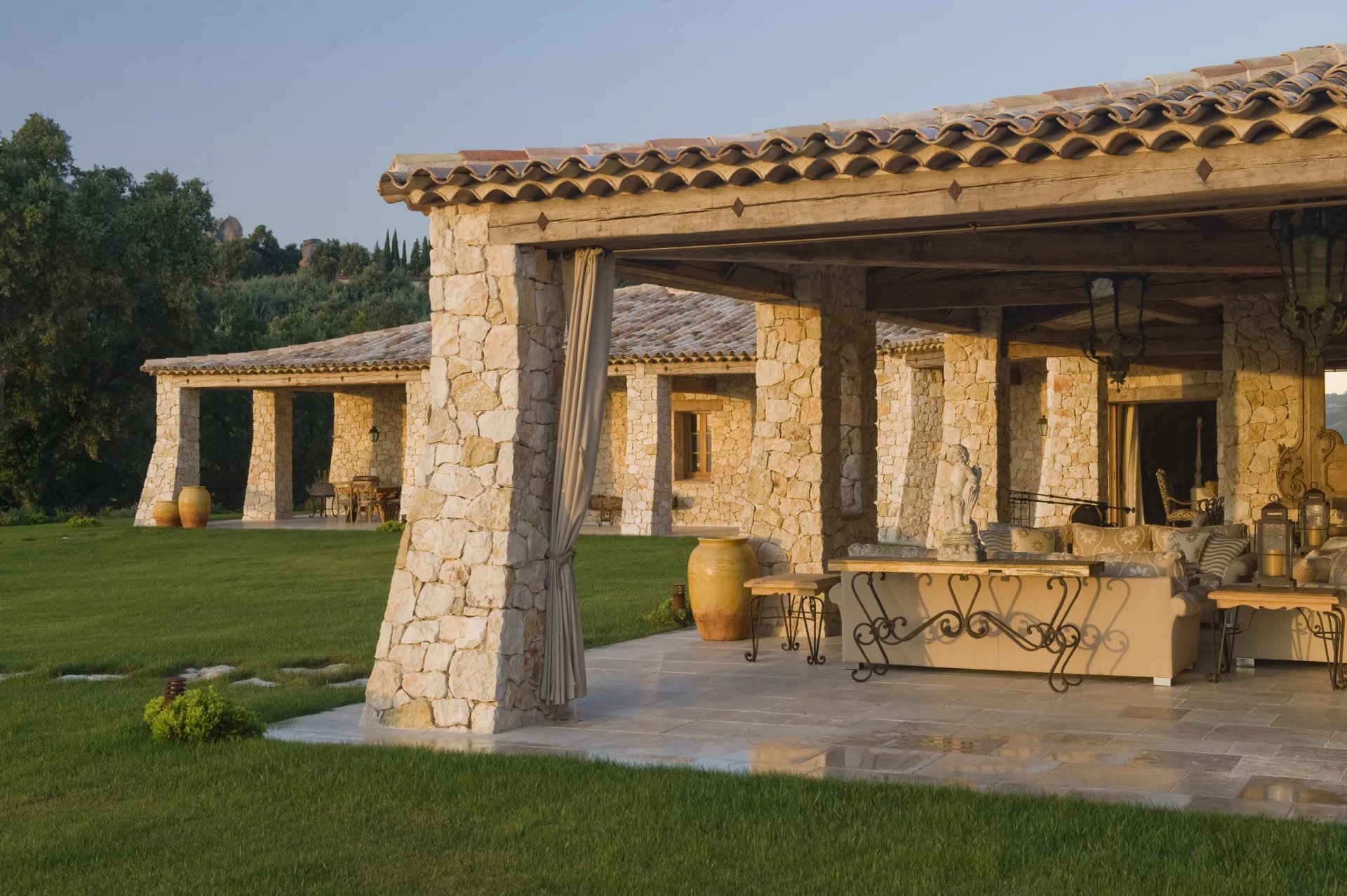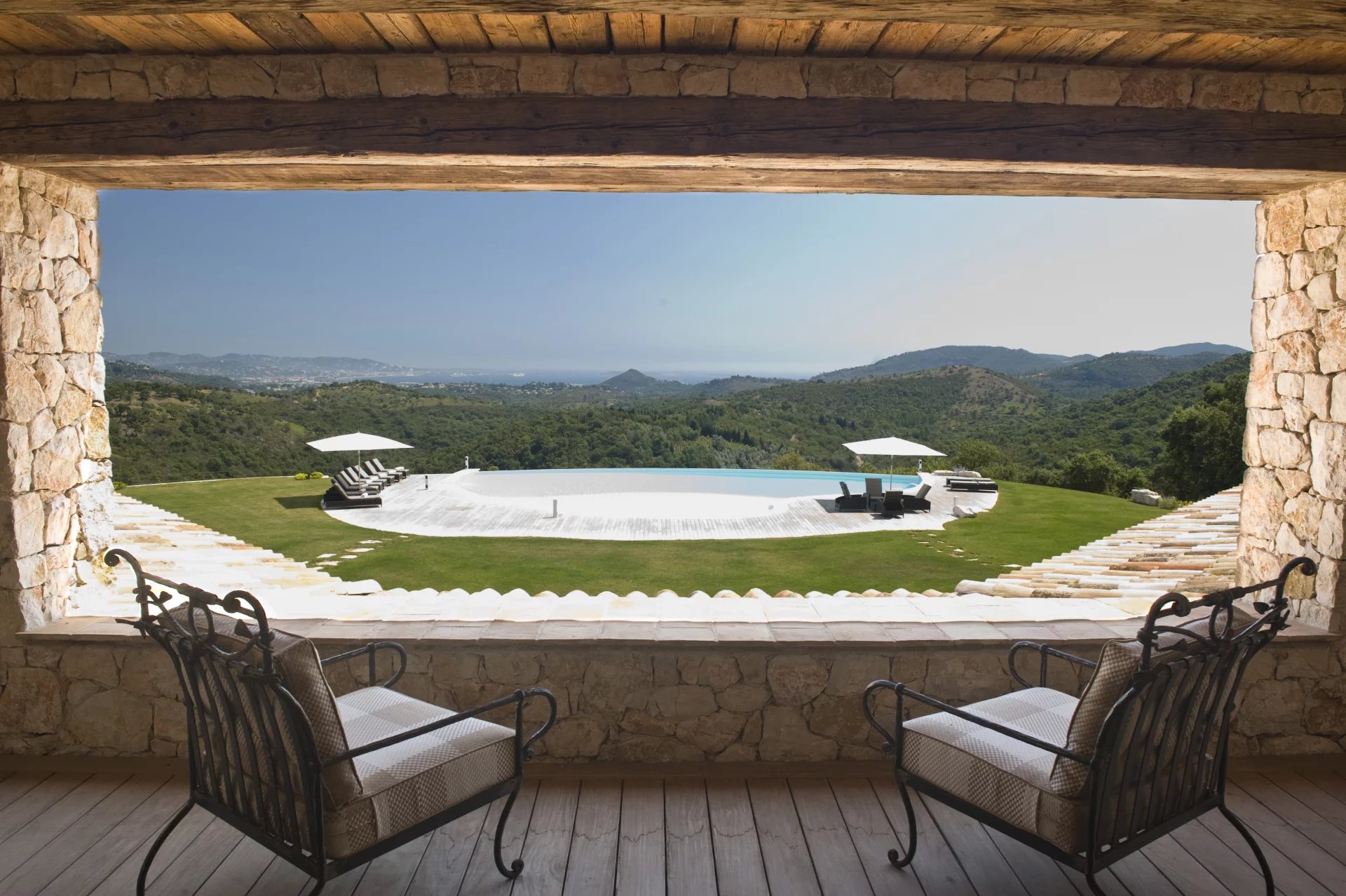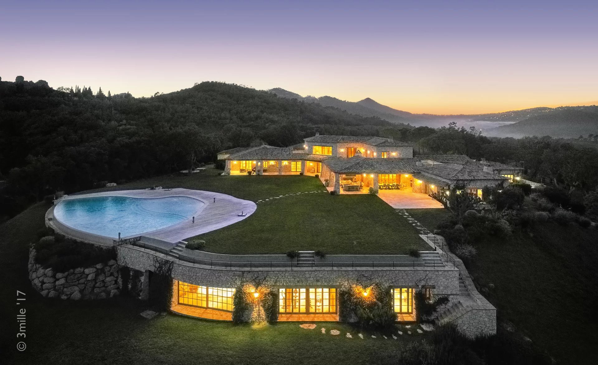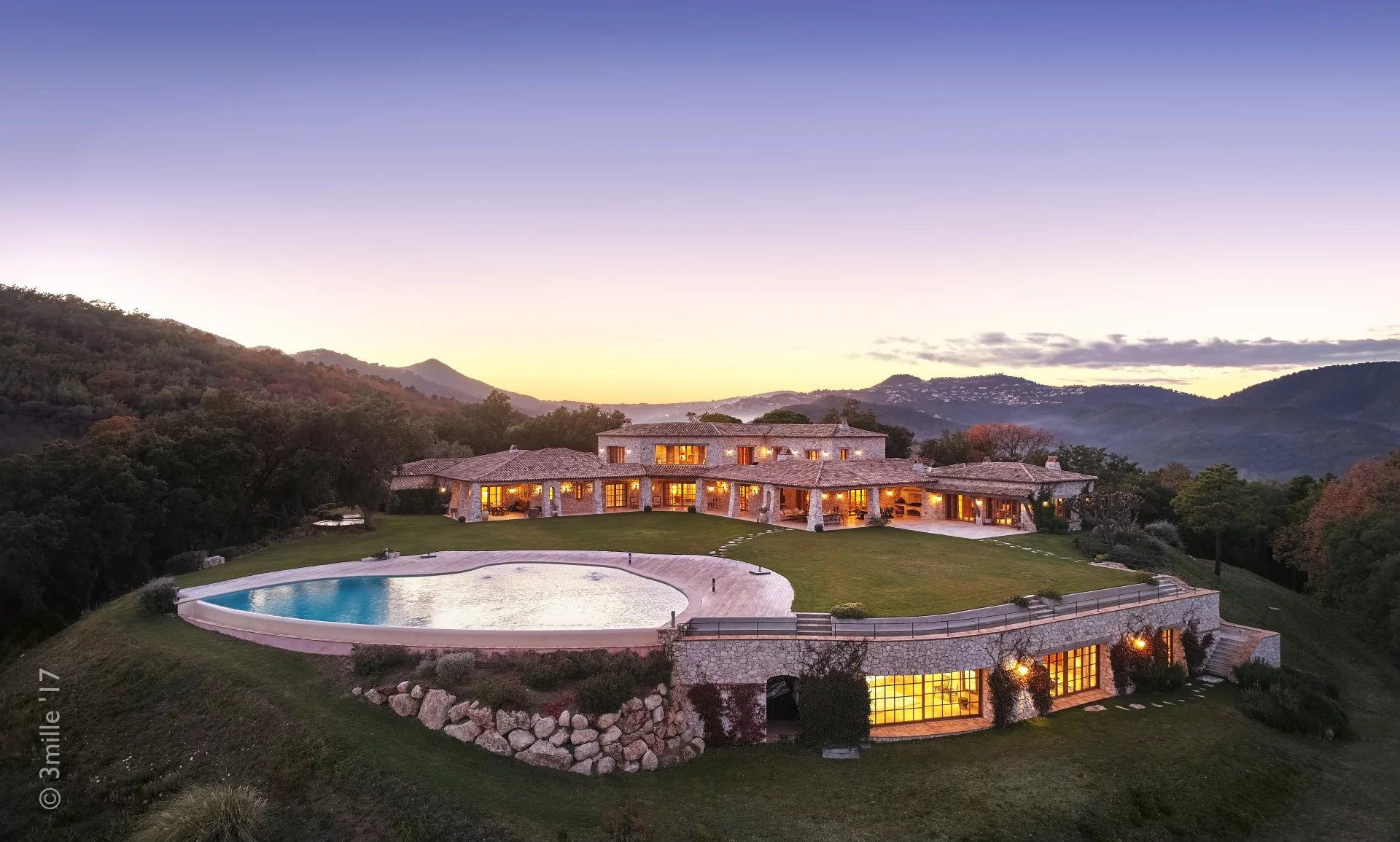 Cet étonnant domaine se trouve dans un parc de 30 hectares, planté d'oliviers et de lavande, à seulement 20 minutes de la Croisette, 10 minutes de l'aéroport de Cannes Mandelieu et 30 minutes de l'aéroport international Nice Côte d'Azur. La propriété est accessible par hélicoptère et est idéale pour des vacances en toute intimité. Véritable havre de paix dans un écrin de verdure. Tennis, sentier de promenade ou footing(4 km)