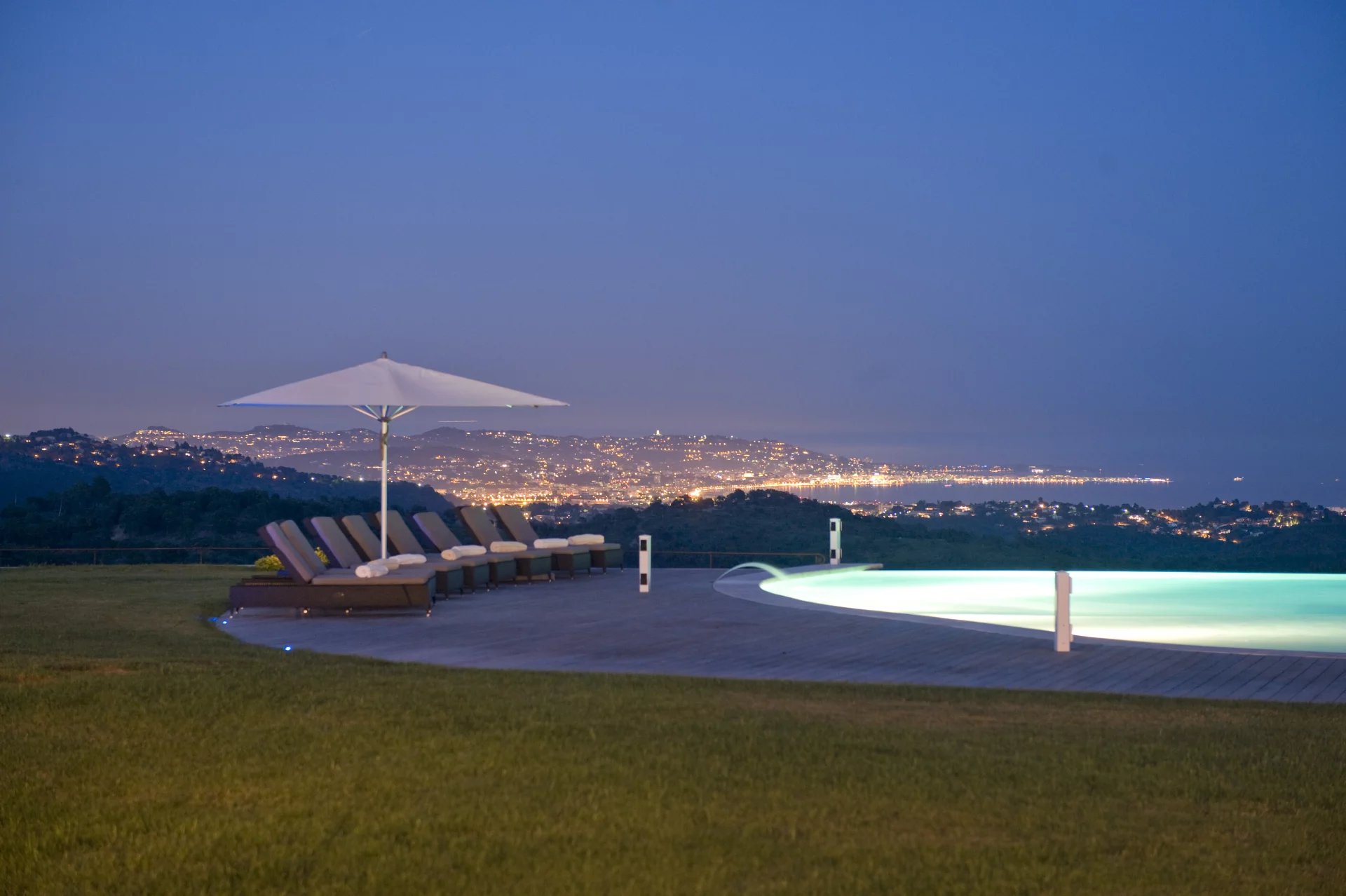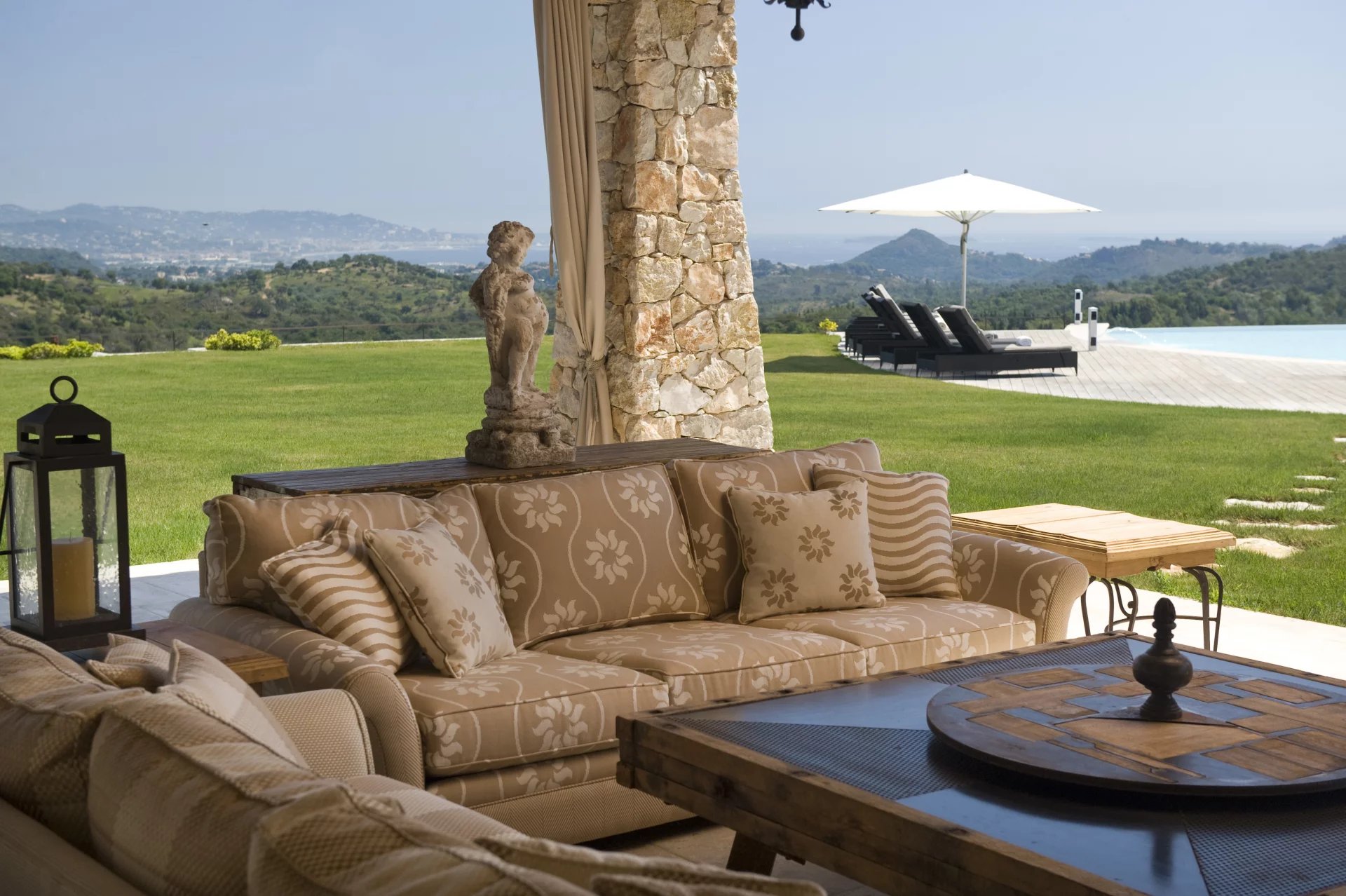 Séjour ouvert sur terrasse d'été avec splendide vue à 360° sur la baie de Cannes