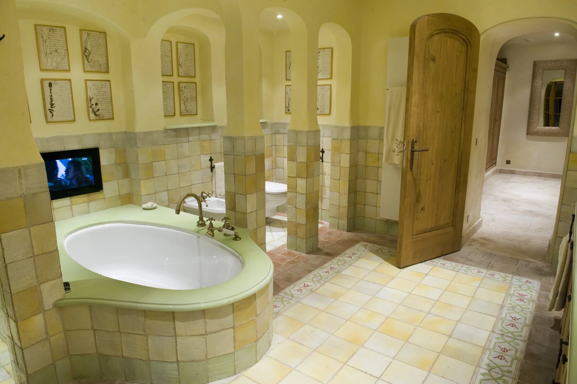 Chambre (lit double 200 cm), TV / Dressing / Salle de bains incluant TV, baignoire, douche, double vasque et toilettes. Ouverte sur terrasse et jardin