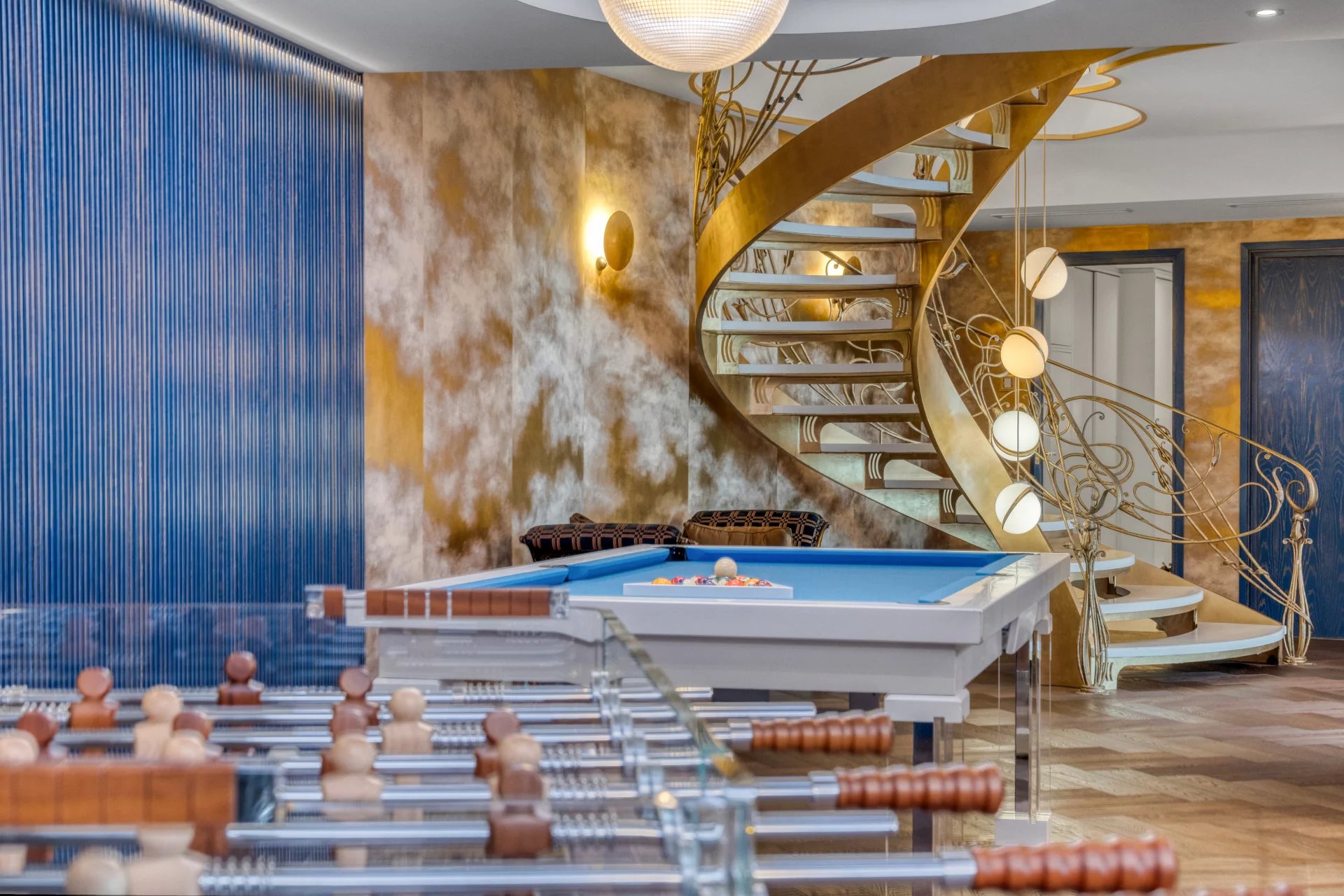 Les espaces de réception, baignés de lumière, s’ouvrent sur de larges terrasses, une piscine sculpturale chauffée et des vues mer époustouflantes. La cuisine, entièrement équipée, se double d’un espace repas convivial pouvant accueillir jusqu’à vingt convives. À cela s’ajoutent une cuisine d’été, une cave à vin, un salon de jeux avec billard et babyfoot, ainsi qu’un spa complet avec hammam, sauna, salle de massage et salle de sport.