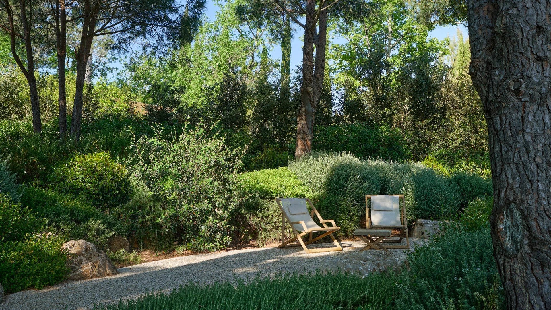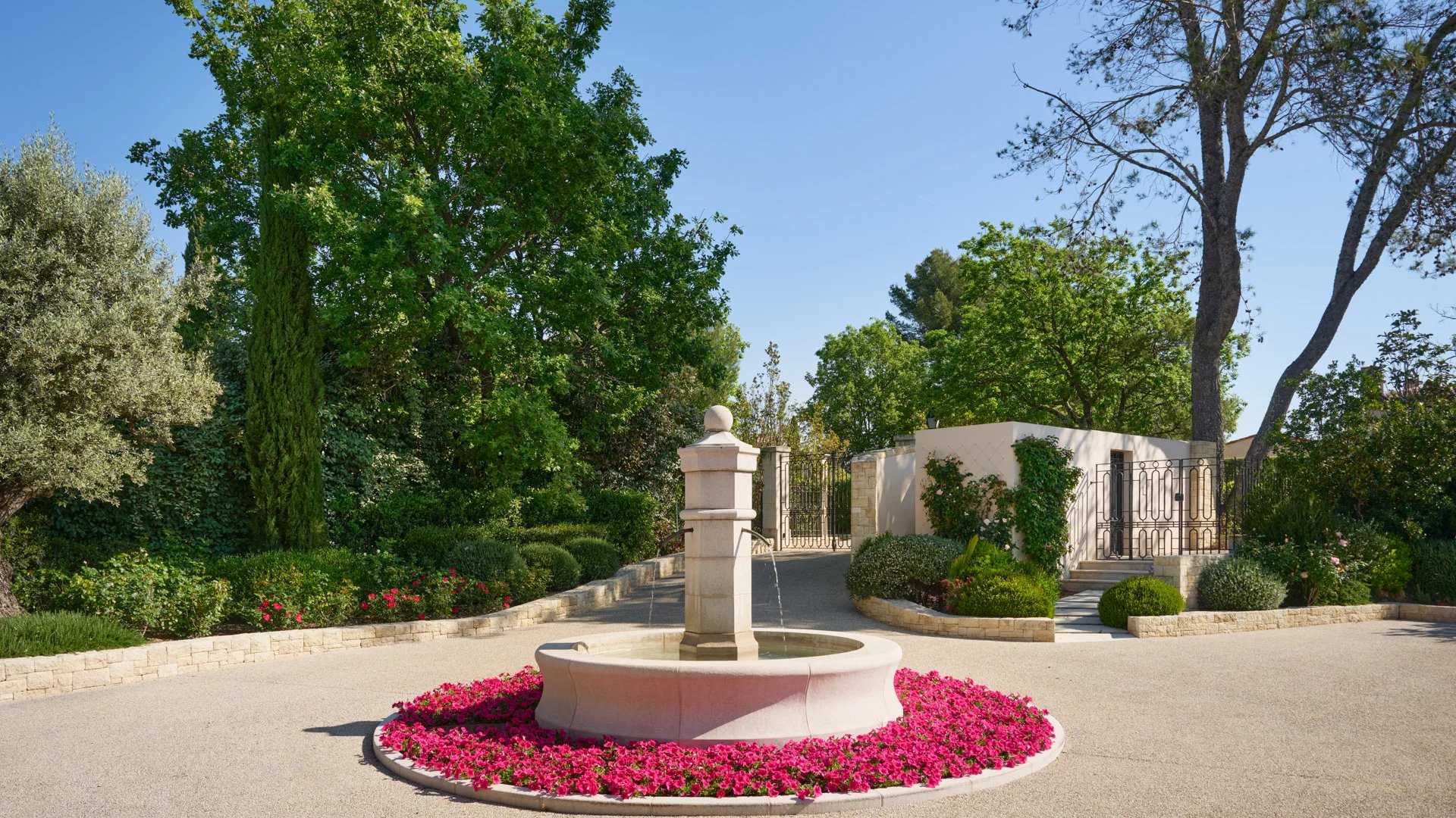 Jardin parfaitement entretenu avec pins, cyprès, fleurs de saison et oliviers datant de 400 à 800 ans