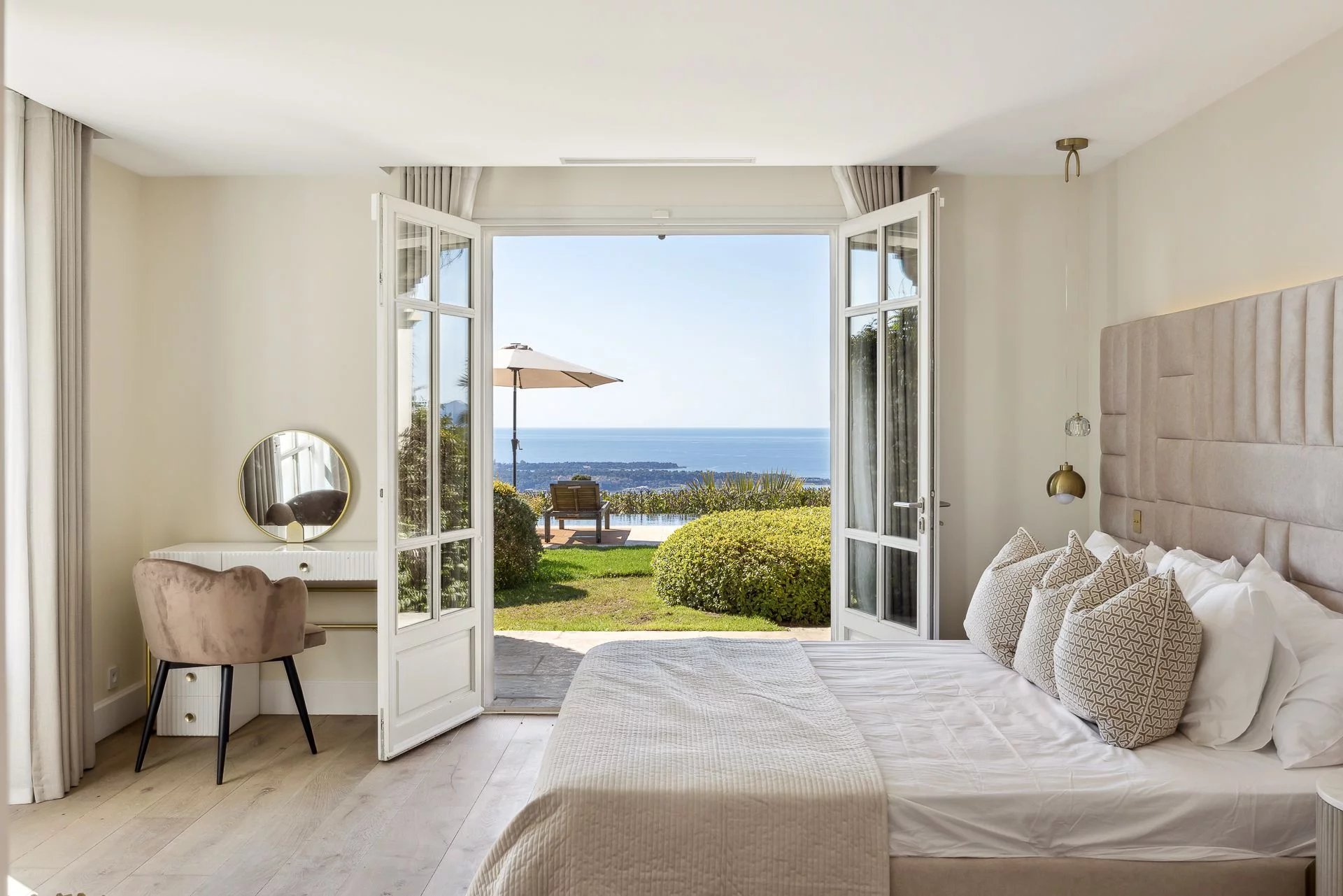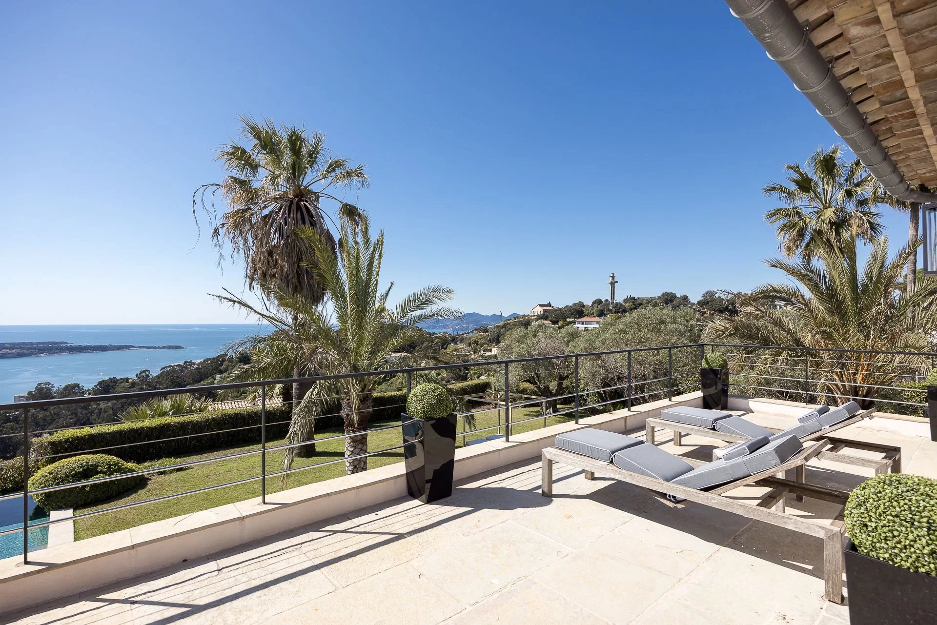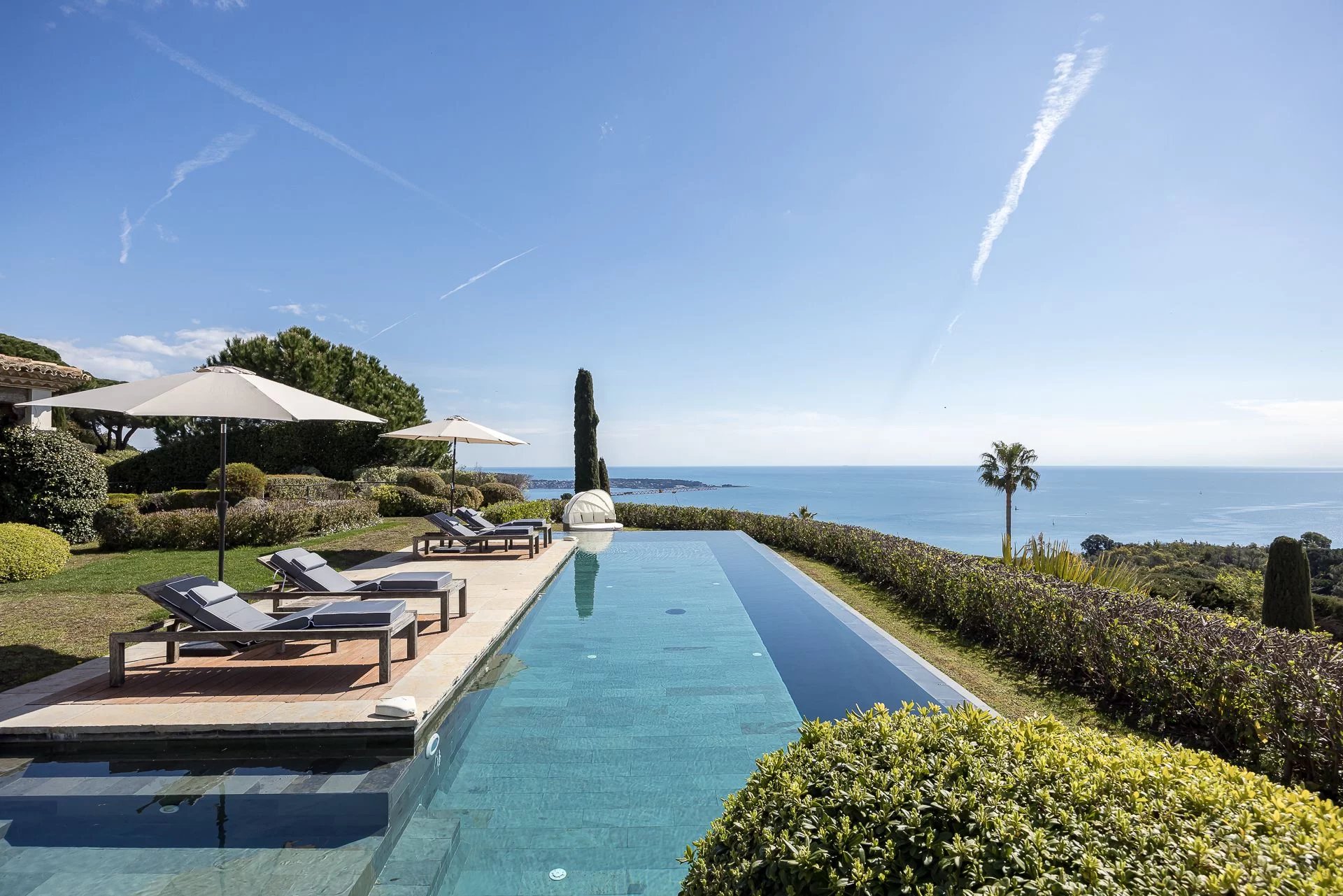Cette magnifique villa de 450² environ, à la rénovation très moderne, sur trois niveaux, propose un très grand séjour/cuisine lumineux doté d'une vue panoramique sur la mer et donnant sur un grand jardin avec piscine chauffée 13x4.