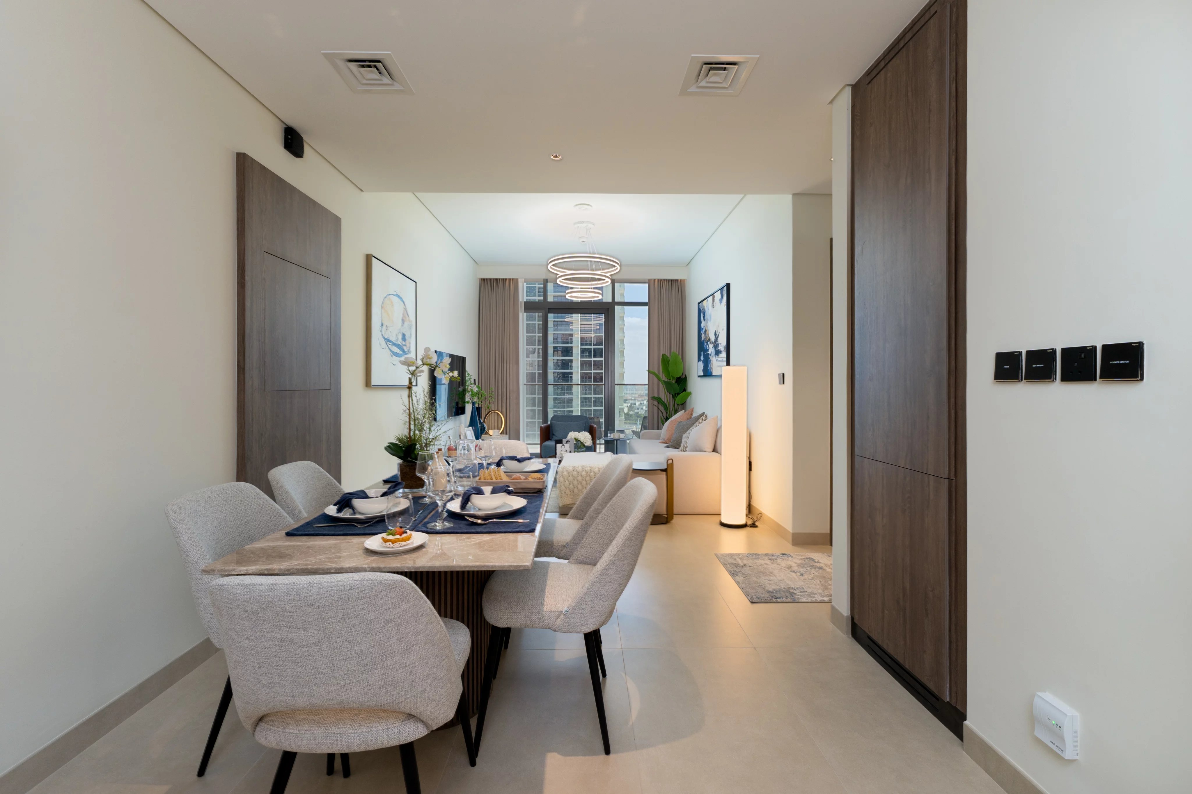 Vivez le luxe dans cet appartement spacieux de 107 m² situé dans les Residences Marriott, au cœur de Business Bay, Émirats arabes unis. La résidence élégante comprend deux chambres spacieuses, un salon et une salle à manger à aire ouverte, ainsi qu'une cuisine moderne. Profitez d'une vue imprenable sur la ville et de beaucoup de lumière naturelle grâce aux grandes fenêtres coulissantes donnant sur un balcon privé, parfait pour se détendre ou recevoir des invités.