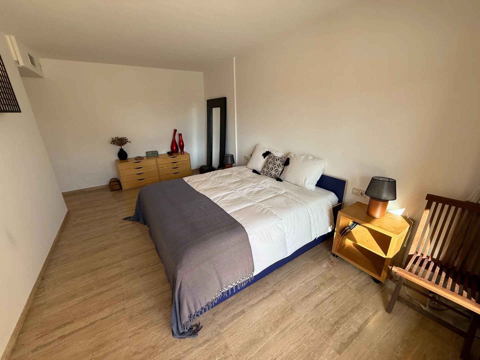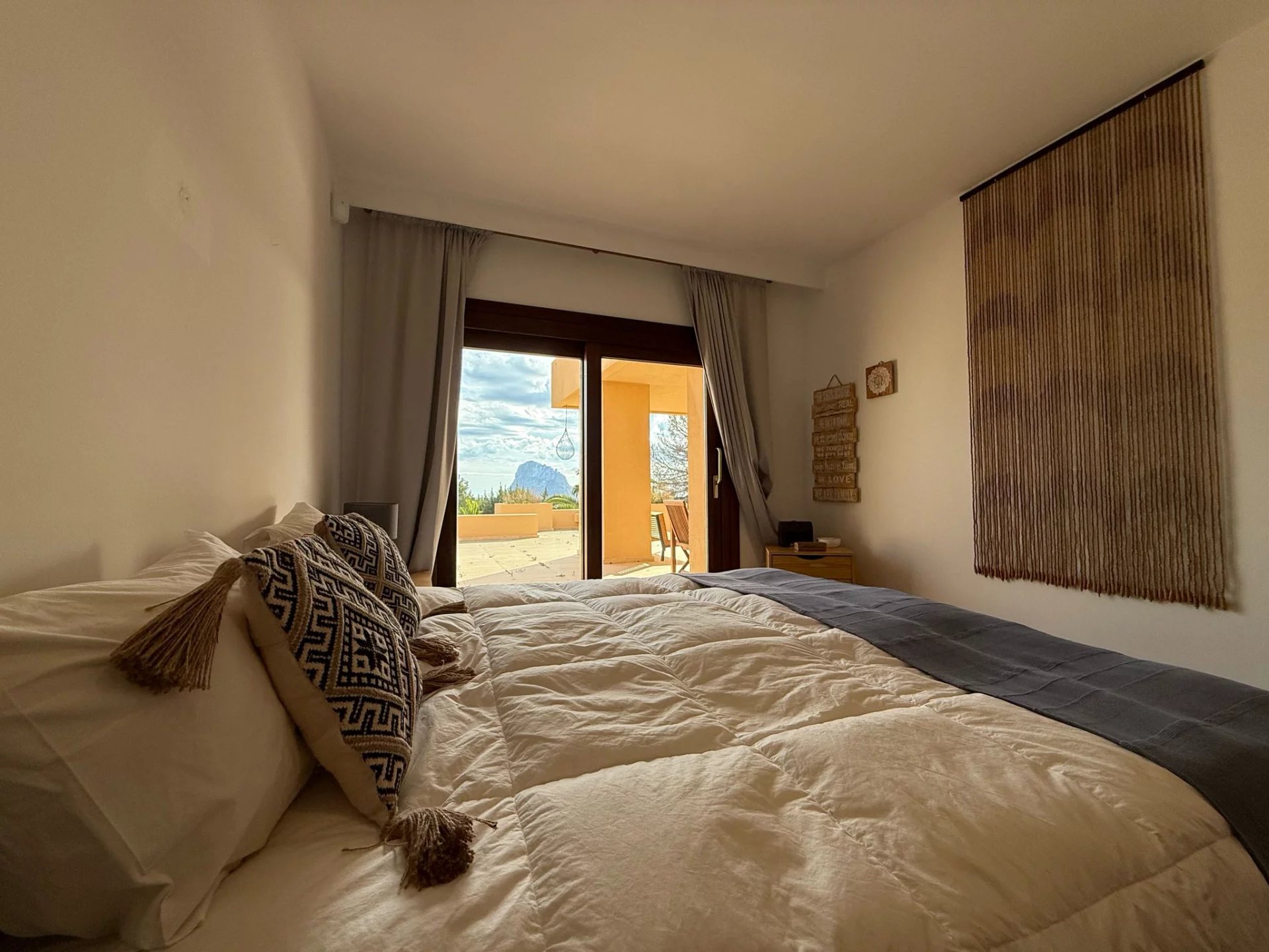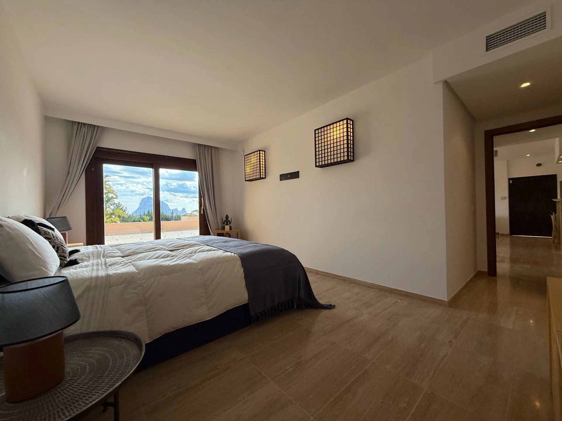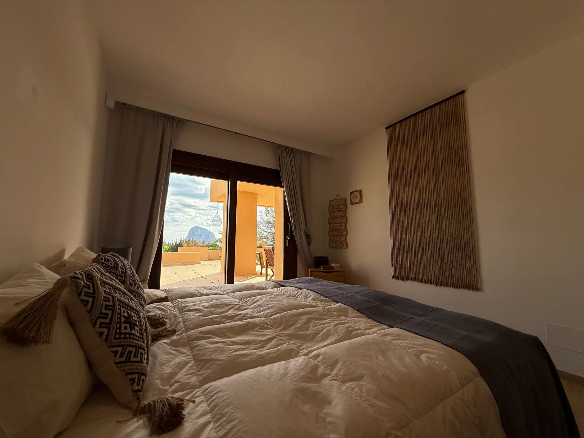 Deux chambres supplémentaires partageant une salle de bains, dont l'une avec vue sur Es Vedrà et accès extérieur.