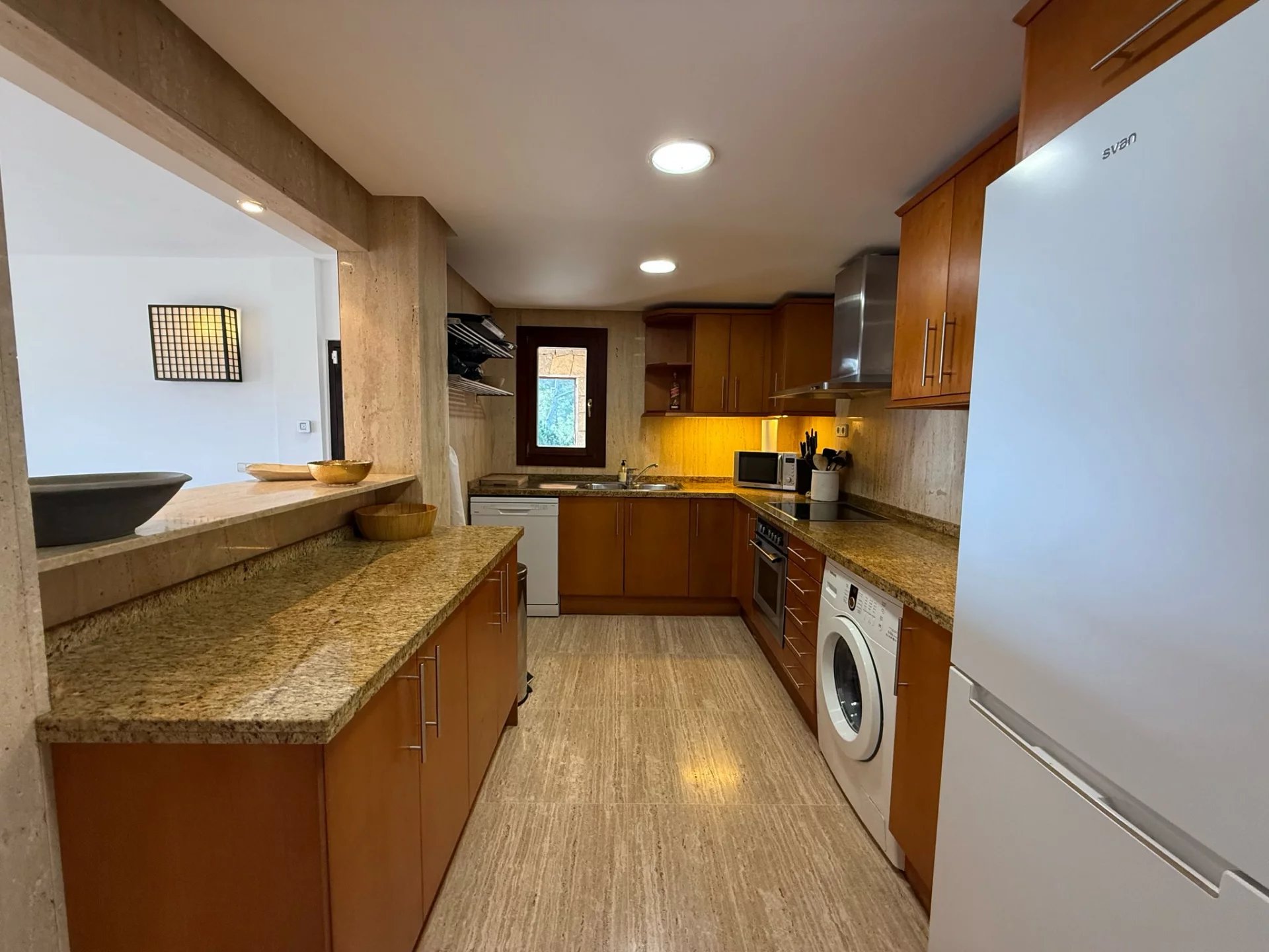Spacieux salon-salle à manger avec cuisine ouverte, créant un espace confortable et fonctionnel.