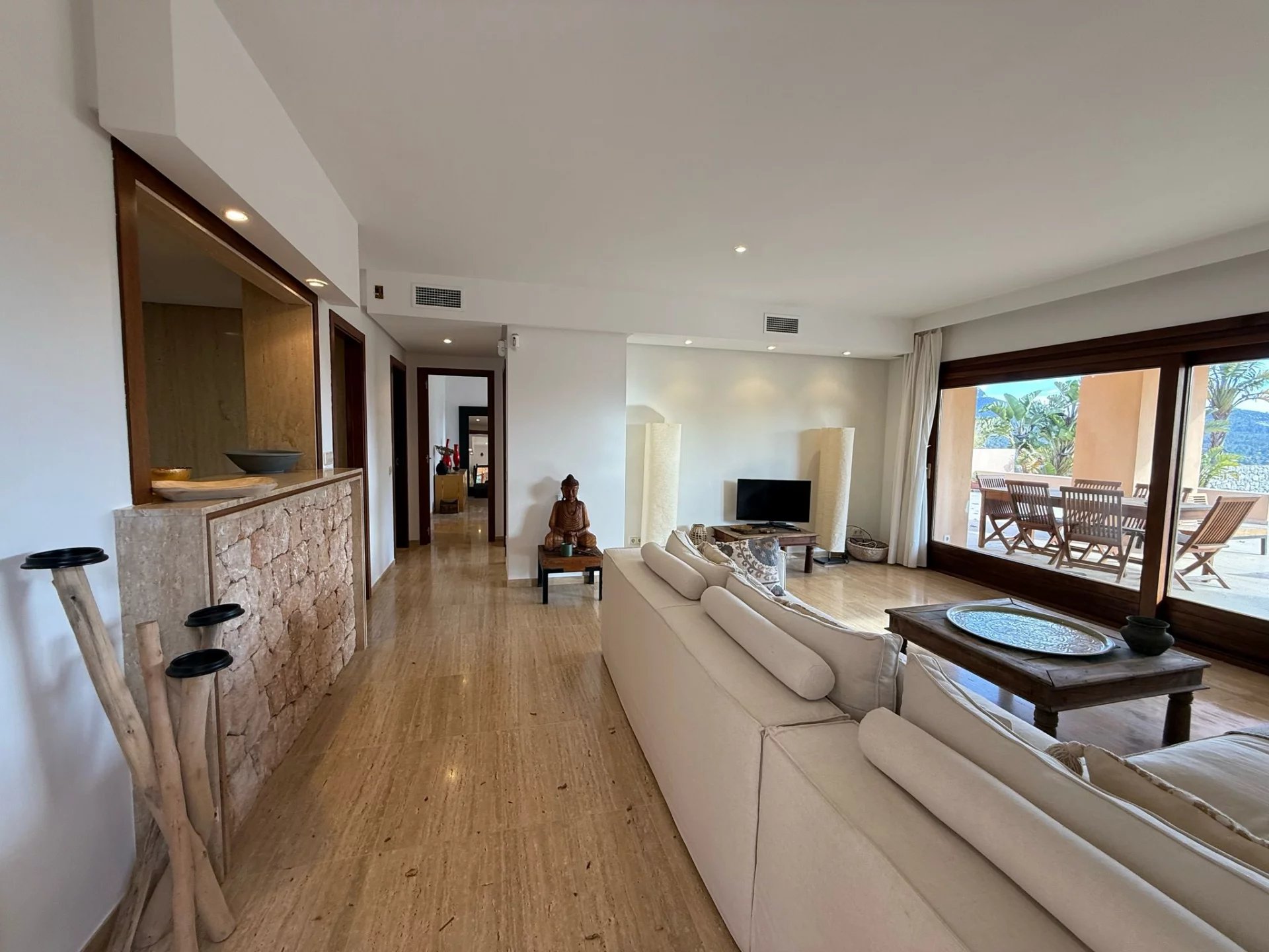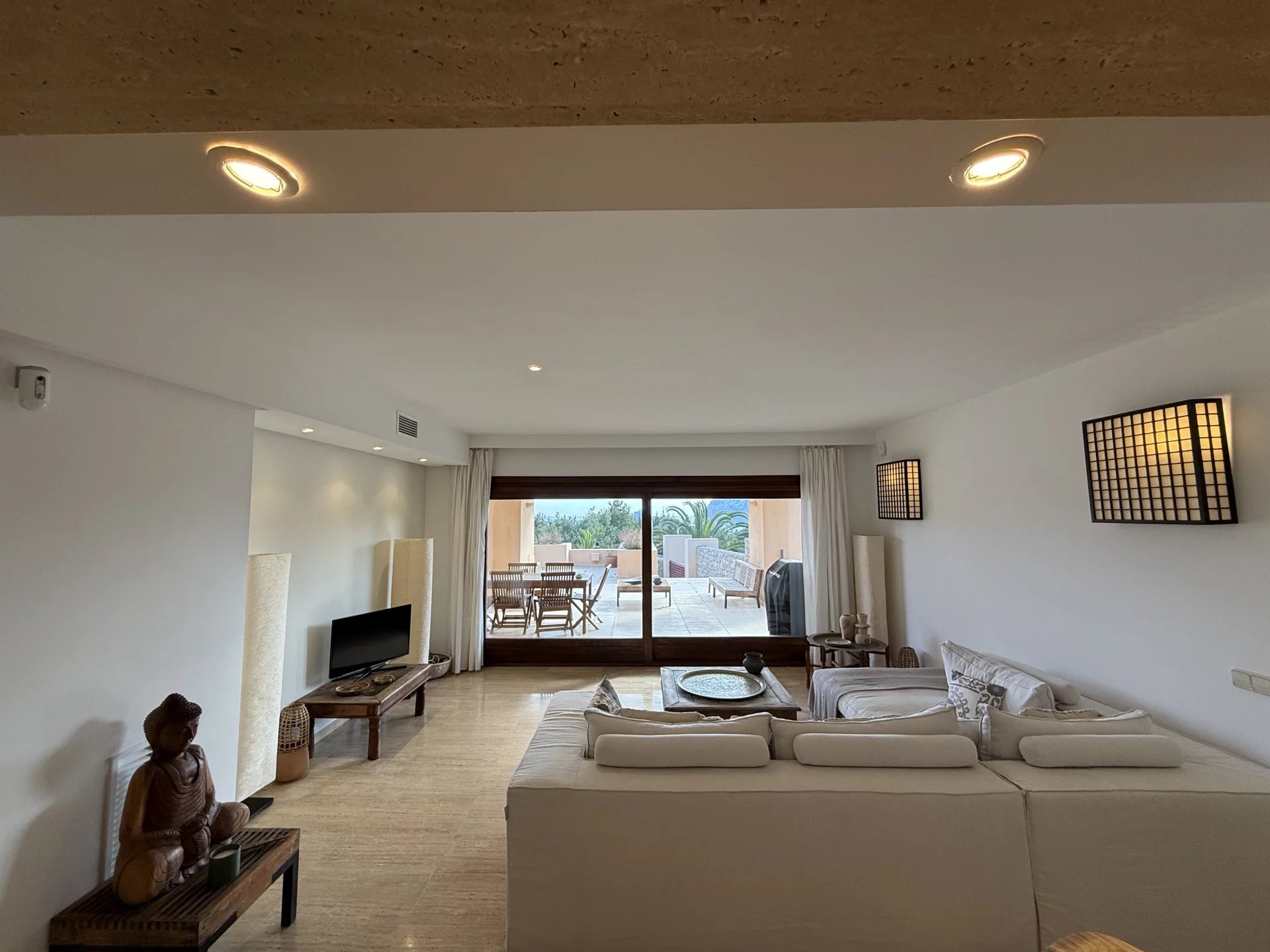 Située dans la charmante commune de San José, à Cala Carbó, cette belle maison mitoyenne offre un cadre incomparable avec des vues spectaculaires sur Es Vedrà et des couchers de soleil inoubliables.