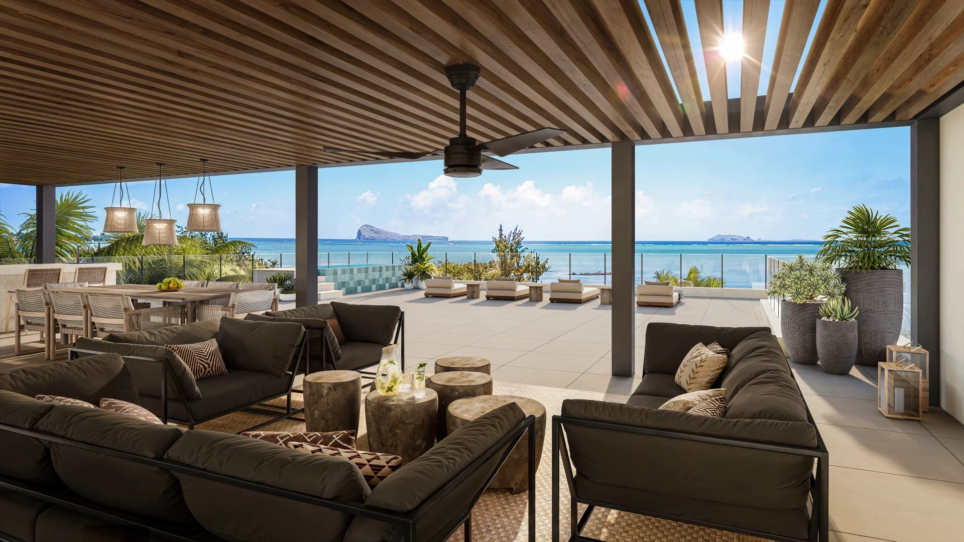 Réparti sur deux niveaux, il propose de vastes espaces baignés de lumière naturelle, une parfaite continuité entre intérieur et extérieur, ainsi que des vues panoramiques sur l’océan Indien et les îles du Nord.
