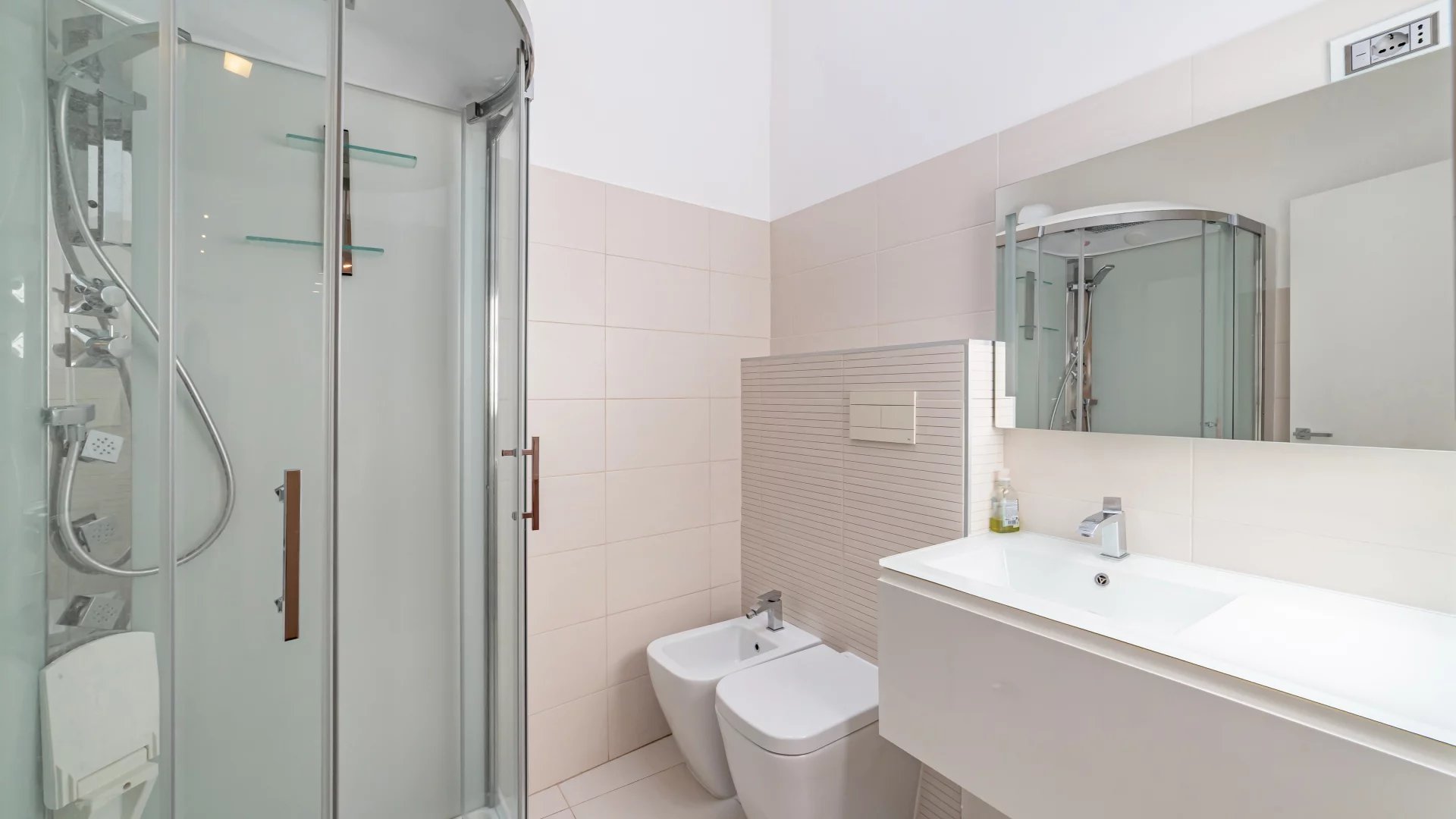 À l’étage, on trouve un bureau, une chambre, une salle de douche avec WC, une seconde chambre ainsi qu’une seconde salle de douche avec WC.