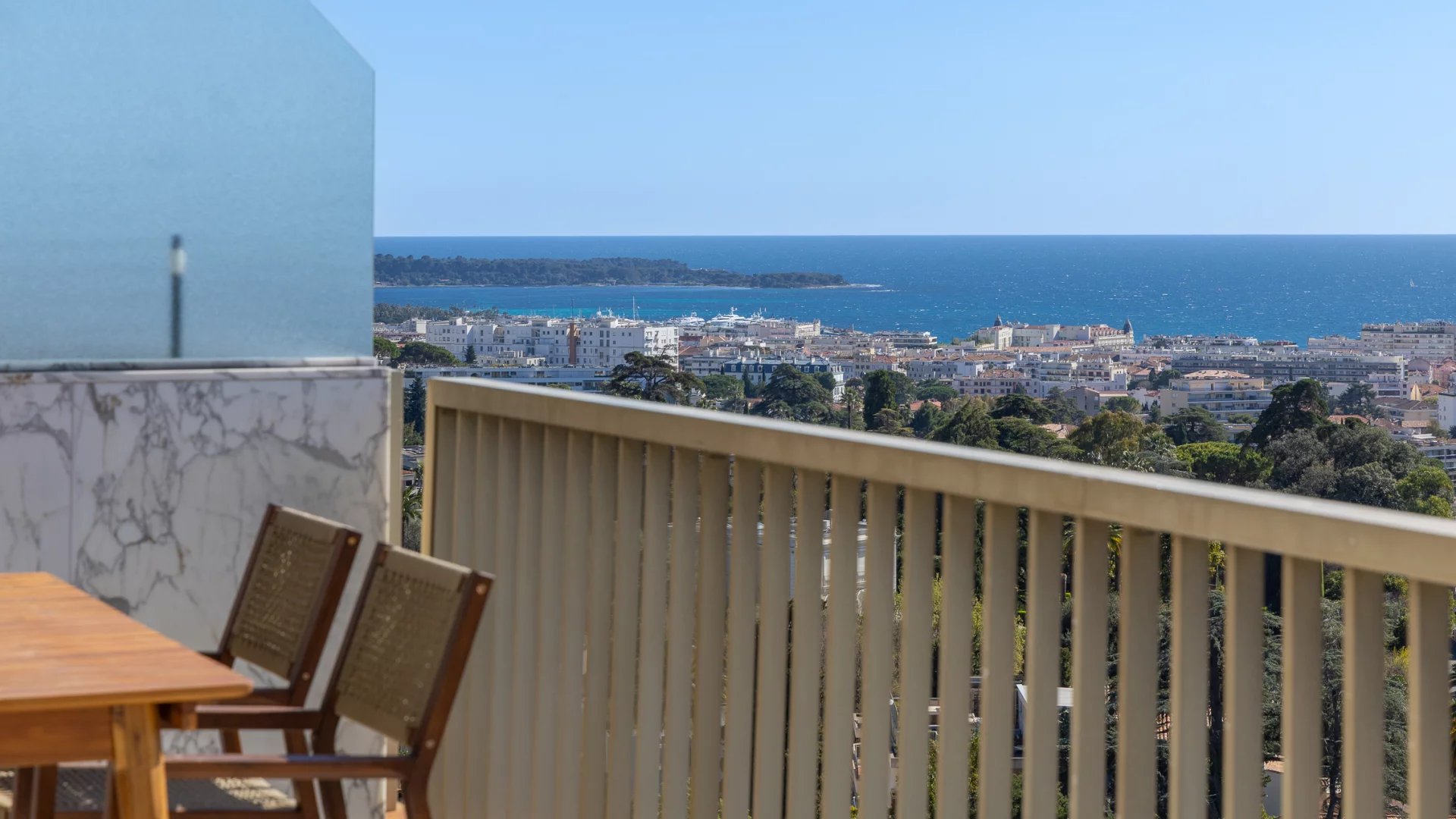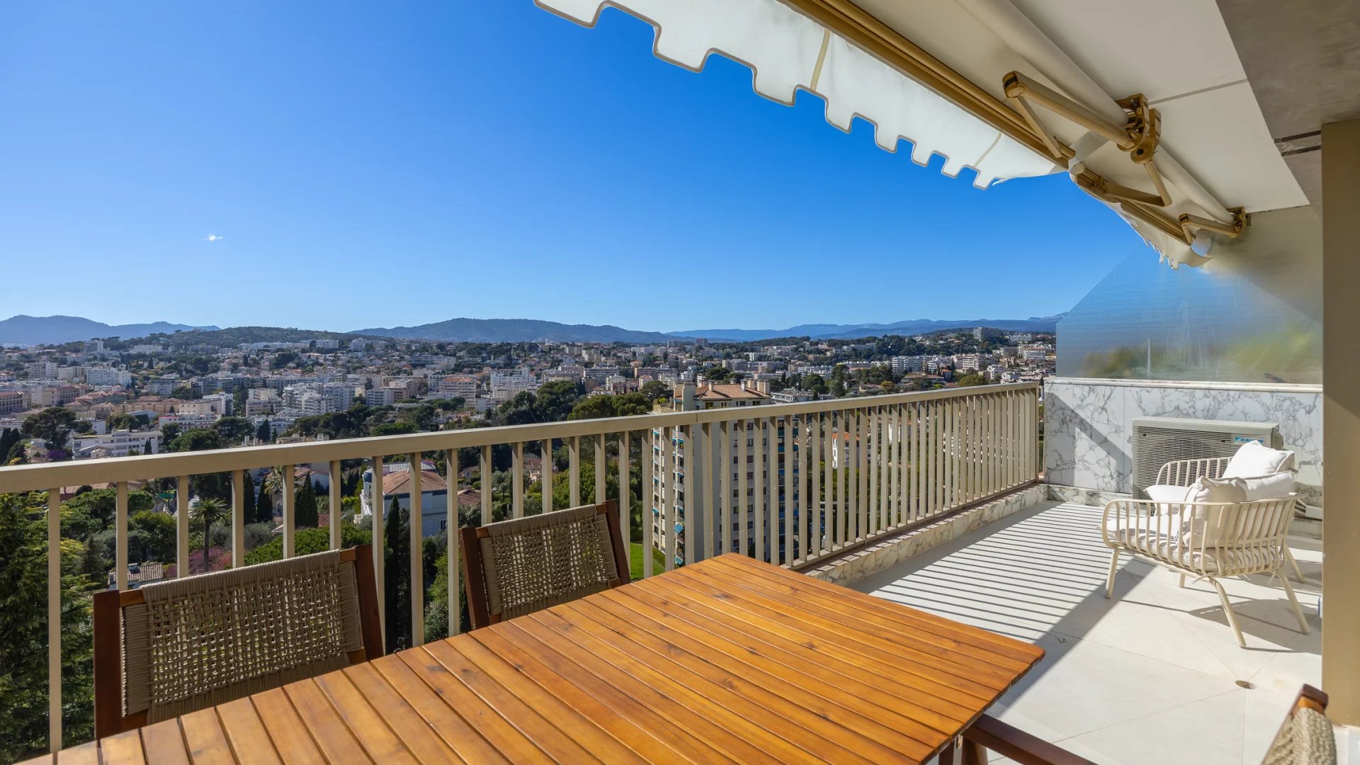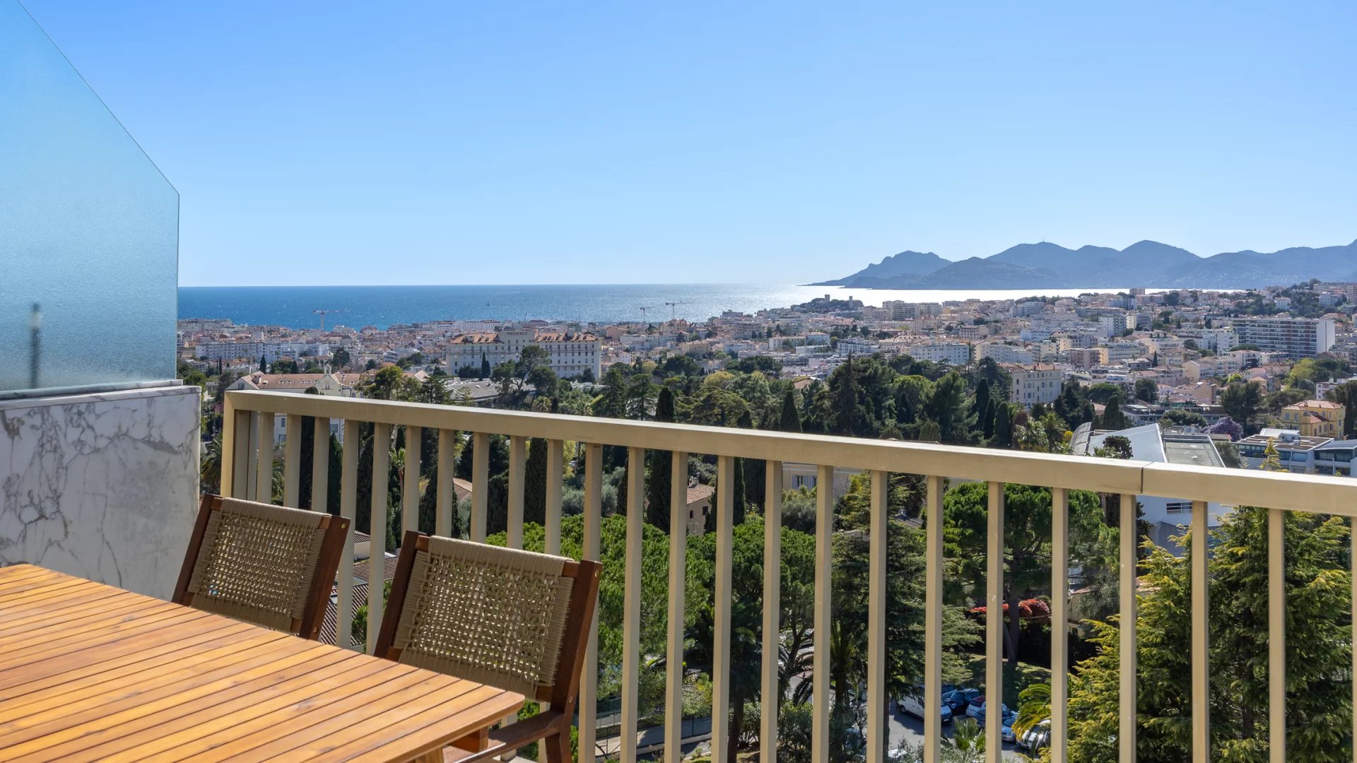 Découvrez cet appartement traversant de 90 m², situé en avant dernier étage d'une résidence de standing, au calme absolu. Rénové, cet espace lumineux se compose d'un séjour, de deux chambres en suite, d'une cuisine indépendante avec coin repas et balcon donnant sur jardin. La terrasse offre une vue sur la mer et le massif de l'Estérel.
