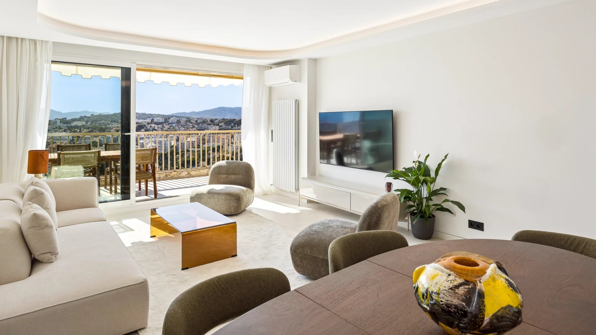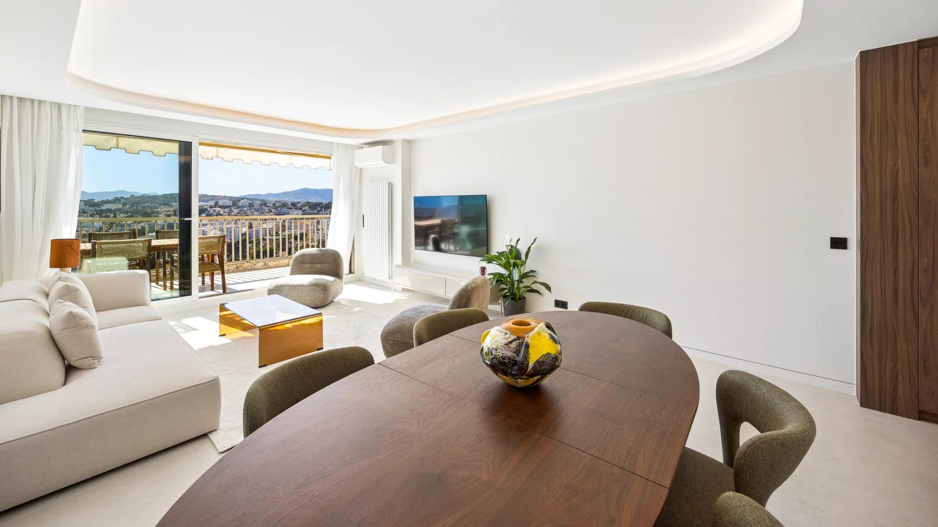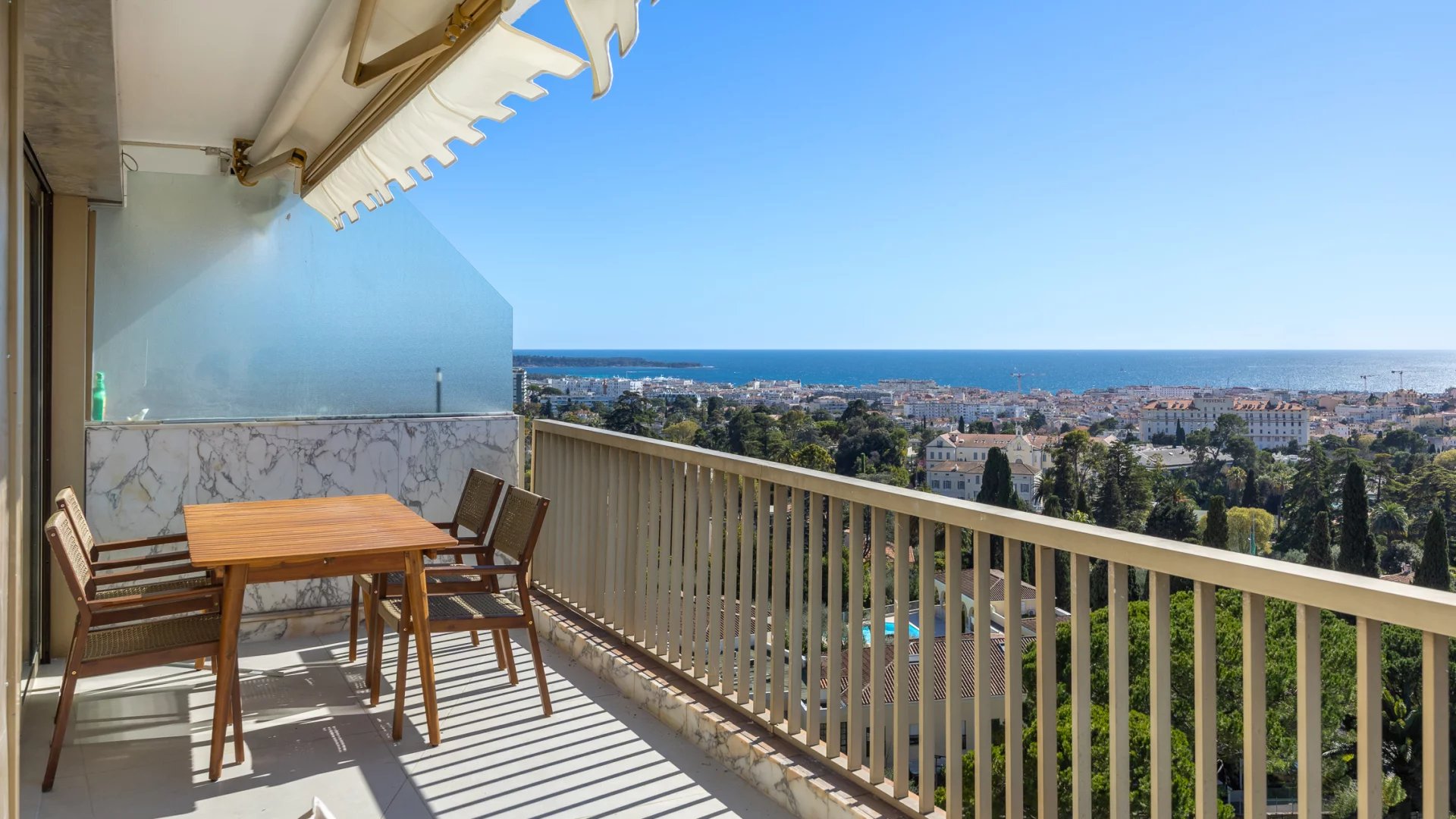 Découvrez cet appartement traversant de 90 m², situé en avant dernier étage d'une résidence de standing, au calme absolu. Rénové, cet espace lumineux se compose d'un séjour, de deux chambres en suite, d'une cuisine indépendante avec coin repas et balcon donnant sur jardin. La terrasse offre une vue sur la mer et le massif de l'Estérel.