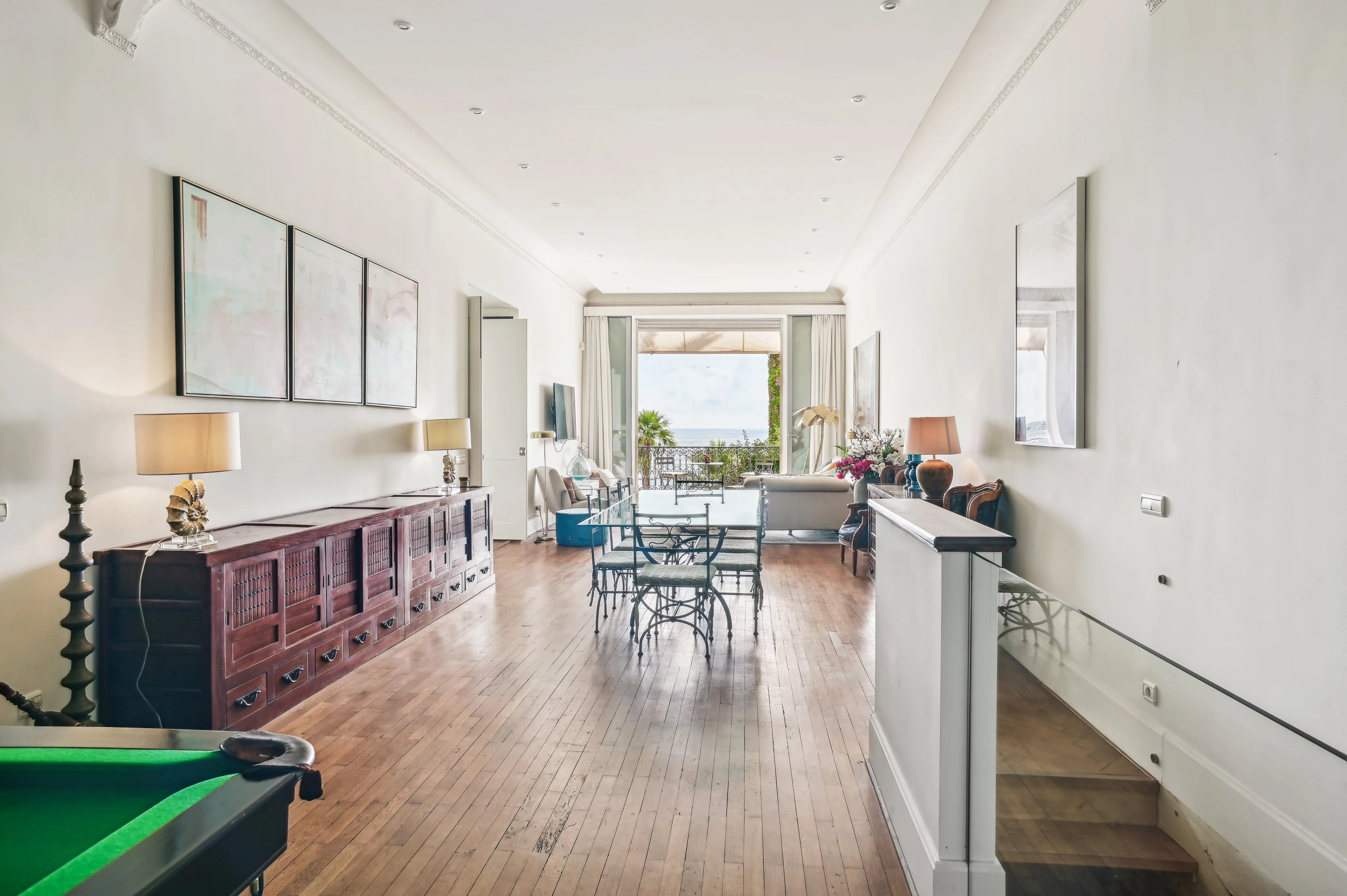 Idéalement situé face à la Plage du Midi, à proximité immédiate du Vieux Port de Cannes et des restaurants, cet appartement de 310 m² se trouve au sein d’un immeuble bourgeois de caractère.