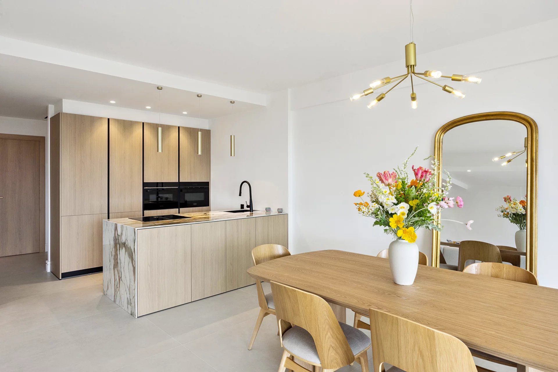 L'appartement comprend deux chambres en suite, chacune à la décoration et à l'ambiance soignées, avec loggia privative. Le design contemporain et les finitions haut de gamme apportent une touche de rafiinement à cet espace de vie exceptionnel.