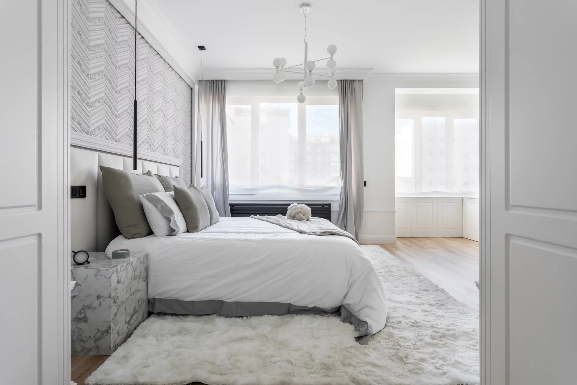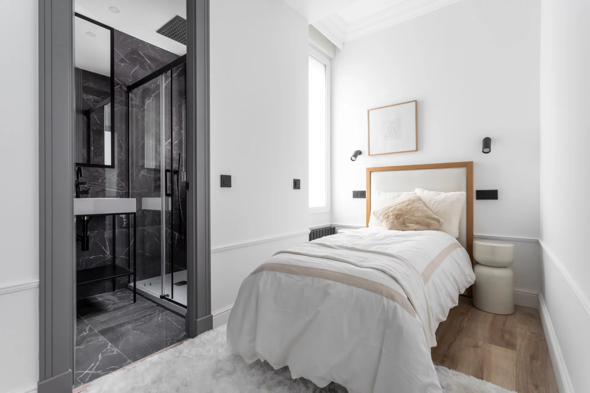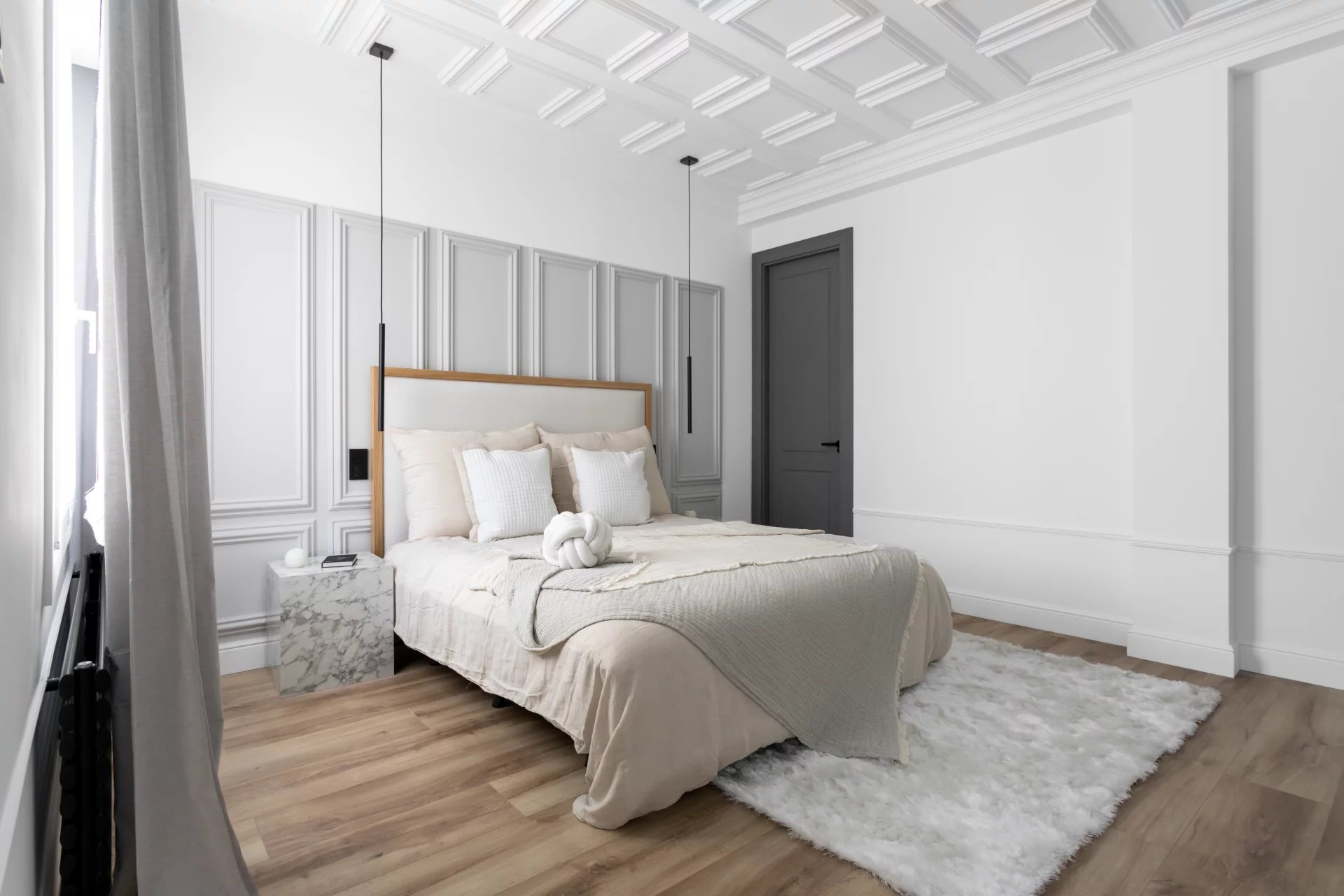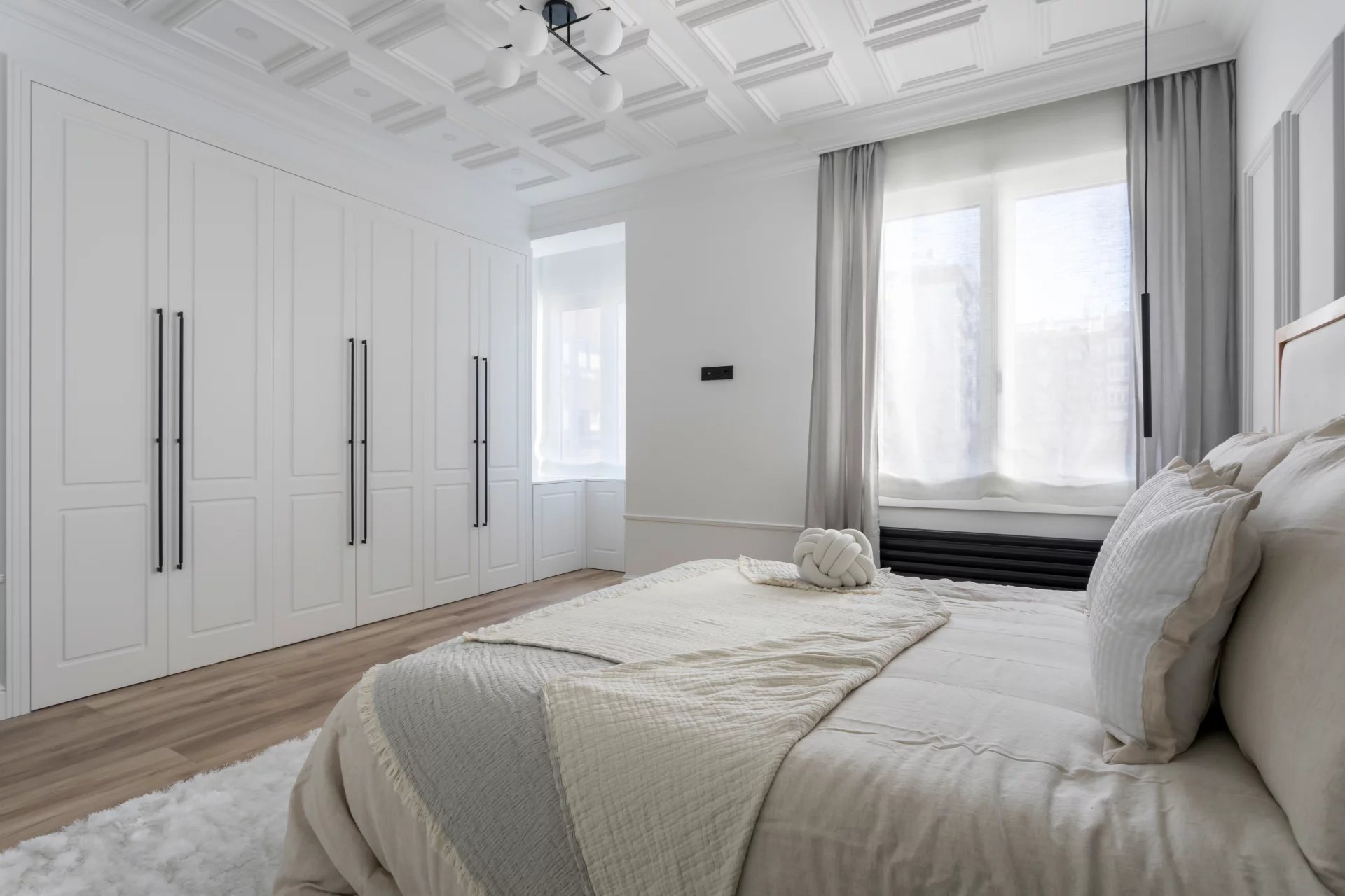 L'appartement comprend quatre chambres à coucher, toutes dotées d'une salle de bains privative et de grands placards intégrés. En outre, il y a des toilettes pour les invités, une buanderie et un débarras.