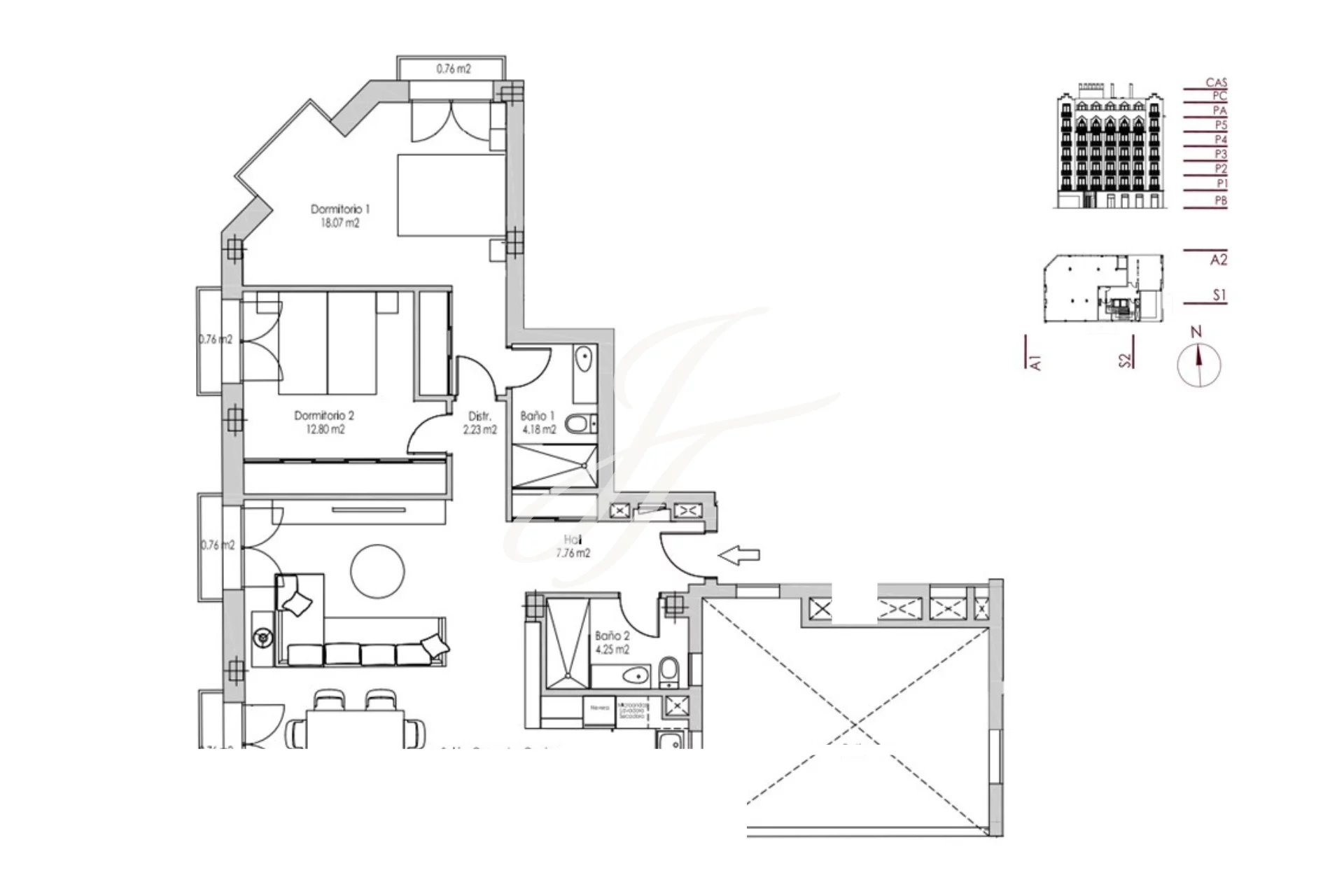Il y a aussi tout le luxe et le confort d'une nouvelle construction de luxe : chauffage au sol dans toutes les pièces avec régulation de phase, air conditionné canalisé, système audio sans fil, armoires équipées avec finitions textiles, espace de garage avec ascenseur dans la propriété elle-même, salle de stockage, deux grands ascenseurs, piscine sur le toit avec plusieurs zones de solarium et conciergerie.