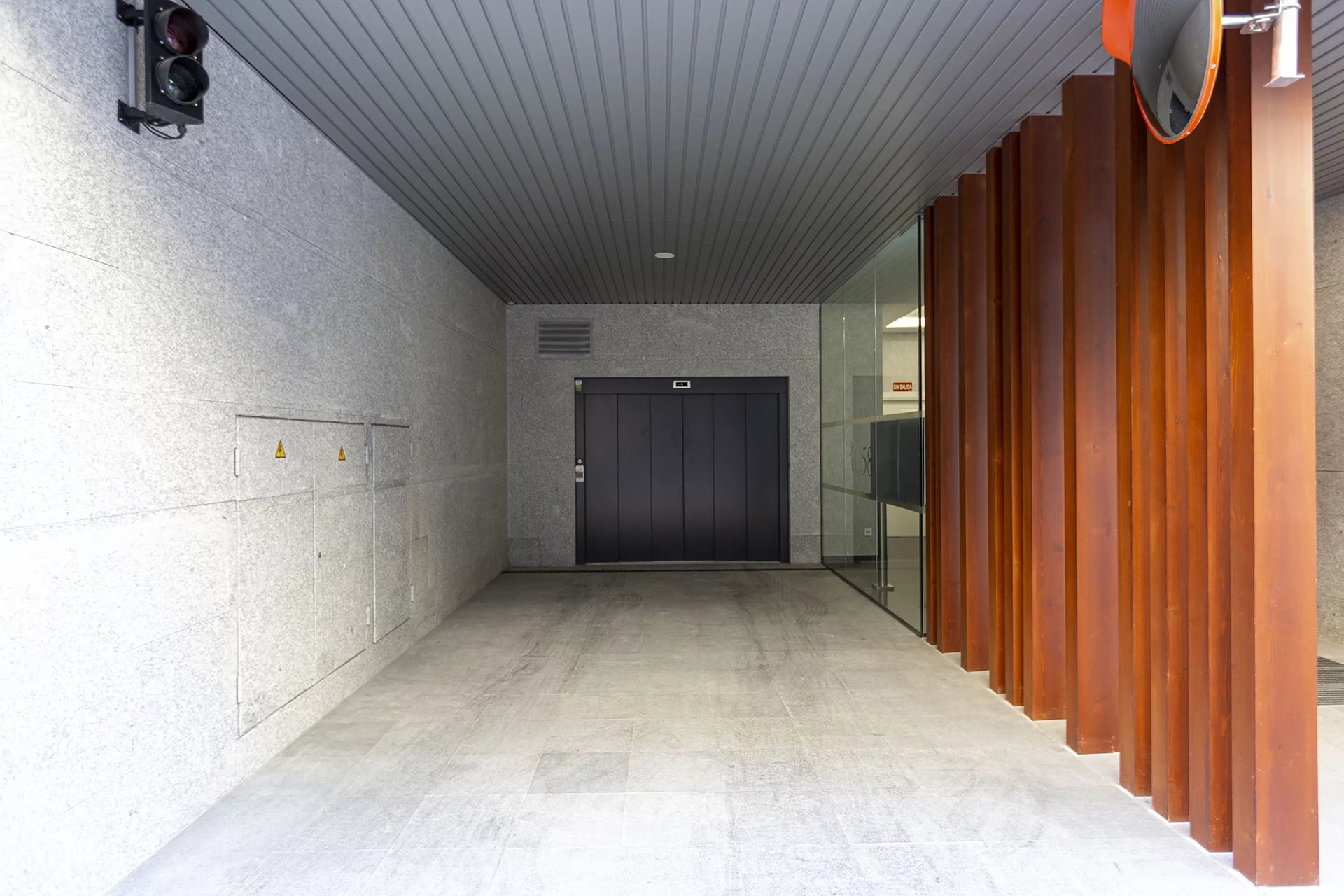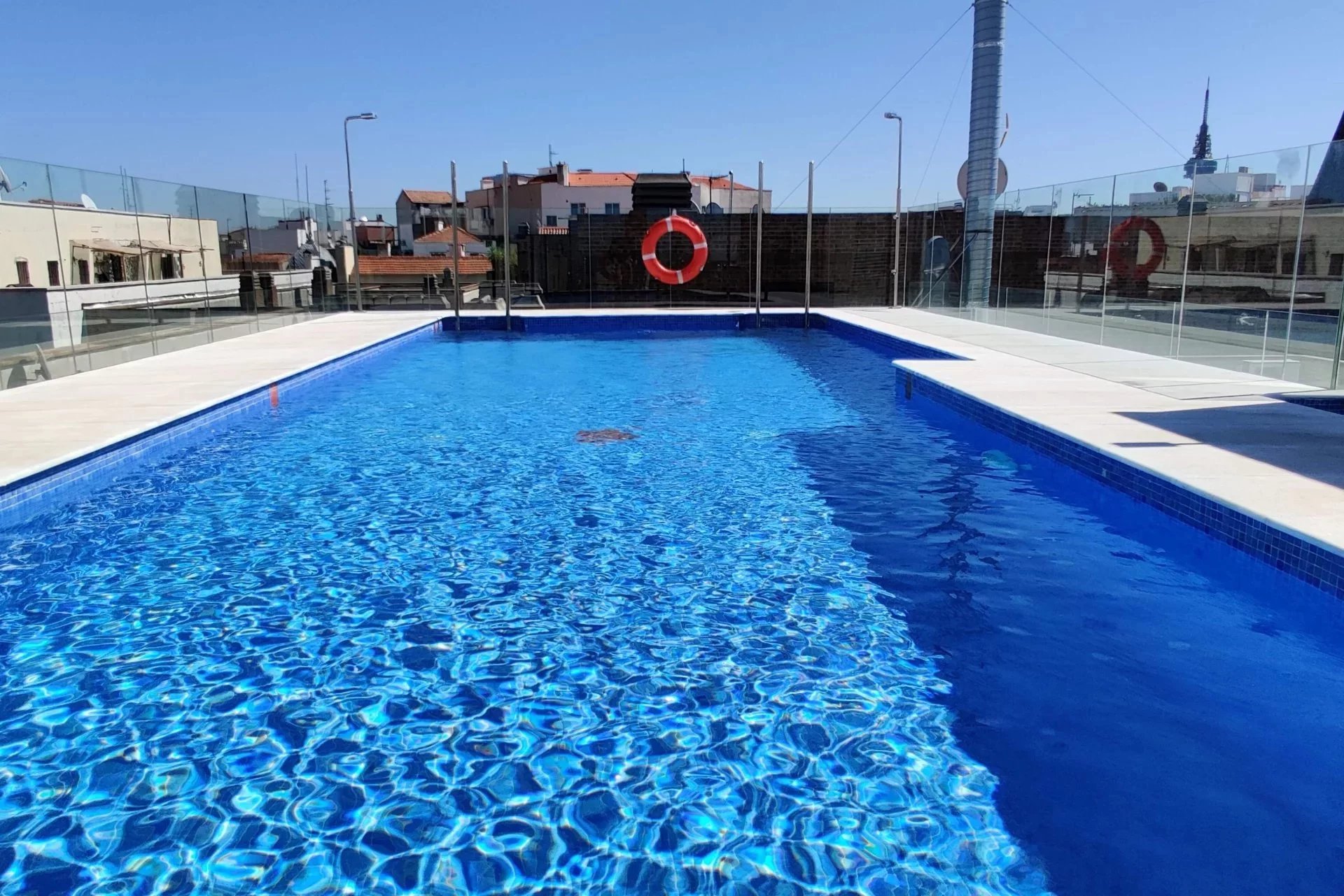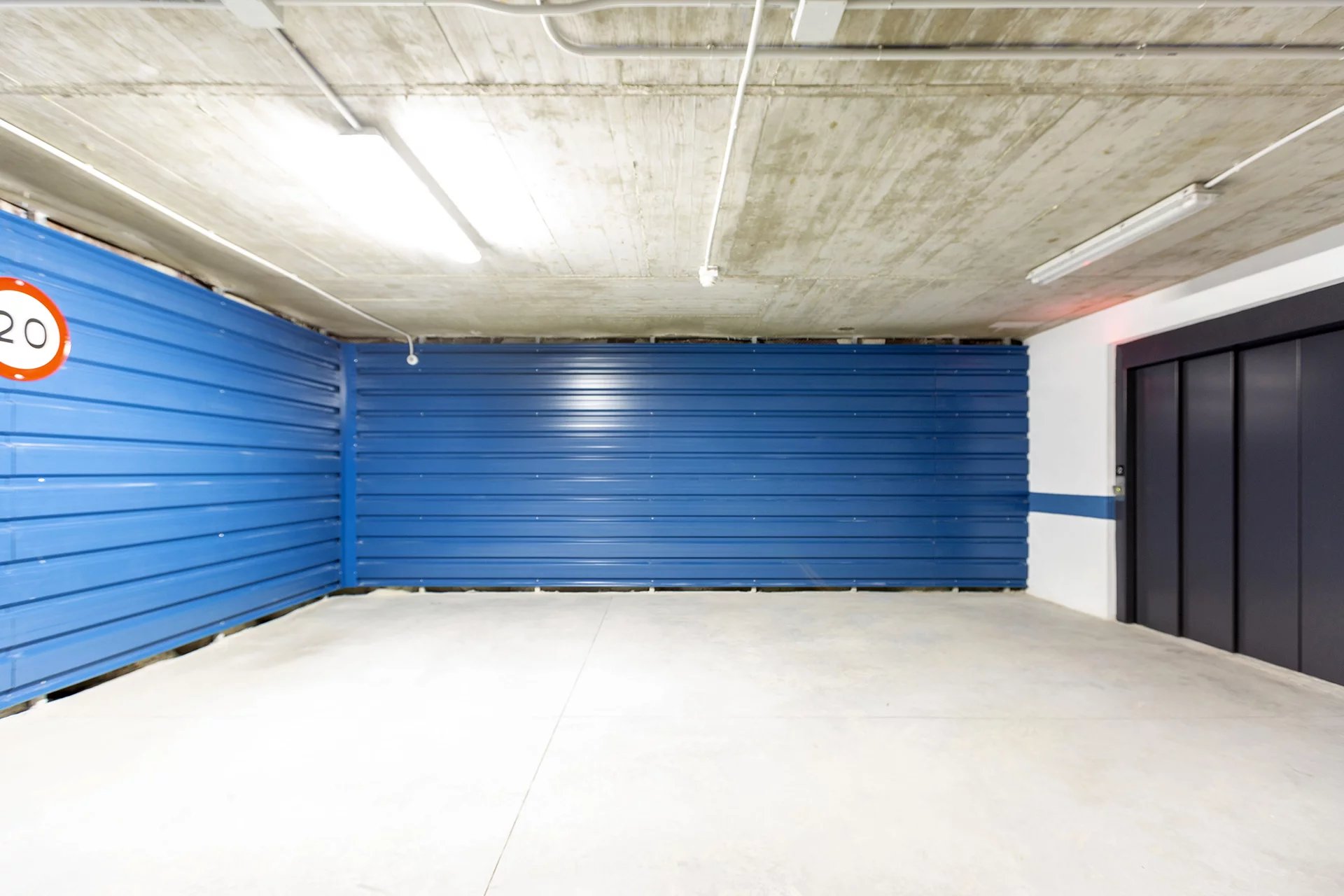 Cinq balcons d'angle avec garage, piscine et salle de stockage.