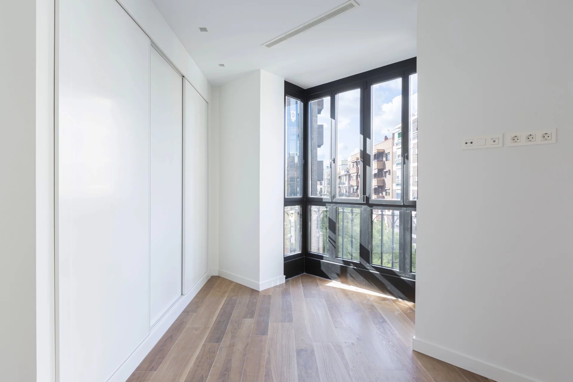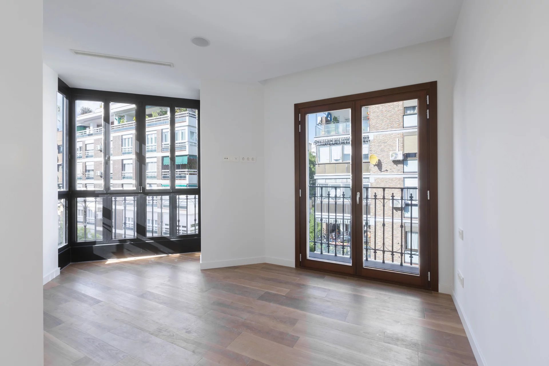 Dans l'un des rares immeubles neufs du Barrio de Salamanca, se trouve ce fabuleux appartement flambant neuf. Avec cinq balcons donnant sur la rue et occupant l'angle du quatrième étage de l'immeuble, l'appartement jouit d'une lumière et d'un espace fantastiques.