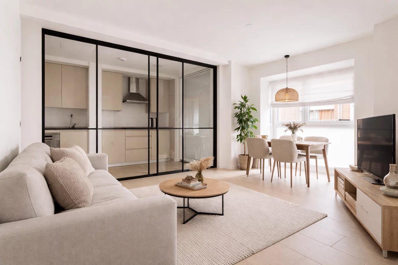 Le logement, situé au deuxième étage, dispose de 82 m² privés superbement répartis, 105 mètres carrés incluant la répercussion des zones communes de l'immeuble. Il comprend un élégant hall d'entrée avec des armoires à manteaux qui donne accès à une cuisine intégrée au salon, entièrement équipée, ainsi qu'une pratique zone de buanderie indépendante. Le salon-salle à manger lumineux se connecte à la zone de repos, composée de deux chambres, la principale avec dressing et salle de bain attenante, tandis qu'une deuxième salle de bain complète dessert la chambre secondaire et les invités. Tout le logement est extérieur, sauf les salles de bain, ce qui garantit une magnifique entrée de lumière naturelle et une agréable sensation d'espace.
