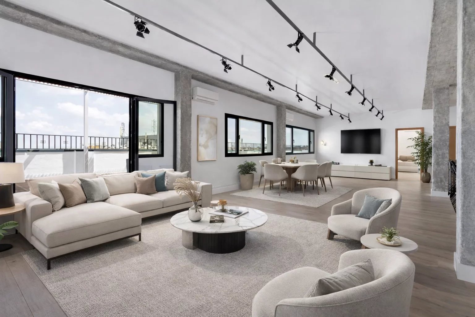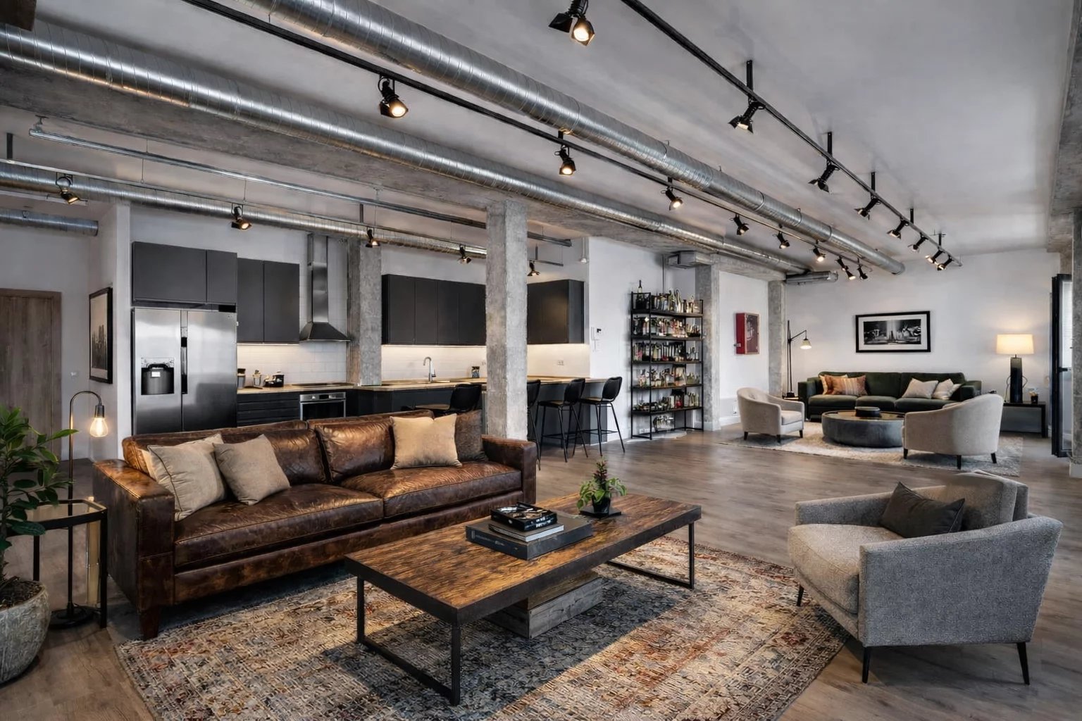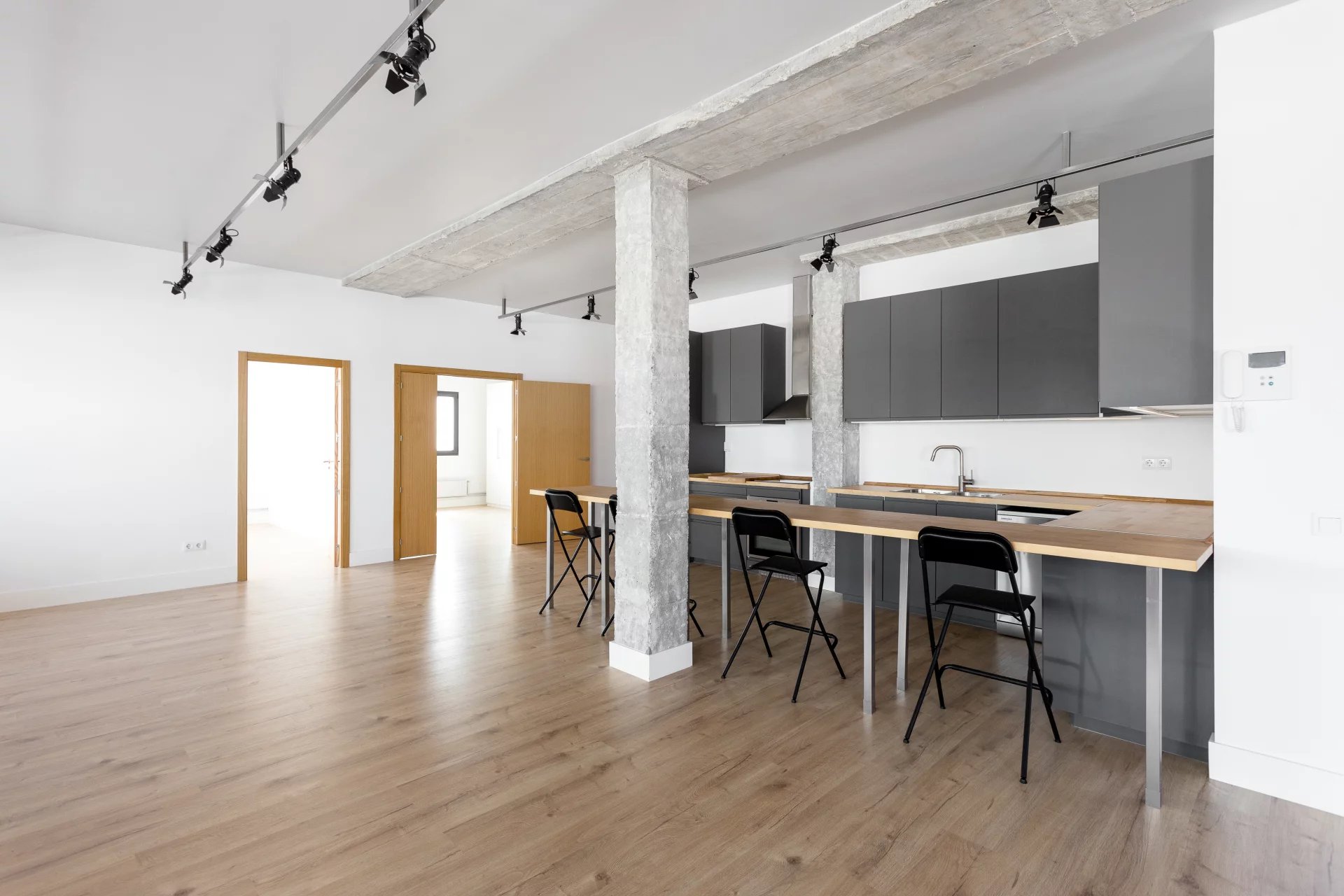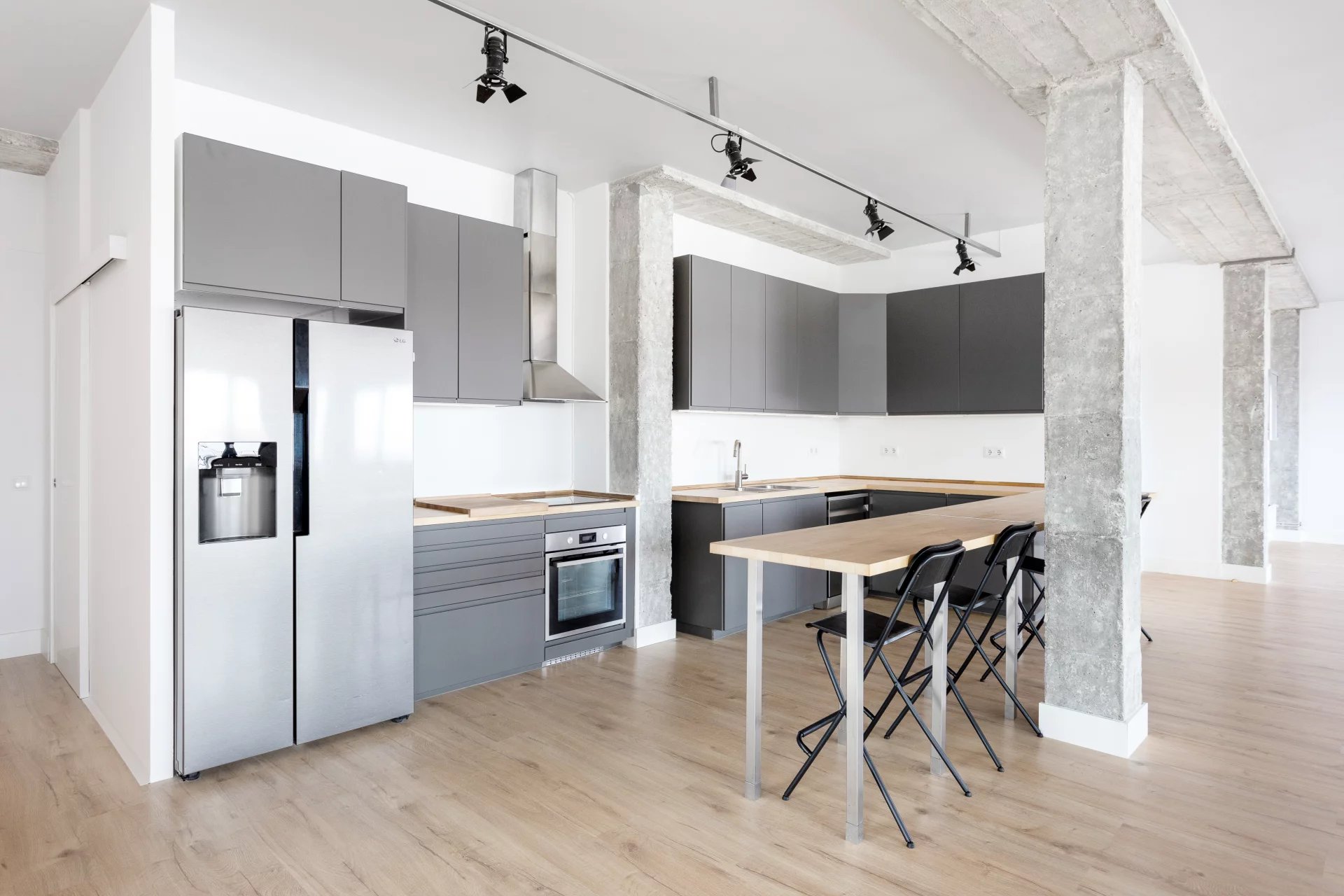 Comme il s'agit d'un authentique loft, avec des plafonds de 3 mètres de haut et sans murs porteurs, l'aménagement offre des possibilités infinies.