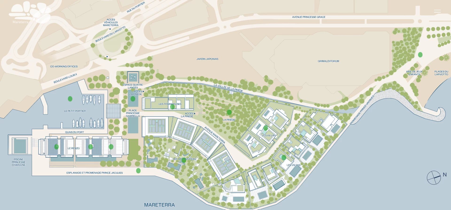 L'extension en mer, Mareterra, témoigne de l'audace architecturale et écologique de Monaco. Réalisée avec soin pour minimiser les impacts sur les écosystèmes marins, cette extension redéfinit les lignes de la côte tout en préservant la biodiversité marine.