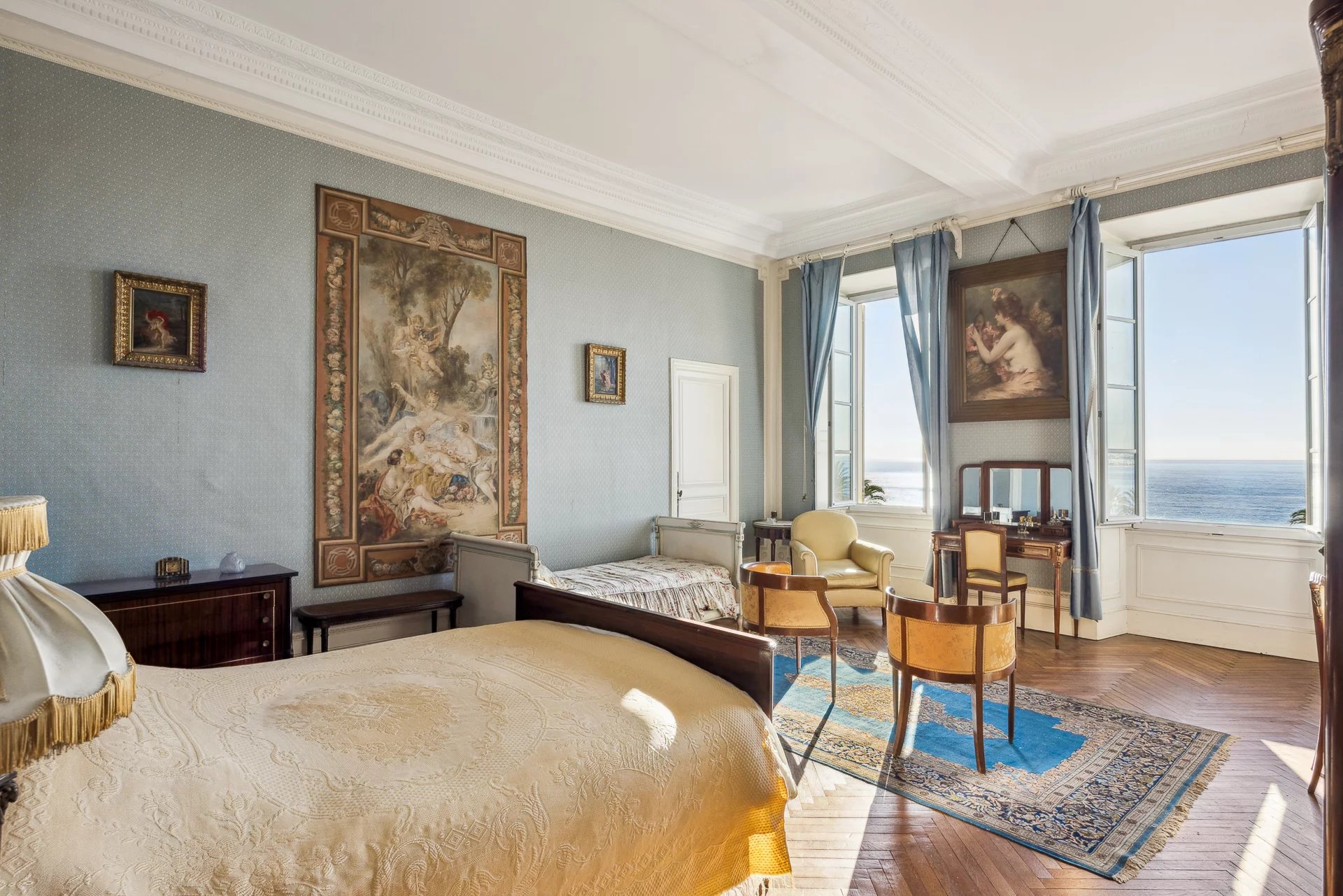 Avec ses hauts plafonds authentiques et ses moulures au mur dans les pièces de réception et les chambres, il comprend, une vaste entrée, une réception/une salle à manger chargée d'histoire de 58.38 m² avec une vue mer panoramique, une grande cuisine indépendante avec accès sur un balcon, 5 grandes chambres dont 3 chambres avec vue mer, un grand dressing, un cellier, une salle de bains avec WC et un WC invité. Appartement unique avec la proximité des plus beaux endroits de Nice comme la promenade des Anglais, la place Massena et le Port. 5 pièces mansardés complètent ce bien d'exception.