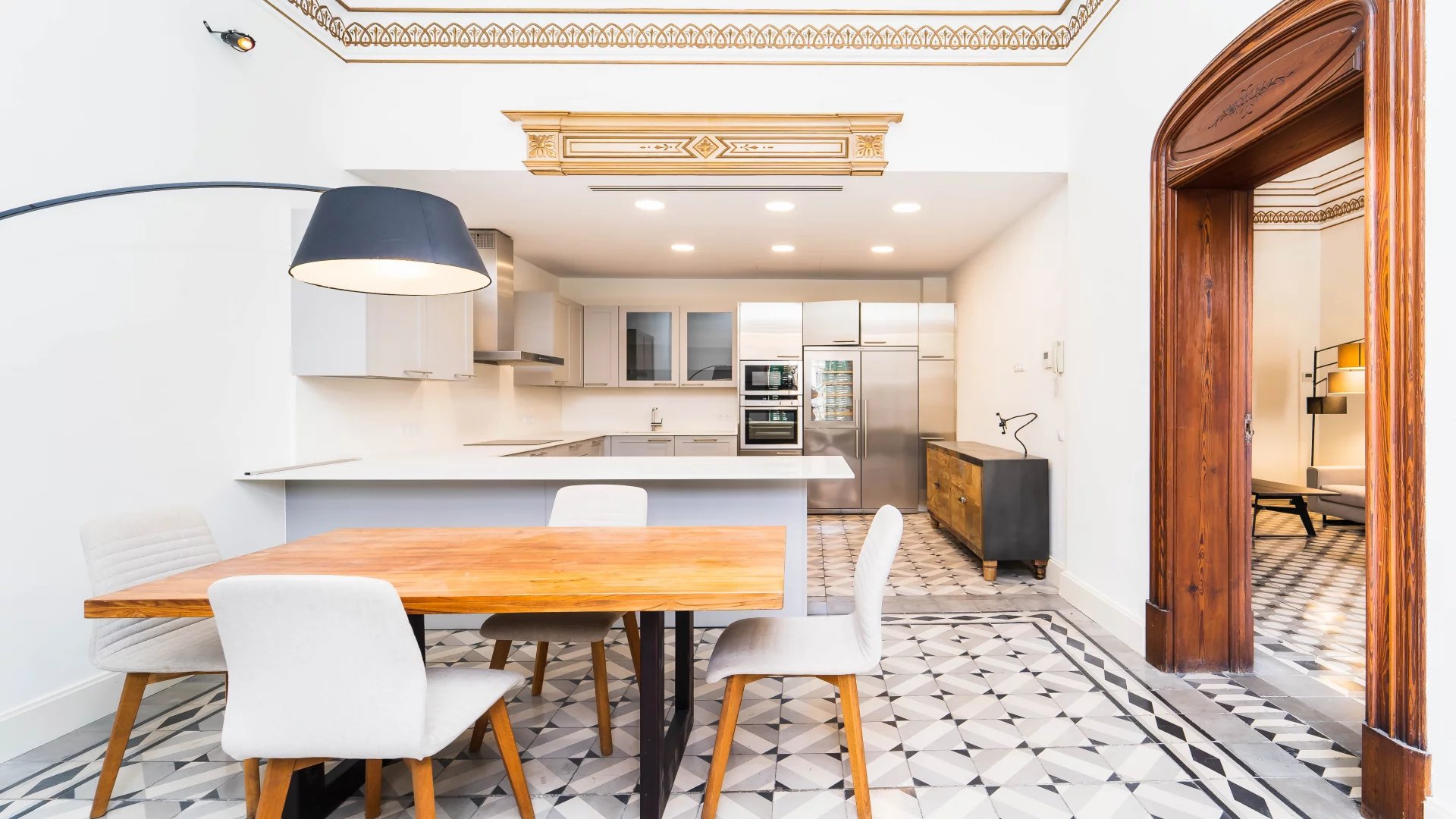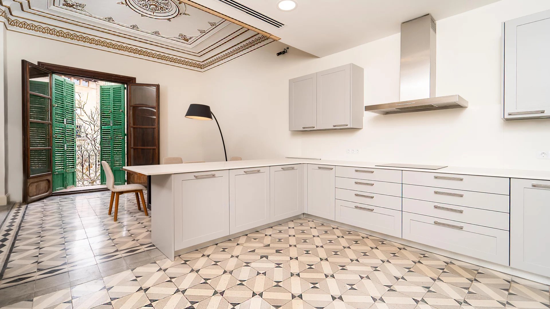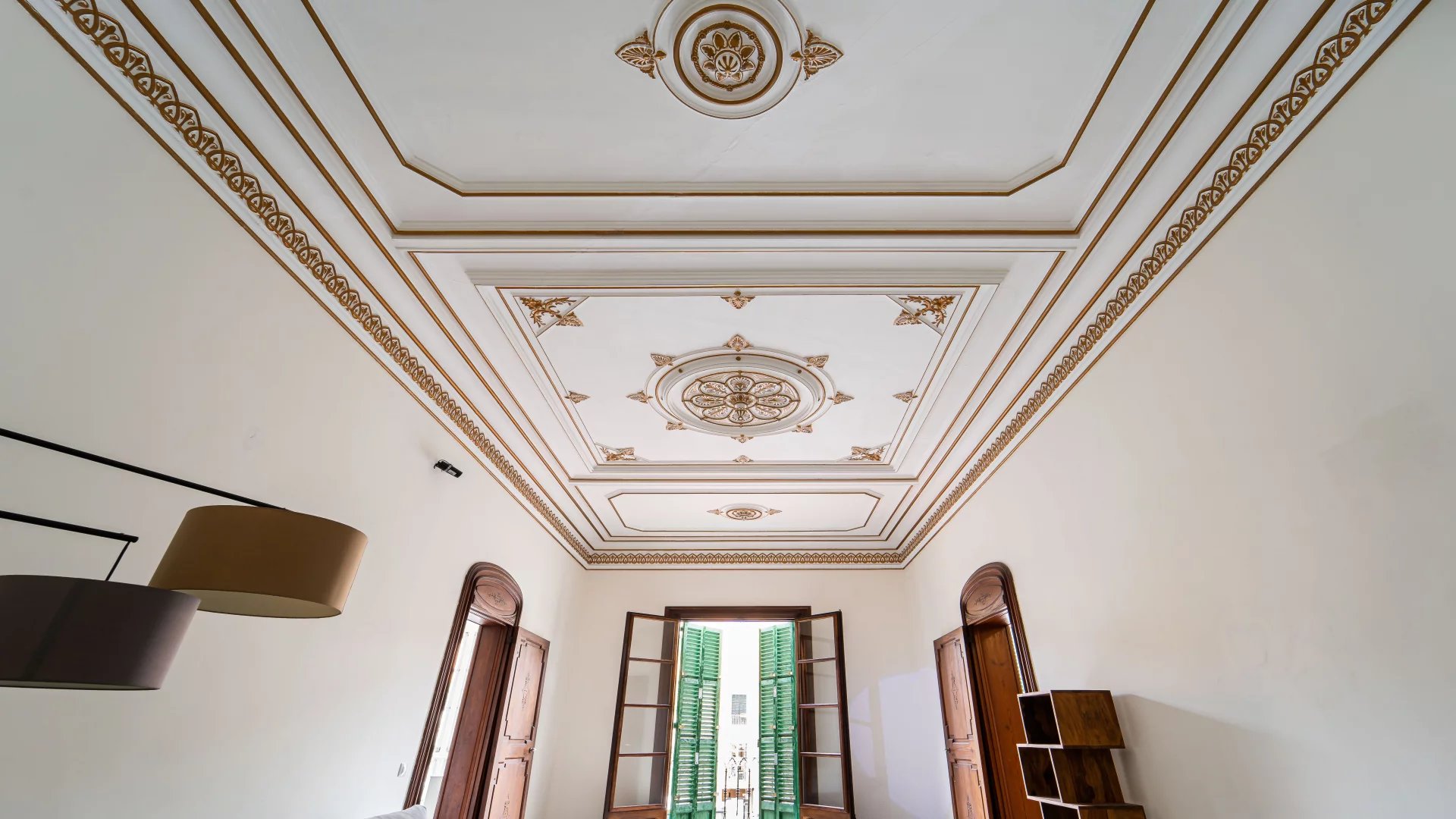 Ce grand appartement au premier étage est situé dans le quartier emblématique d'El Born, surplombant la promenade bordée d'arbres et à distance de marche de tout ce qui est nécessaire à un mode de vie quotidien très confortable. Dès l'entrée, les très hauts plafonds dans les zones sociales de la propriété avec un travail artisanal impeccable comprenant des rosettes, des moulures et des corniches ainsi que les fenêtres originales du sol au plafond et le carrelage hydrolique d'origine assurent la garantie d'avoir le caractère et le charme de la vieille ville. La propriété comprend 4 chambres, 3 salles de bains (dont 2 en suite), une cuisine/salle à manger entièrement équipée, un grand salon et un studio/bureau séparé, idéal pour ceux qui travaillent à domicile. Un véritable bijou dans l'un des meilleurs emplacements de la ville.