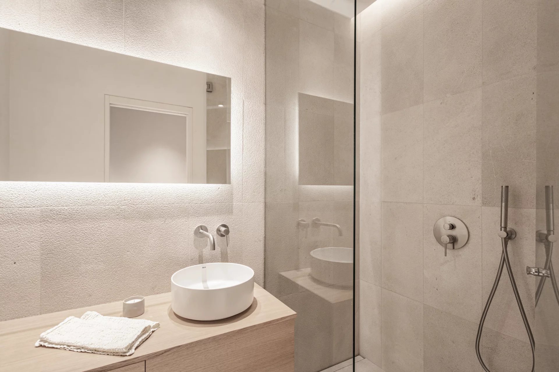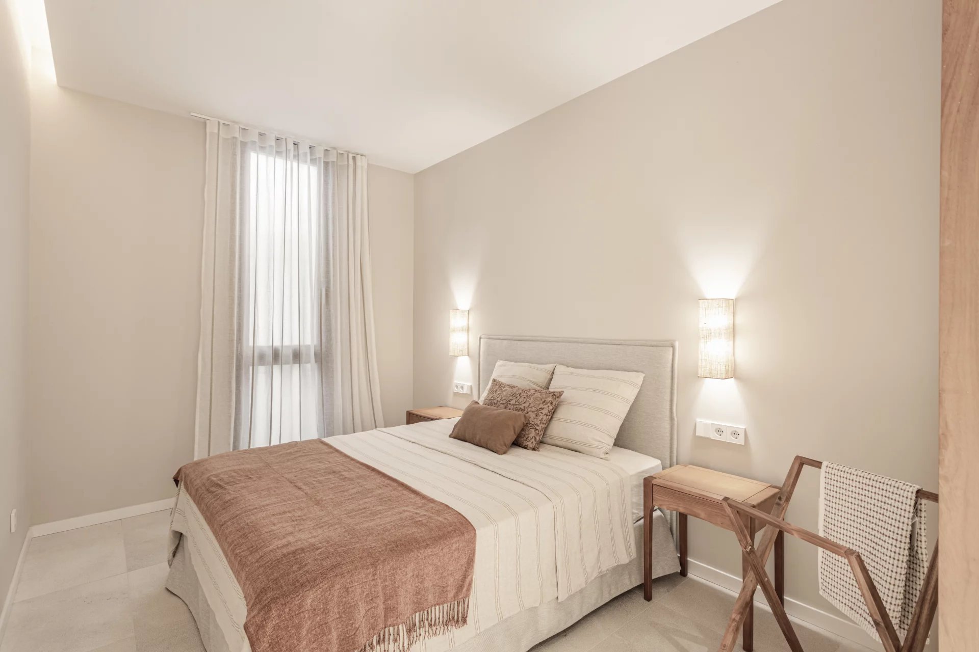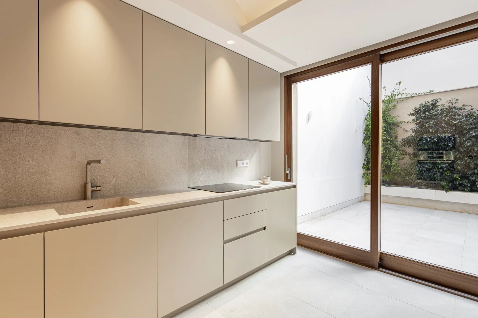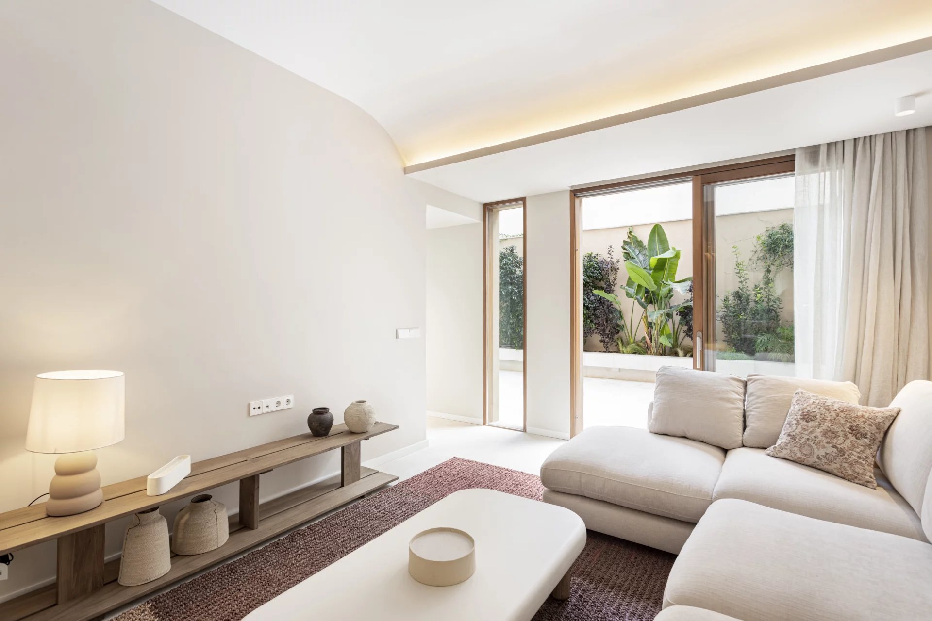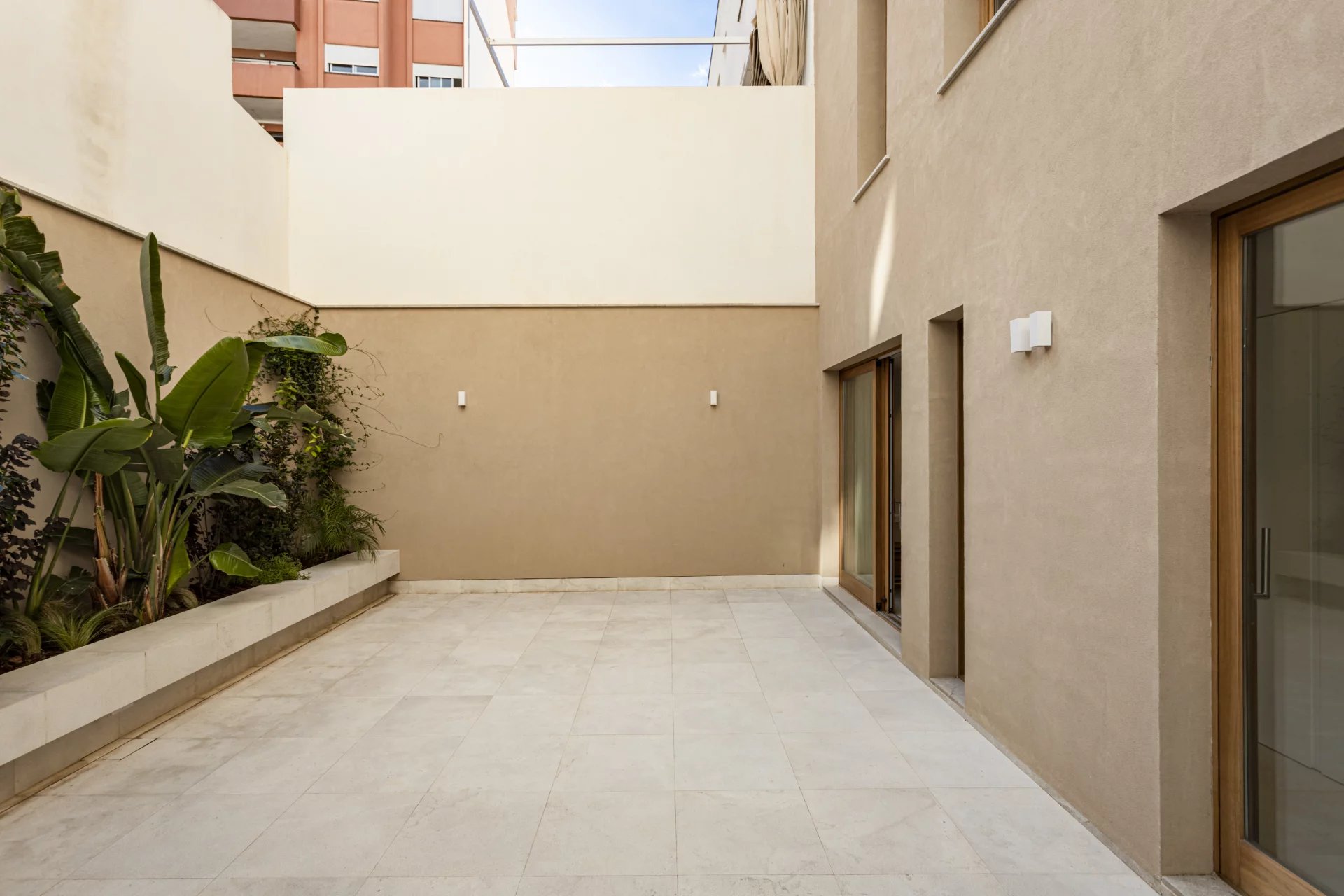 En savoir plusL'appartement du rez-de-chaussée comprend deux chambres, deux salles de bains, dont une en suite, une cuisine ouverte, un salon-salle à manger avec accès direct à la terrasse de 30m2.