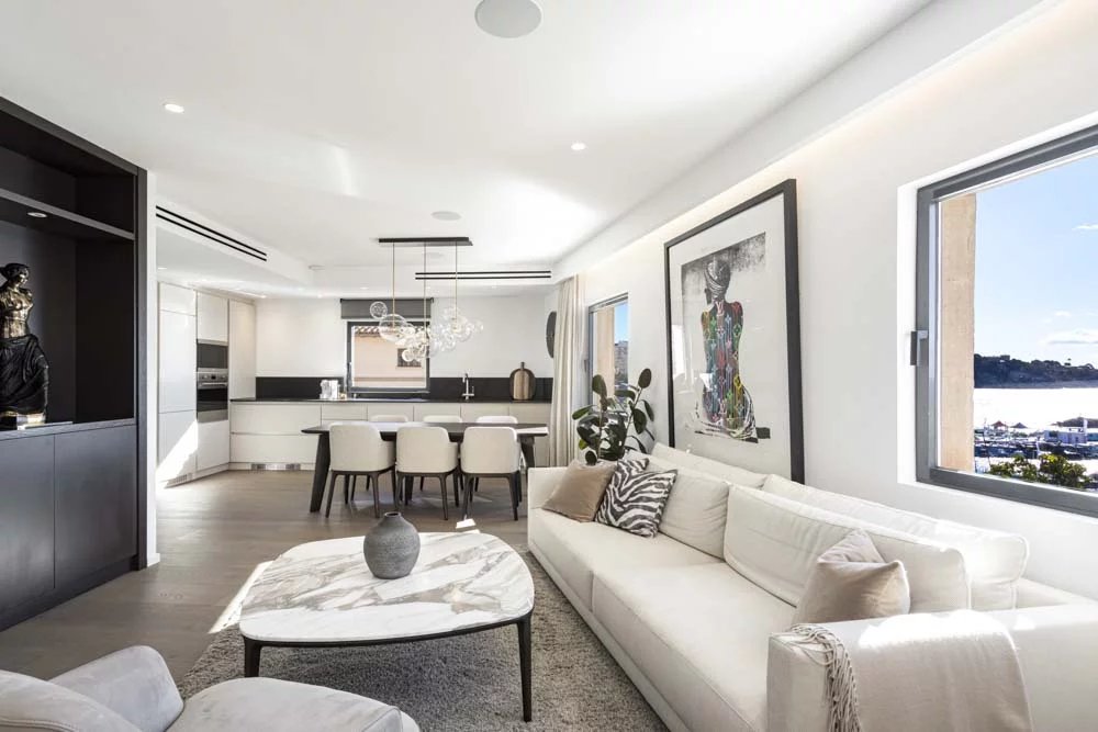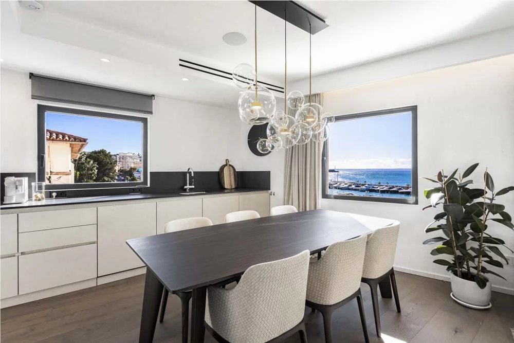 Penthouse nouvellement construit dans l'un des meilleurs emplacements de Majorque avec la marina de Calanova comme voisin. Vues panoramiques sur le port et la mer depuis toutes les pièces de ce penthouse unique. L'intérieur est composé des meilleurs matériaux et des marques les plus exclusives. Il comprend une cuisine ouverte entièrement équipée, une salle à manger et un salon, deux chambres, deux salles de bains (dont une en suite) et une buanderie. L'ensemble de l'appartement bénéficie d'une climatisation centrale, d'un chauffage par le sol et d'une chaîne hi-fi intégrée. Depuis le salon, on accède à la terrasse sur le toit par un escalier design fait sur mesure qui offre des vues vraiment spectaculaires. La terrasse comprend une cuisine d'été avec un barbecue et un réfrigérateur, idéale pour les repas à l'extérieur et pour profiter de la vue ou simplement pour se détendre. L'immeuble dispose d'une piscine et d'une terrasse communes. Le penthouse sera vendu entièrement meublé et décoré à l'exception de la collection d'art. Possibilité d'obtenir un garage à proximité immédiate.