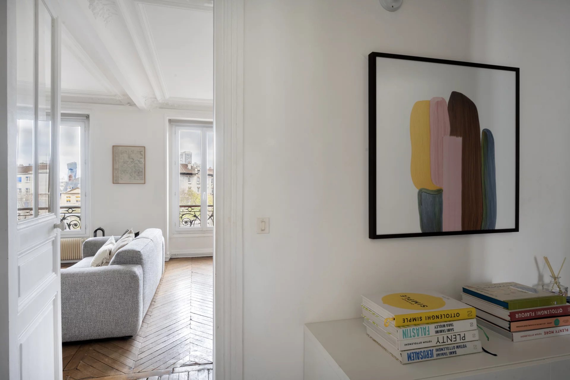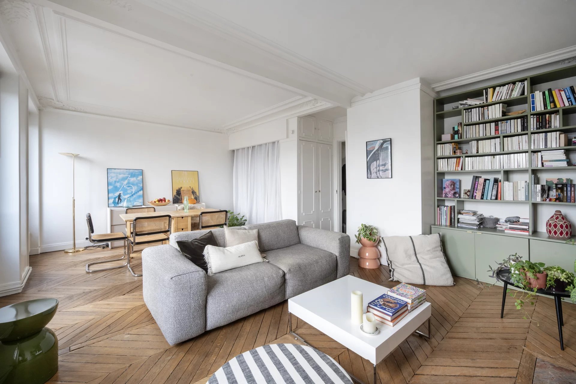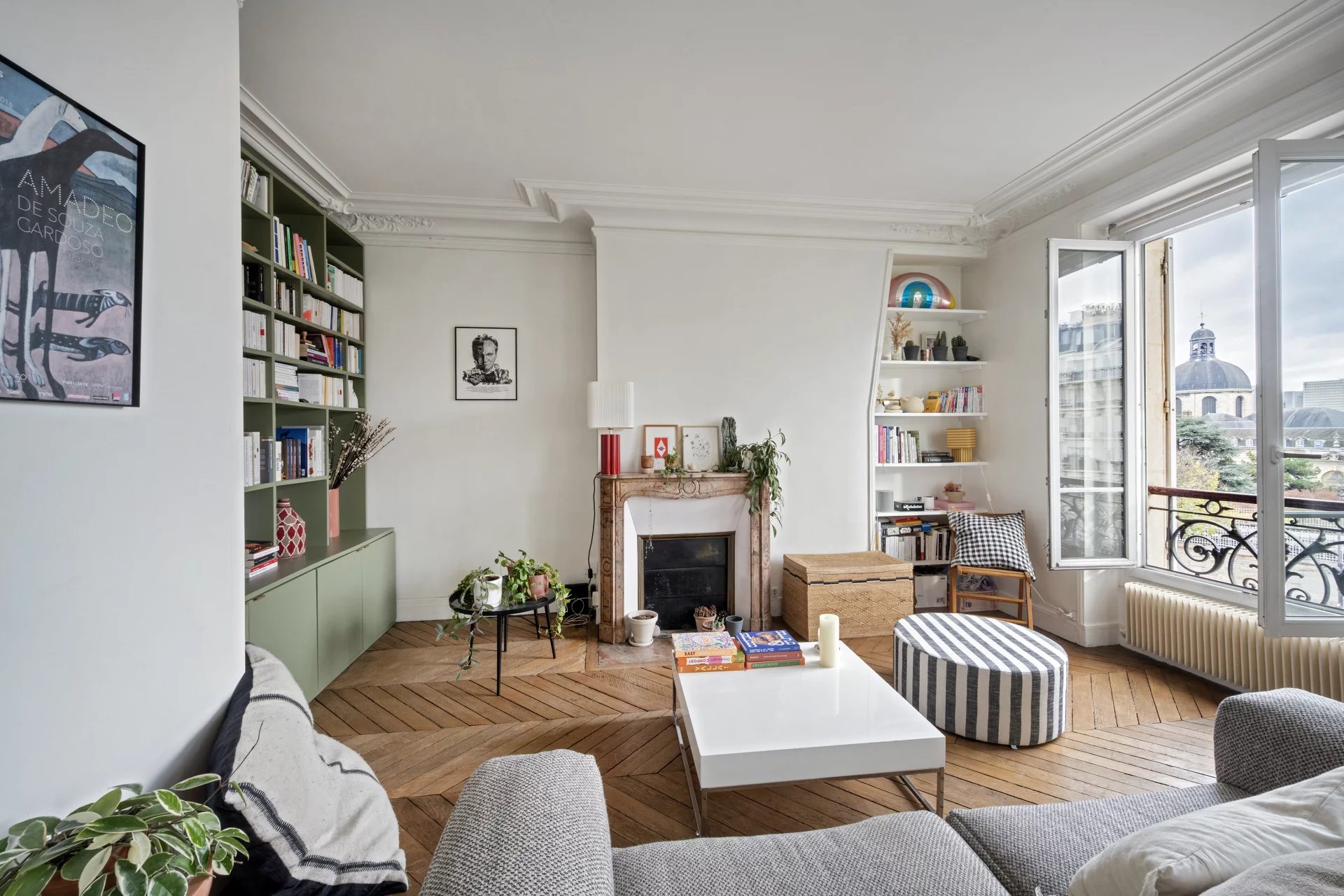 • Un séjour spacieux et un espace dînatoire, baignés de lumière, avec vue dégagée sur le dôme de la Chapelle Saint-Louis de la Salpêtrière.