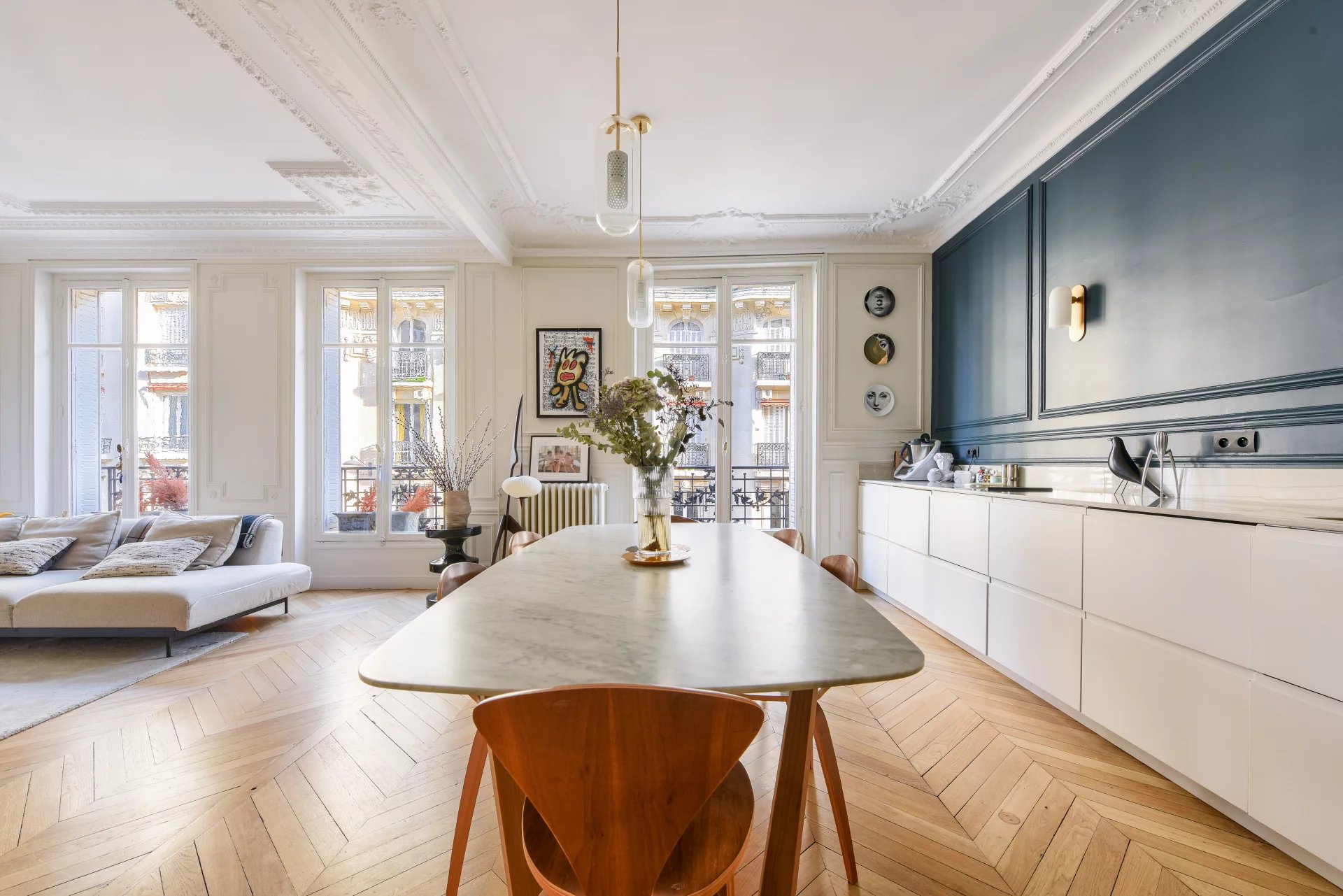 Au 3ᵉ étage d’un immeuble de standing datant de 1911, un appartement unique sur le palier de 147 m². Traversant et lumineux, il bénéficie d’une belle hauteur sous plafond et d’une rénovation contemporaine de qualité, alliant confort et fonctionnalité.