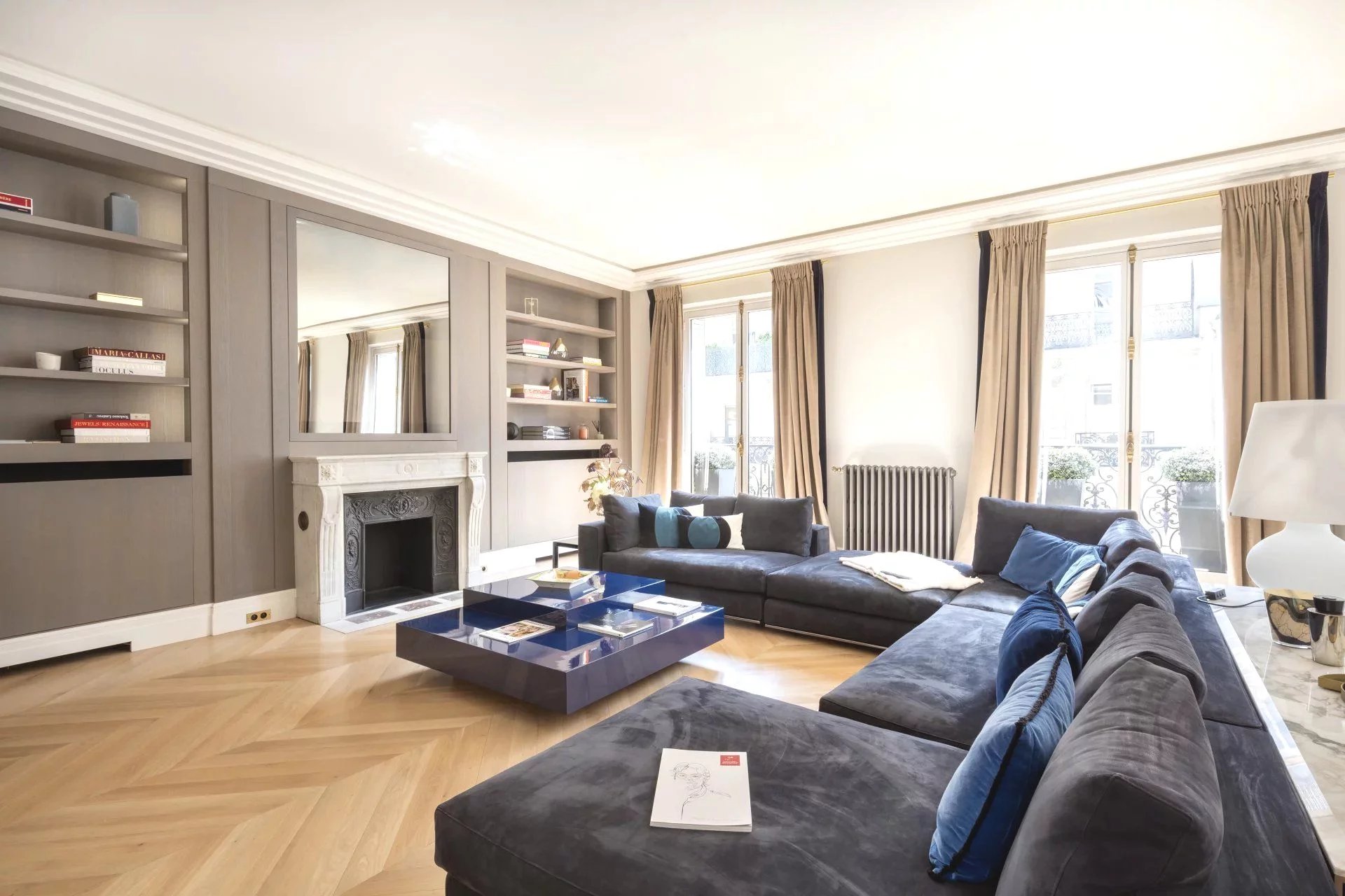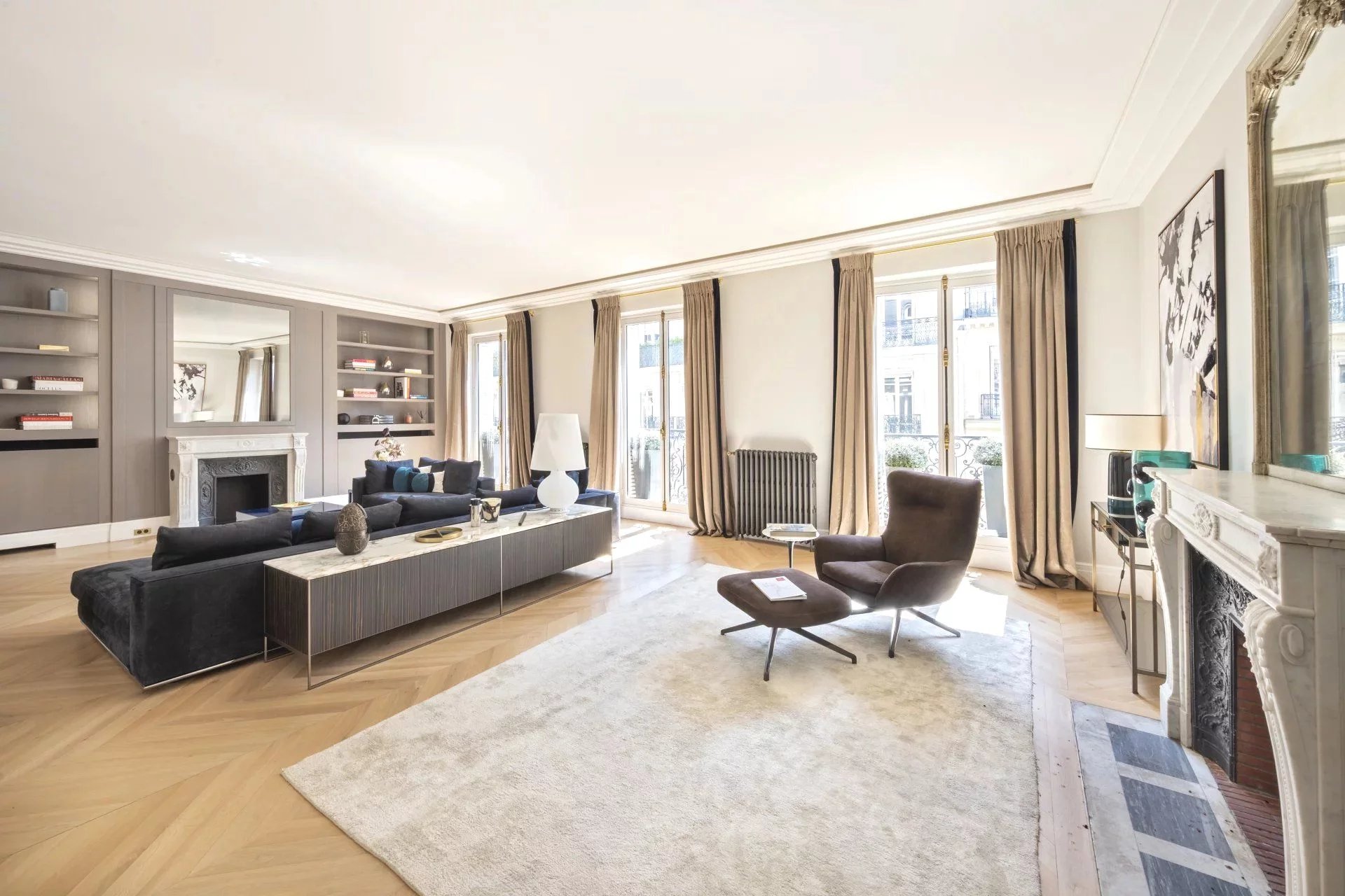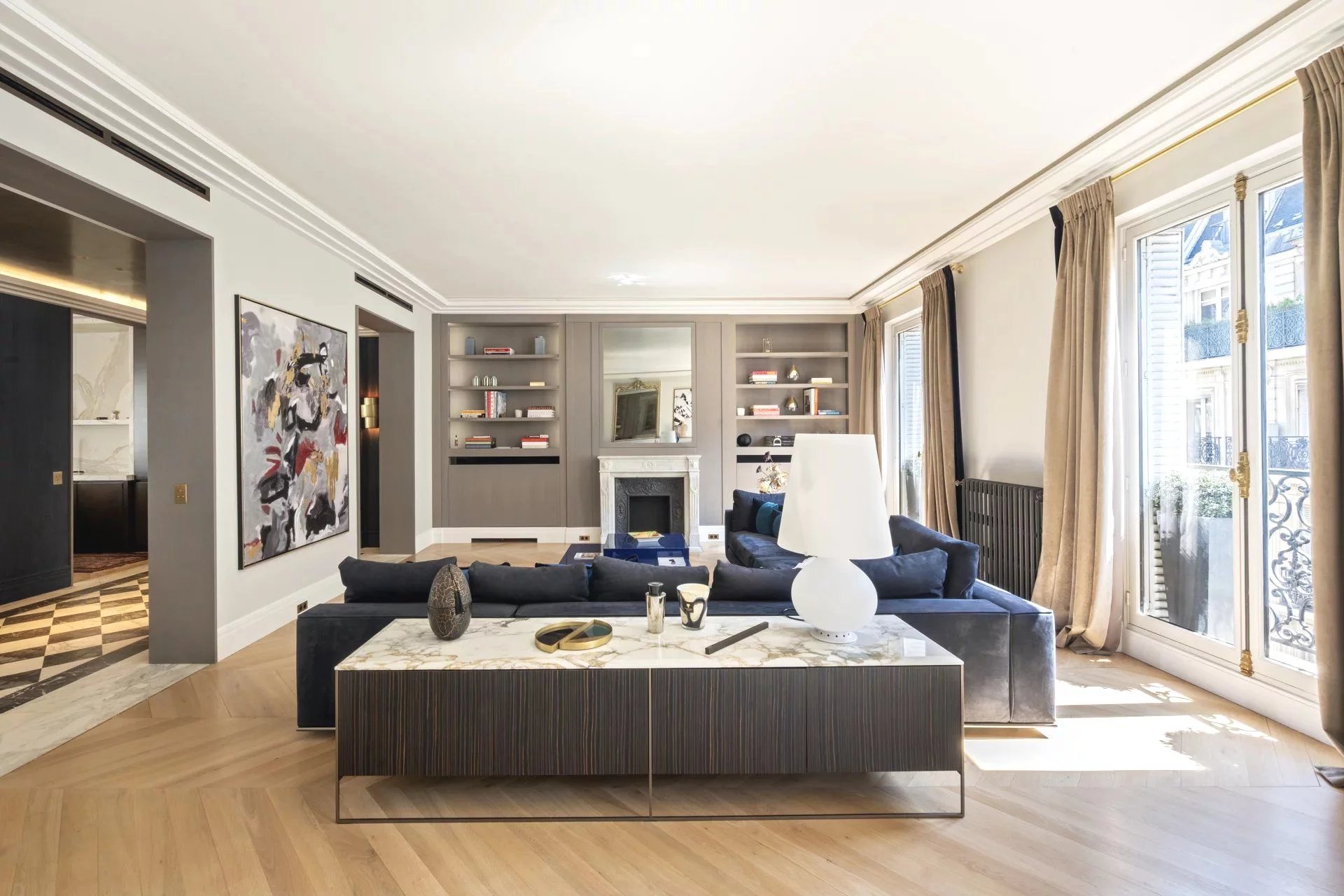 Situé rue Marbeuf, en plein cœur du Triangle d'Or du 8ème arrondissement, magnifique appartement de 232m2 entièrement refait à neuf.