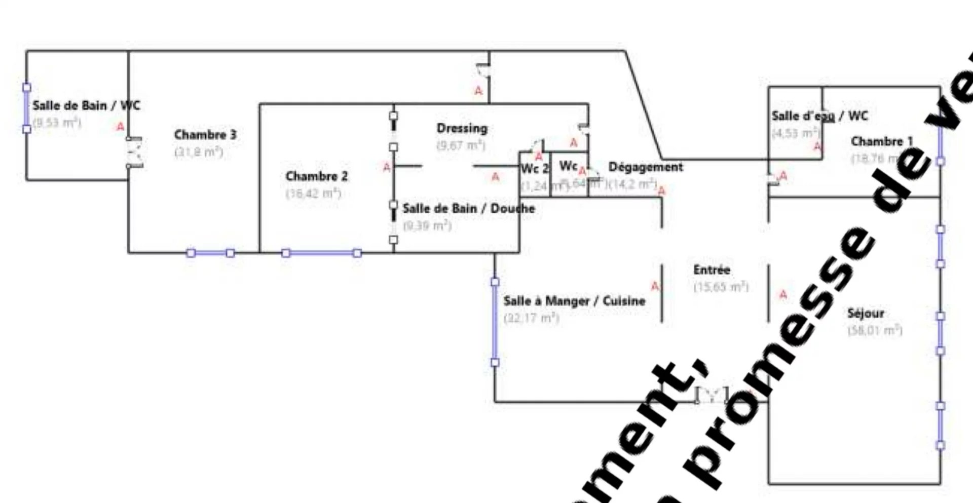Il comprend, une galerie d'entrée, une très belle réception, une salle à manger, une cuisine dinatoire, trois très grandes suites avec chambre, dressing, salle de bains toilettes, toilettes invités.