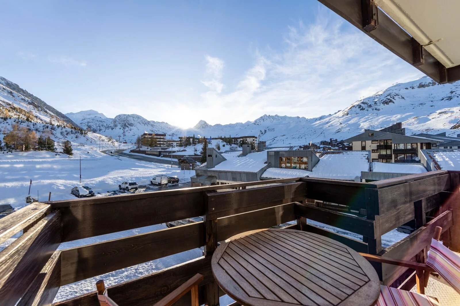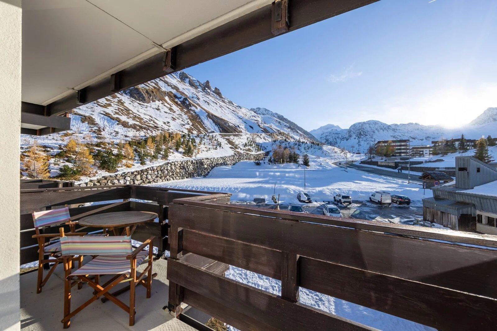 DEUX PIECES AVEC COIN MONTAGNE SKIS AUX PIEDS A TIGNES 2100
