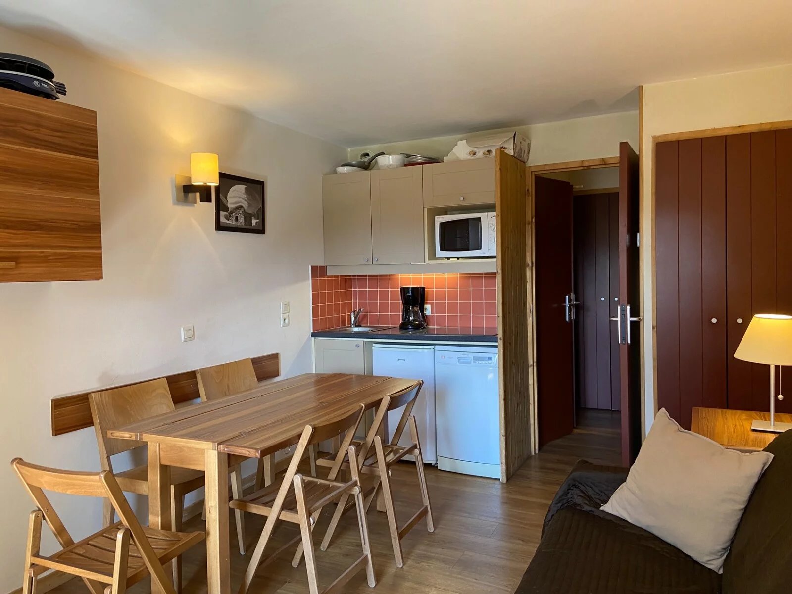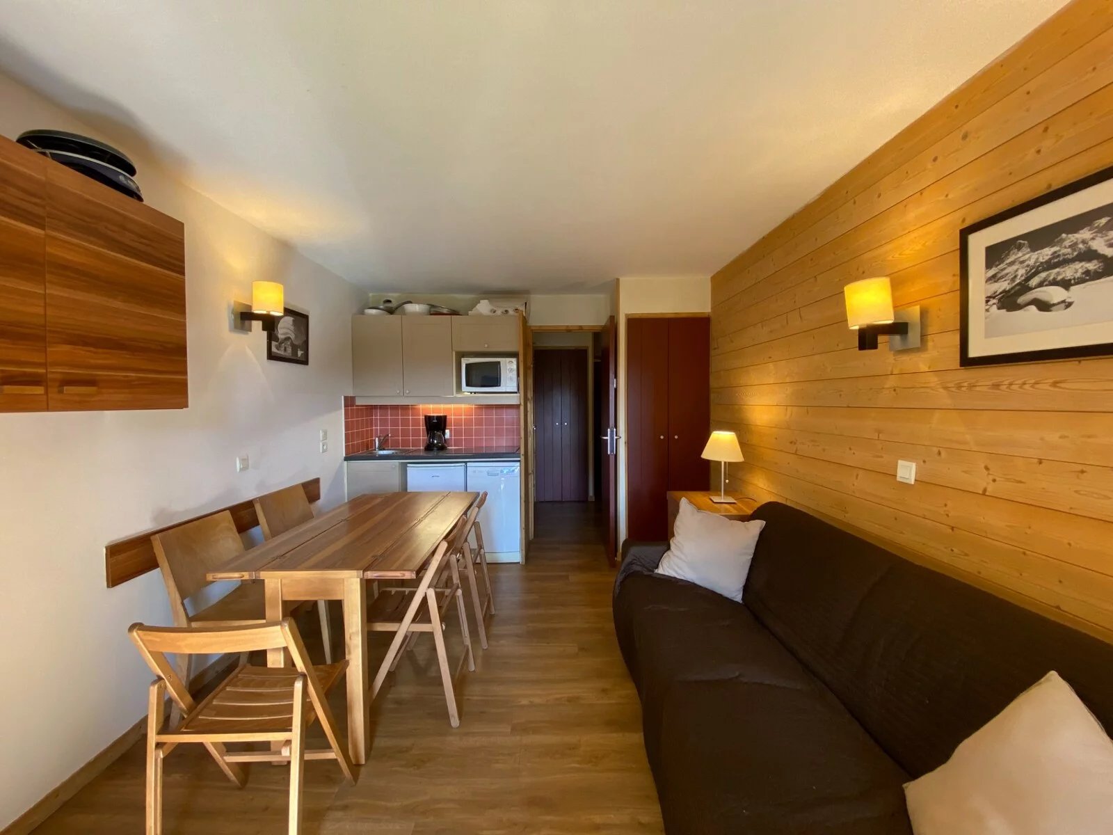 Cet appartement est idéalement situé sur les pistes et à proximité immédiate du départ des cours de ski. Venez découvrir le domaine skiable des 3 Vallées entre amis ou en famille, dans ce bien d'une superficie de 26.29 m². Il comprend une cuisine équipée ouverte sur un joli séjour, une chambre avec trois couchages, une salle de bains et des toilettes indépendantes. Grâce à son balcon, vous profiterez d'une splendide vue sur les pistes et sommets environnants. Vous bénéficierez également d'un casier à skis.