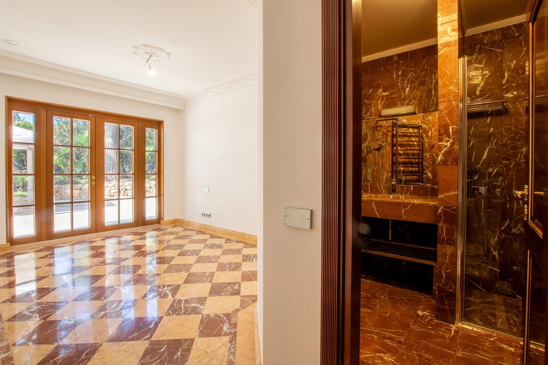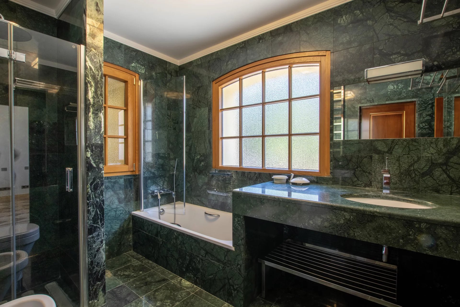 Composée d'un vaste séjour avec cheminée, salle à manger, cuisine indépendante, 4 chambres et 3 salles de bains. Un bureau (ou chambre).