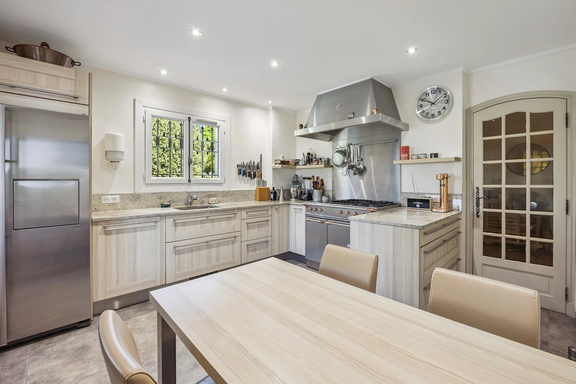 En savoir plusElle offre notamment un garage, un studio d’enregistrement (transformable en home cinéma), une cave à vin, trois séjours dont un avec cheminée, six chambres dont plusieurs en suite, trois cuisines équipées, des terrasses, un chalet en bois en dépendance, ainsi qu’un beau jardin doté d'une piscine à débordement avec jacuzzi.