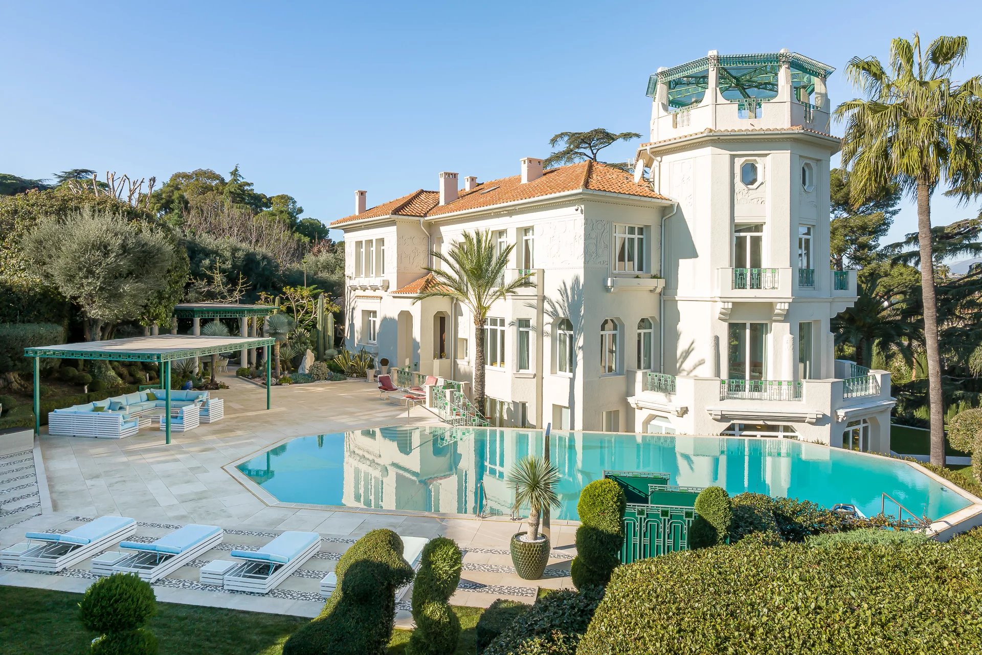 Ce magnifique ensemble immobilier de prestige est situé au cœur du célèbre Cap d'Antibes et s'étend sur plus d'un hectare de terrain. Complètement rénové avec des matériaux de haute qualité, il se compose de trois biens immobiliers exceptionnels. La maison principale est répartie sur trois niveaux et propose une vaste réception, une salle à manger, une suite de maître, quatre chambres d'amis, un bureau, des dressings, une salle de sport et un ascenseur. La maison d'amis, quant à elle, est composée de trois suites, d'un appartement pour le personnel comprenant deux chambres, un sauna, un hammam et une salle de massage. La propriété dispose également d'une piscine, d'un court de tennis, d'un garage pouvant accueillir de 6 à 8 voitures et d'une beach house pieds dans l'eau comprenant un salon, une salle à manger et trois chambres. Cette propriété d'exception est idéale pour les amateurs d'immobilier de prestige à la recherche d'un cadre unique et privilégié.