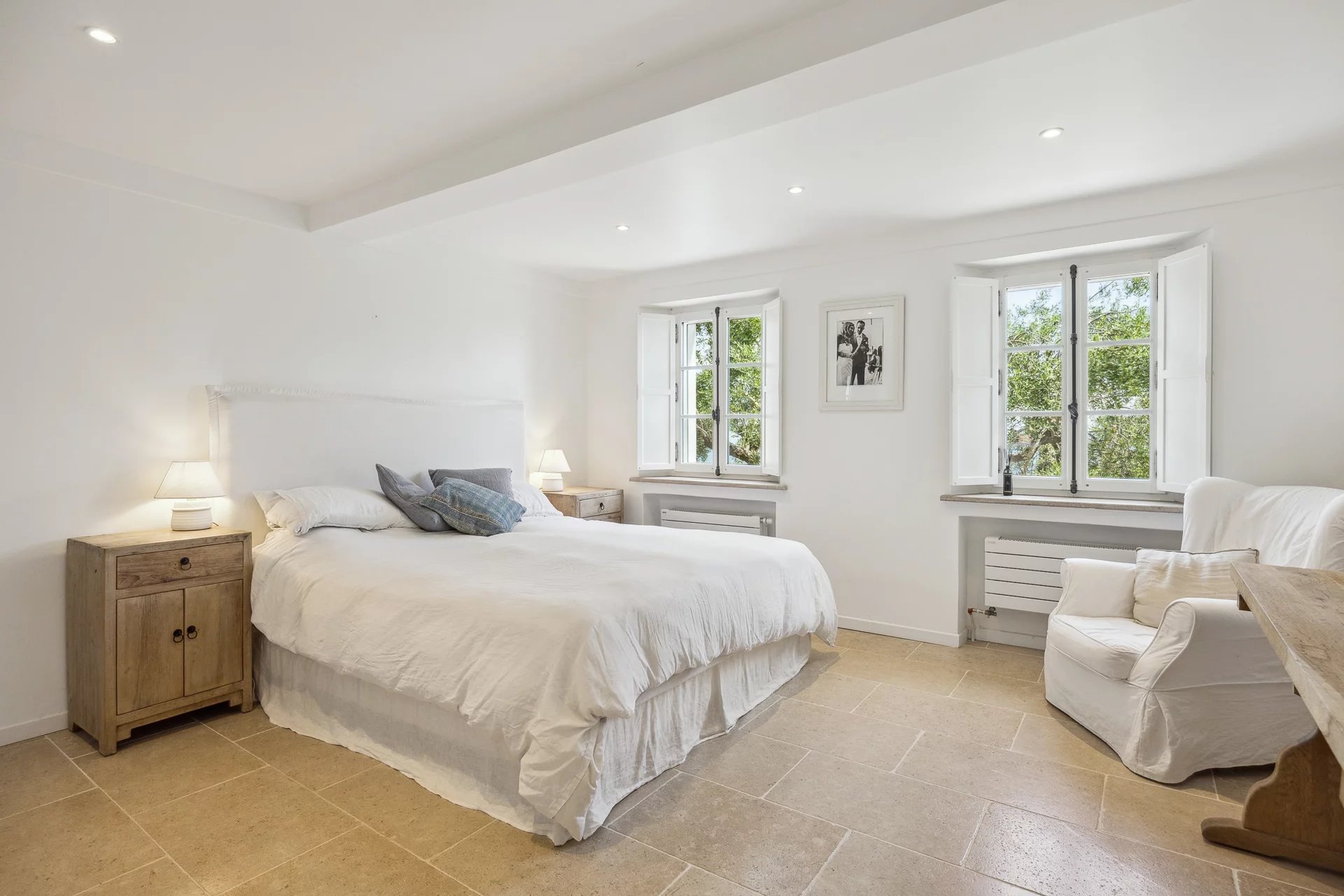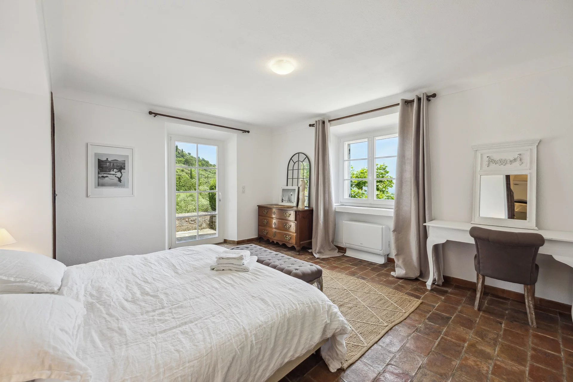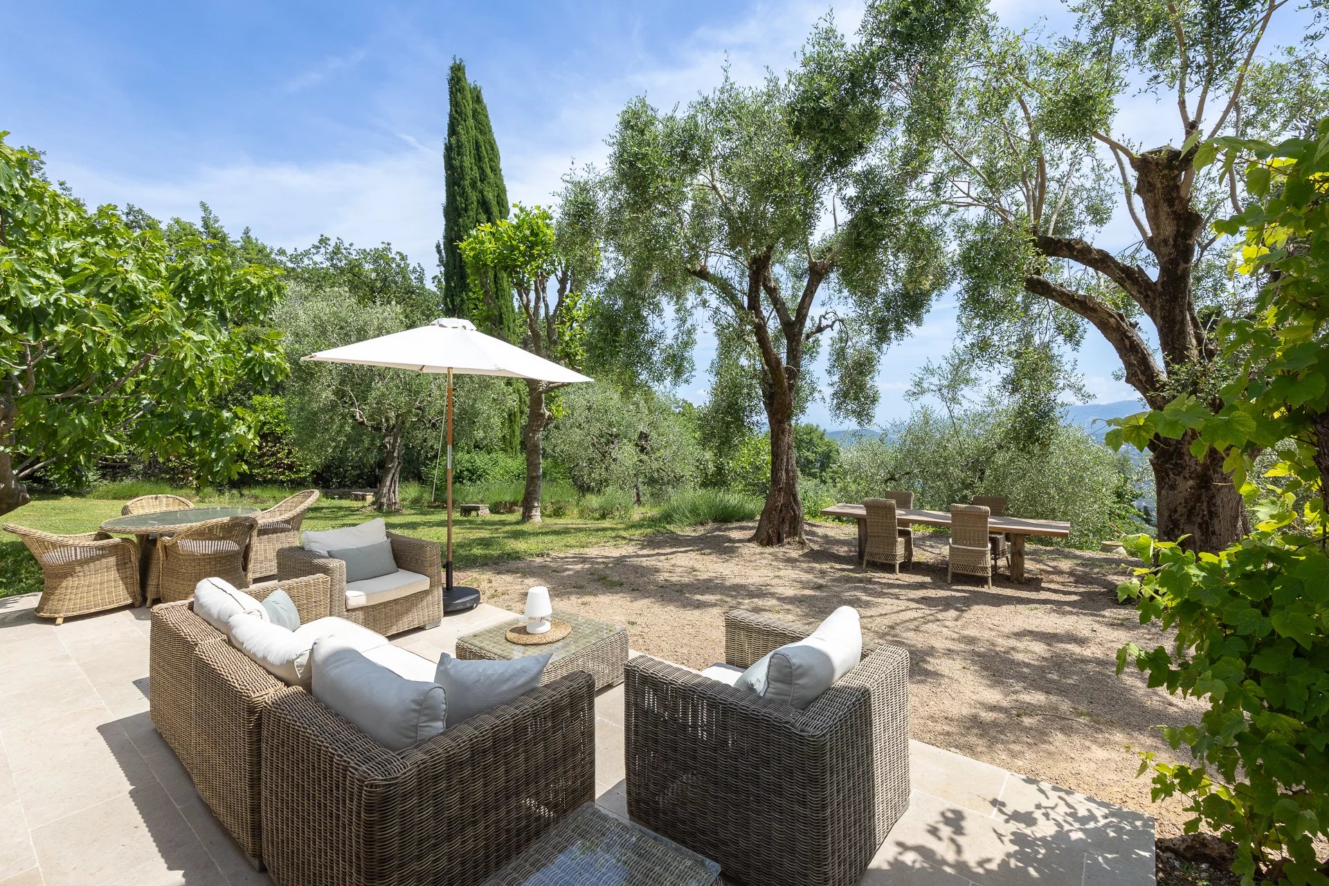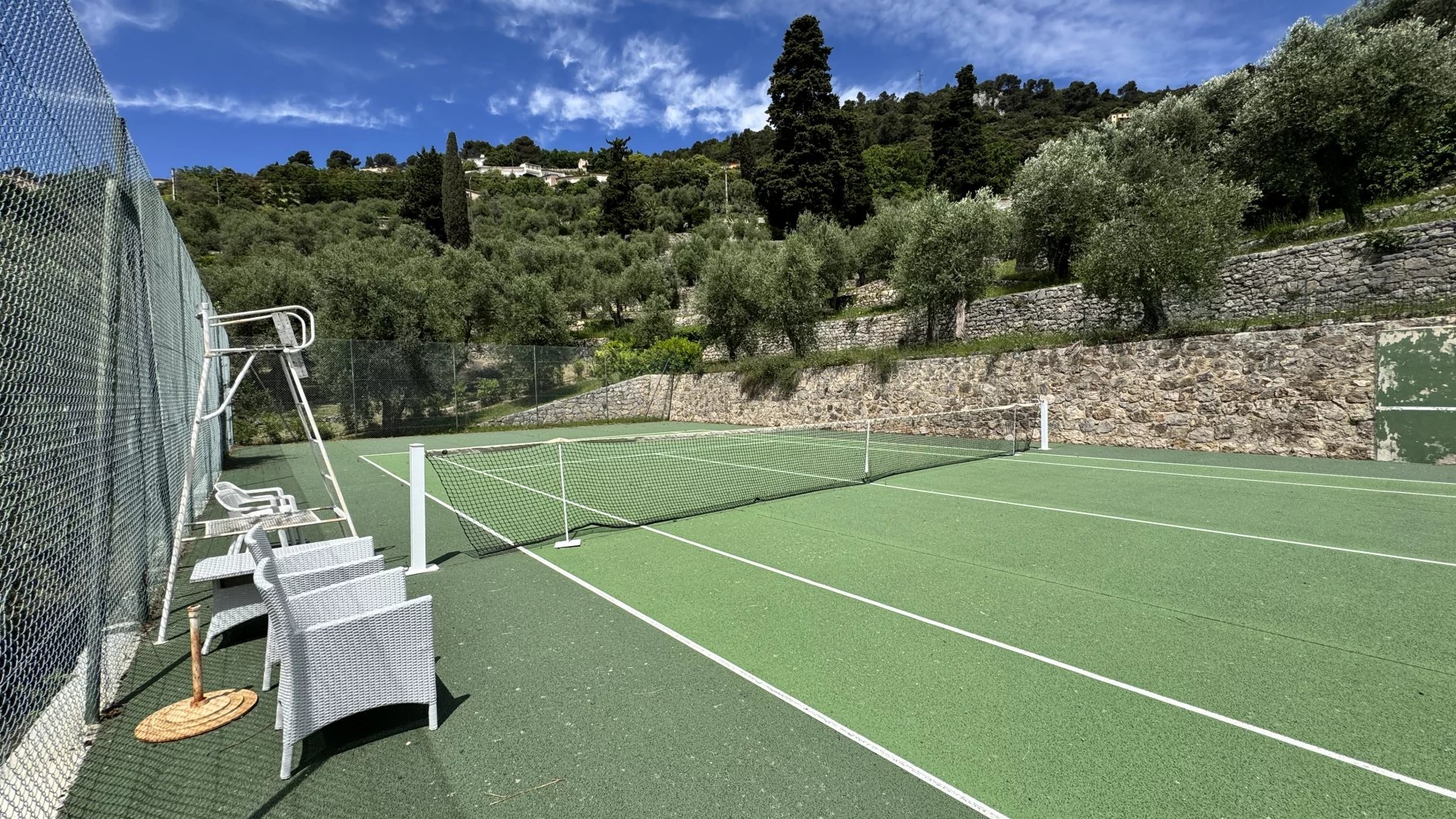 Domaine vue mer et lac, oliveraie , tennis avec villa principale et pavillon d'hôtes.