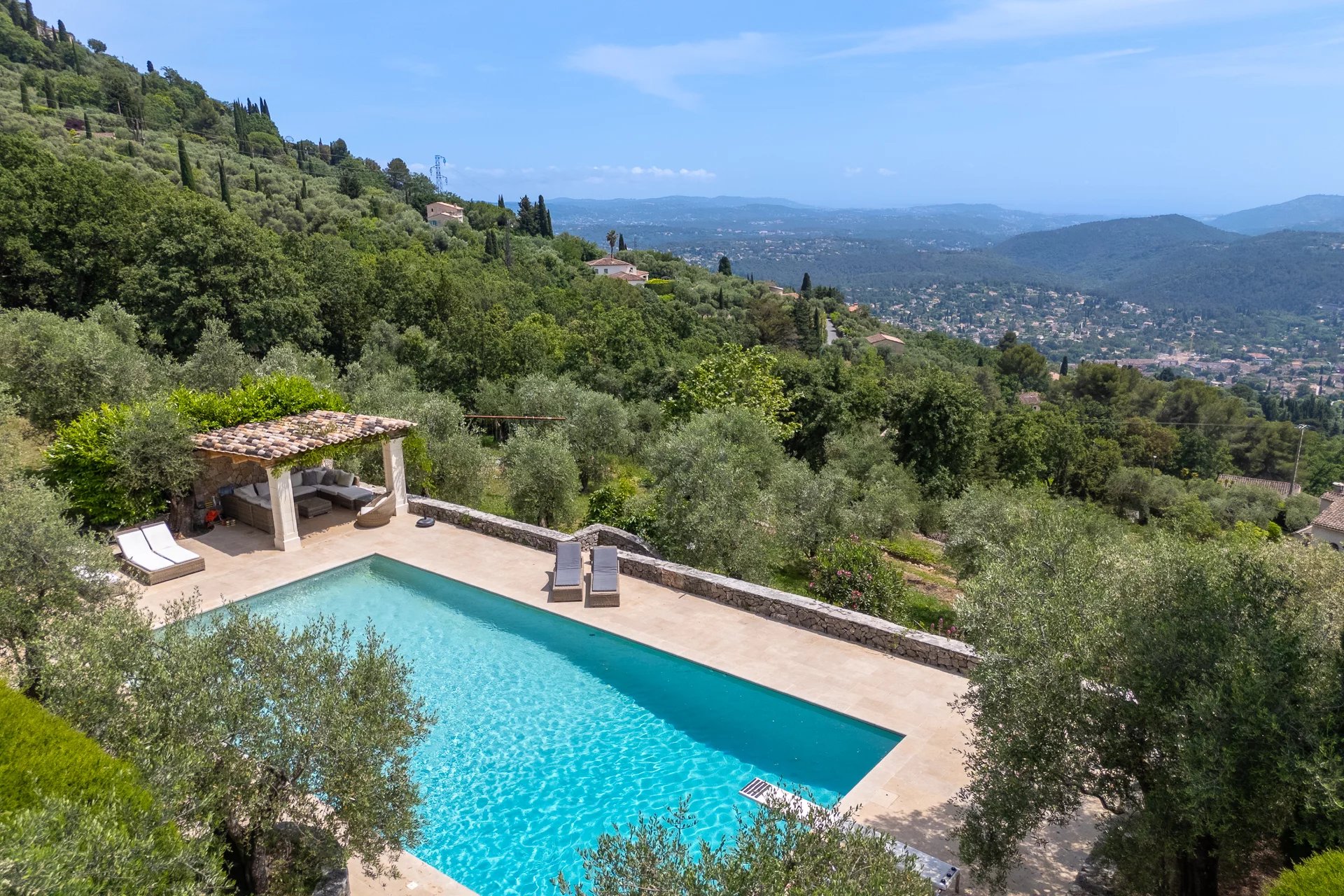 Sise sur les hauteurs de Cabris , au coeur d'une superbe oliveraie, ce domaine de 2.5ha est agrémenté d'une villa principale , d'un pavillon d'hotes et d'une maisonnette avec bureau à l'étage et salle de sport en rez de jardin.