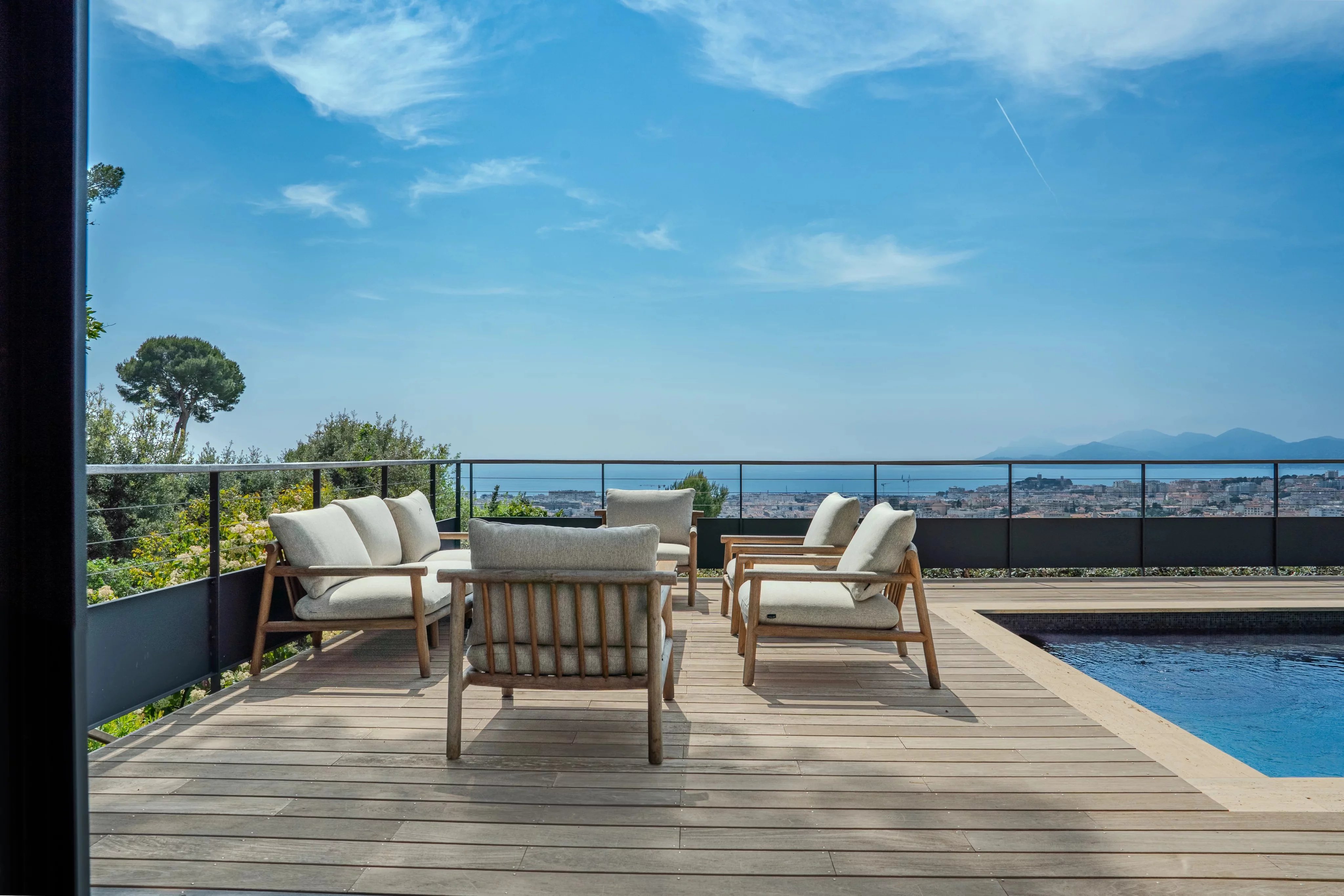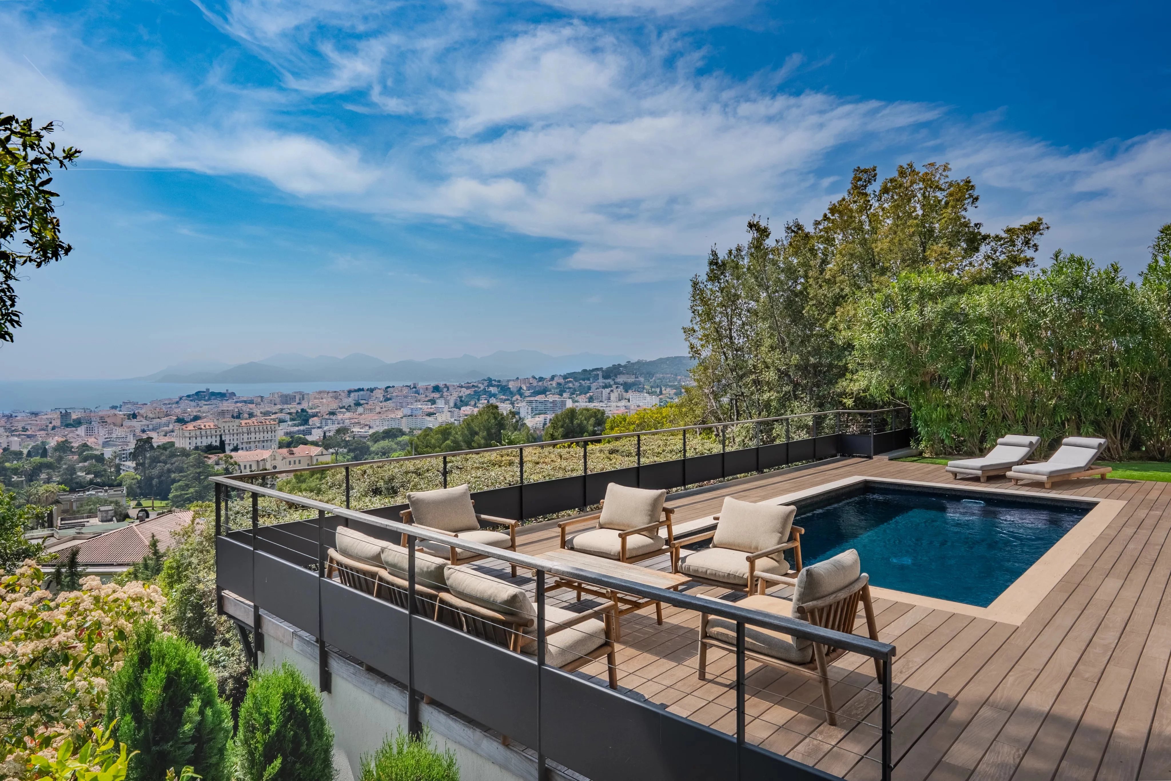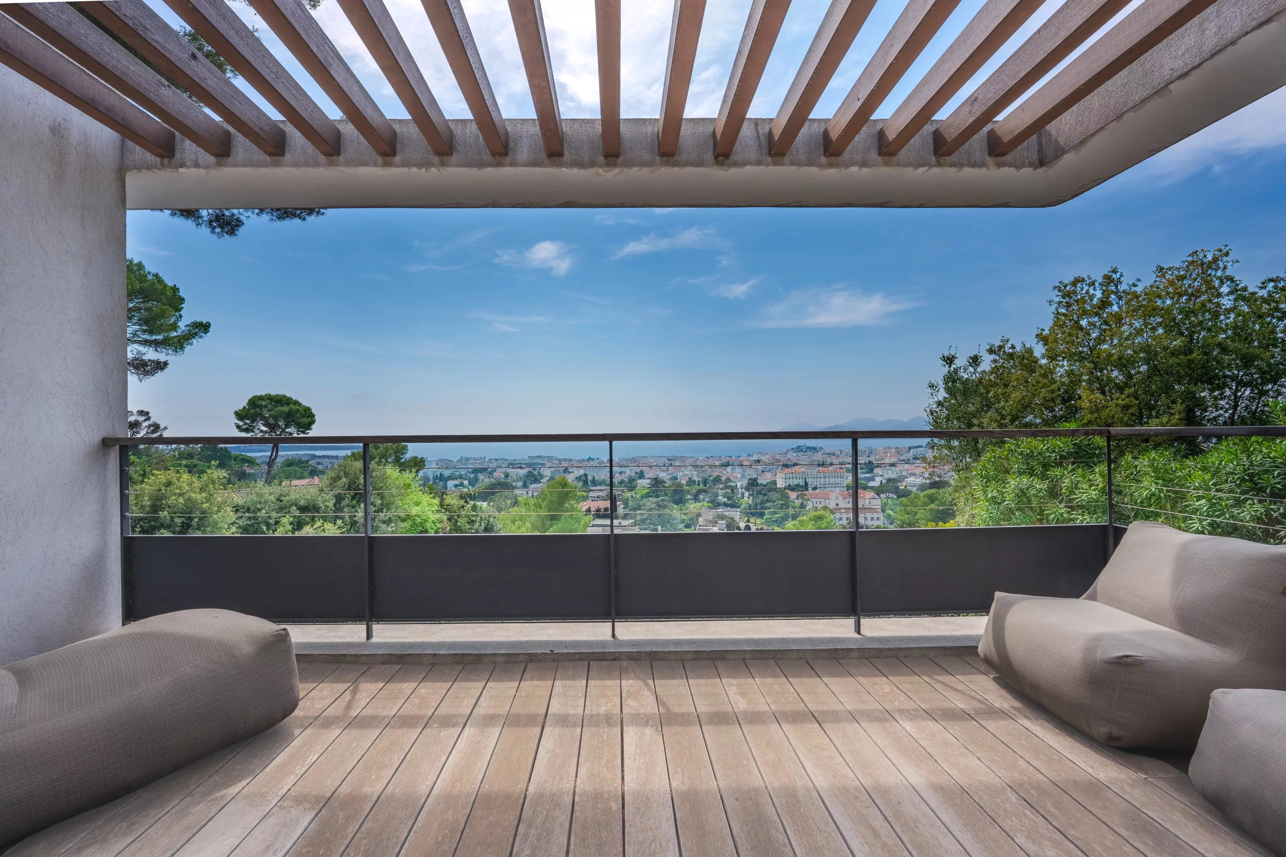 Bénéficiant d'une vue panoramique sur la Baie de Cannes, cette superbe réalisation contemporaine offre des prestations extrêmement raffinées.