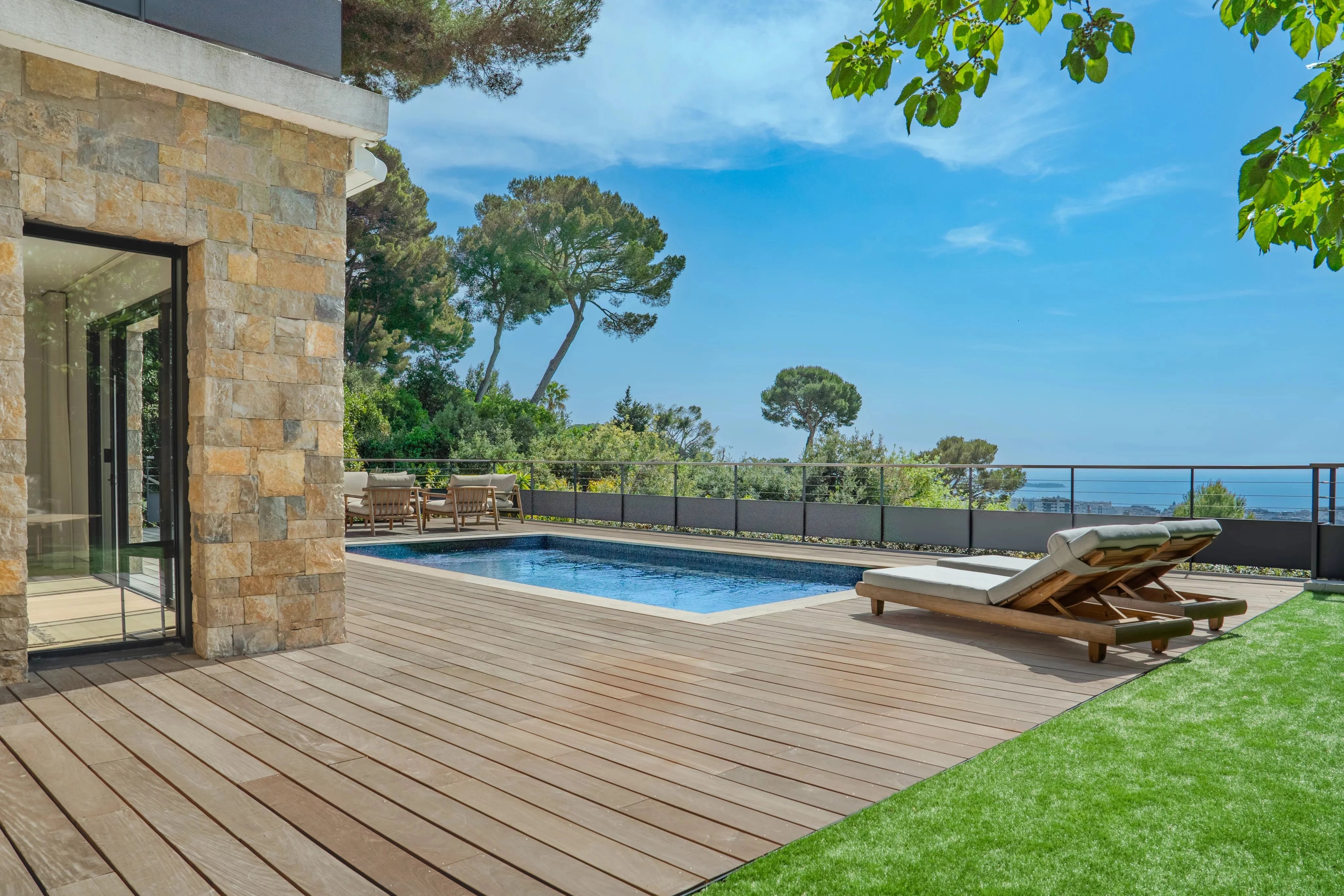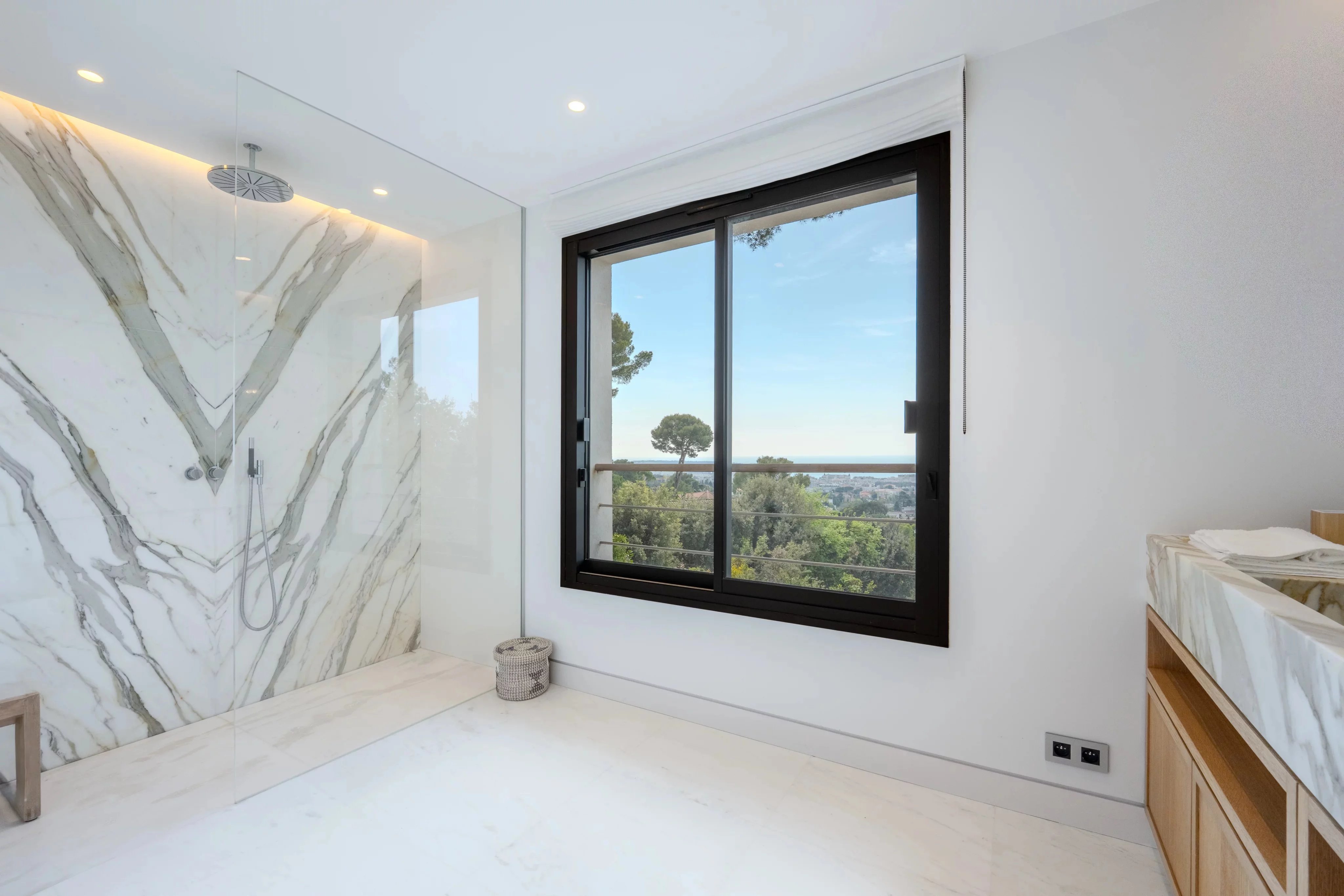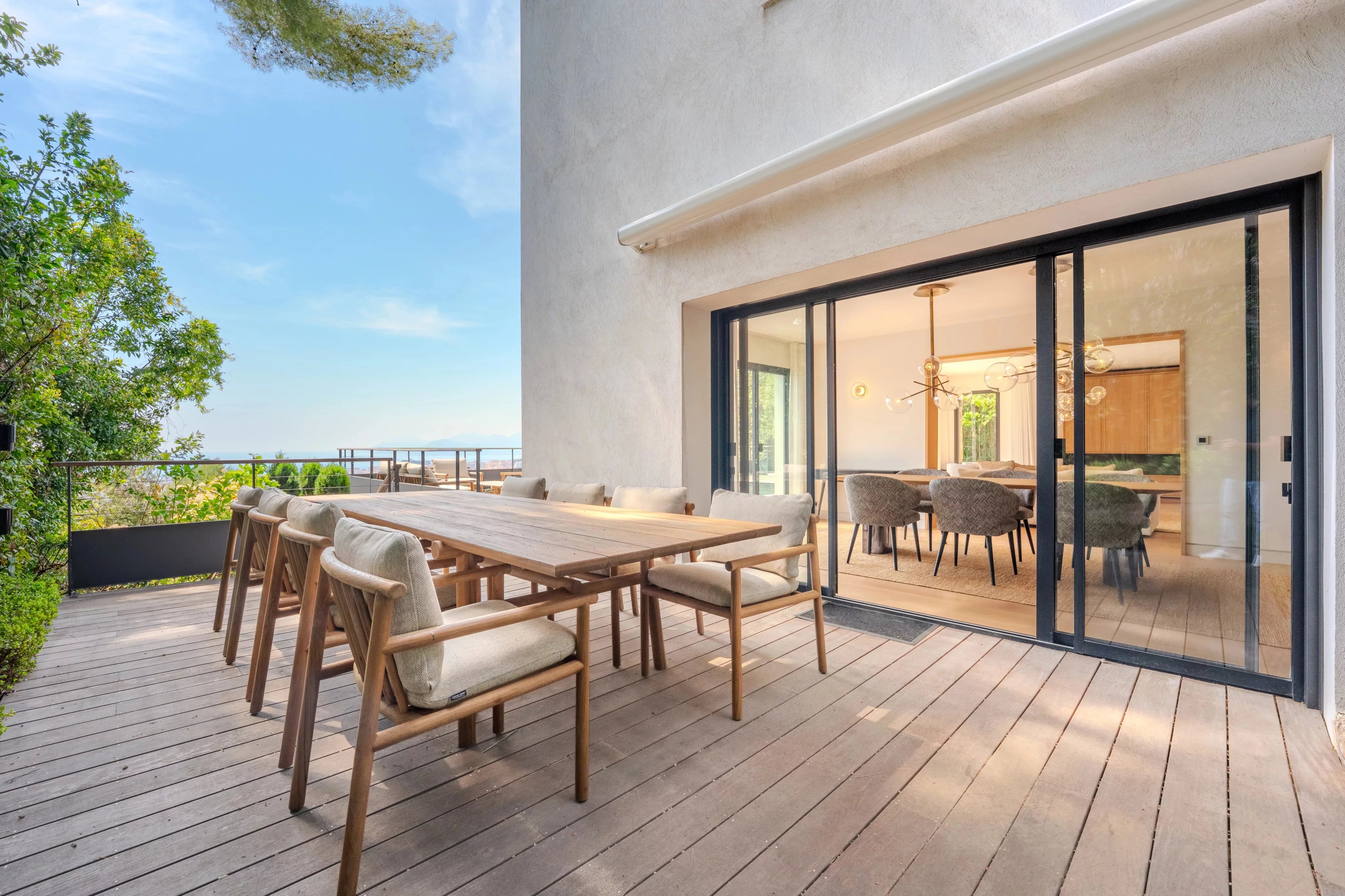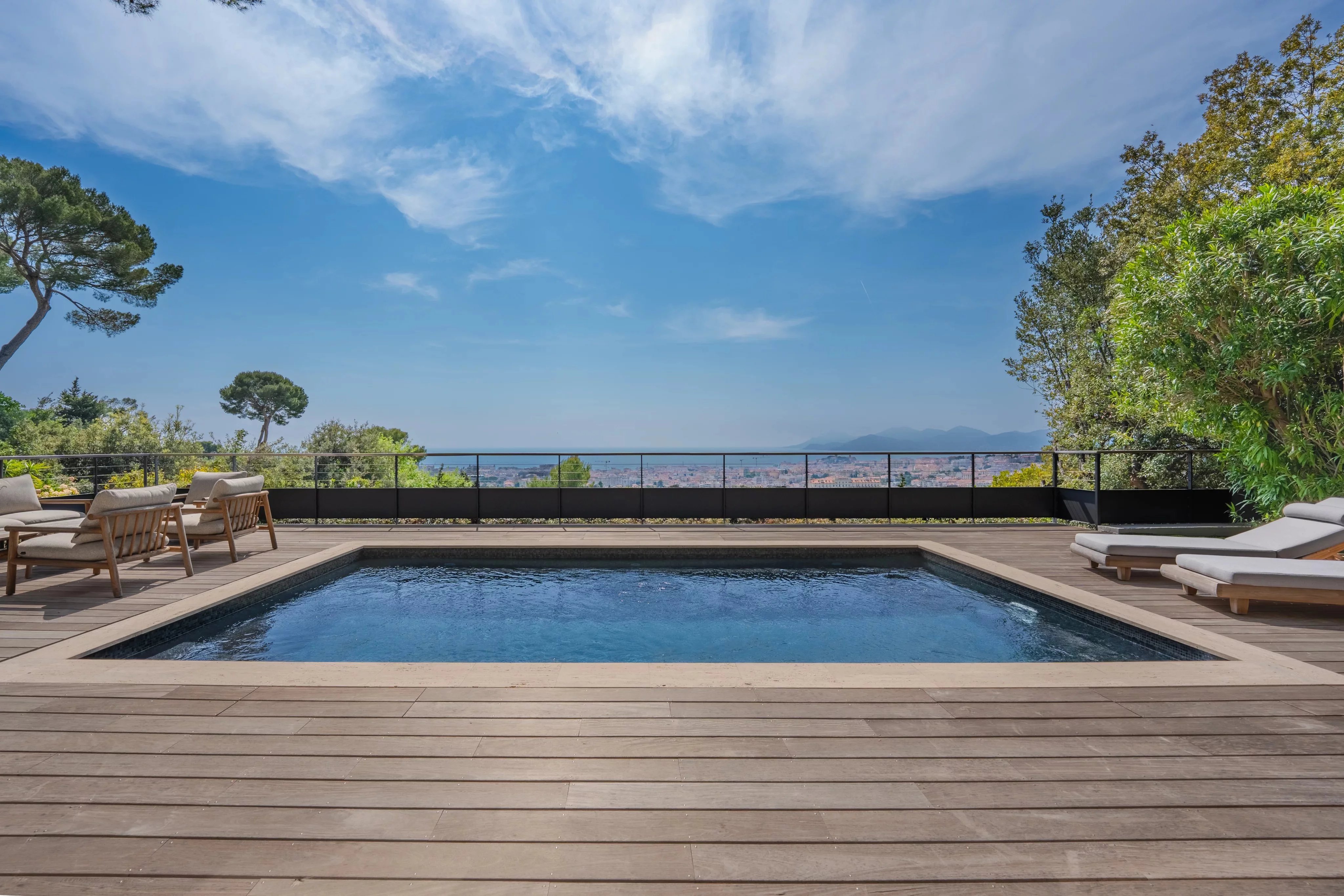 Bénéficiant d'une vue panoramique sur la Baie de Cannes, cette superbe réalisation contemporaine offre des prestations extrêmement raffinées.