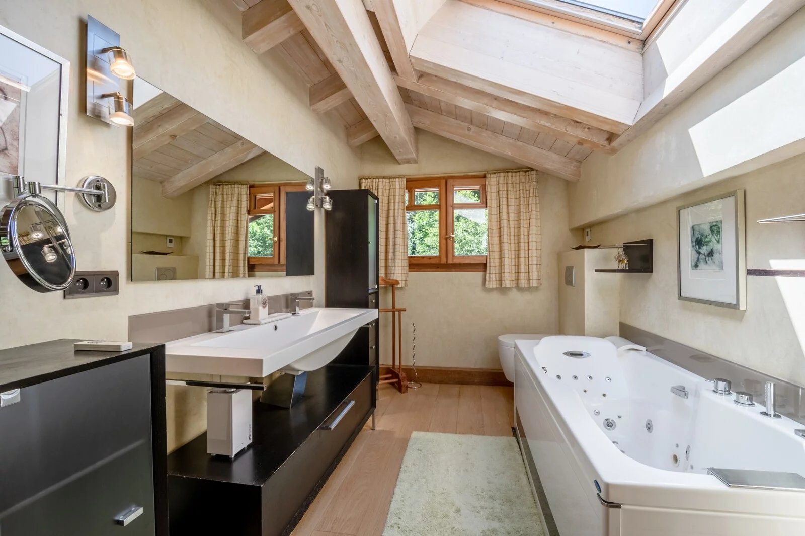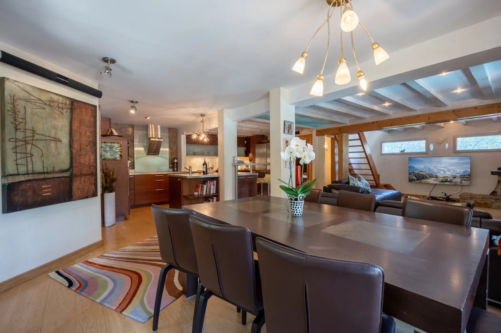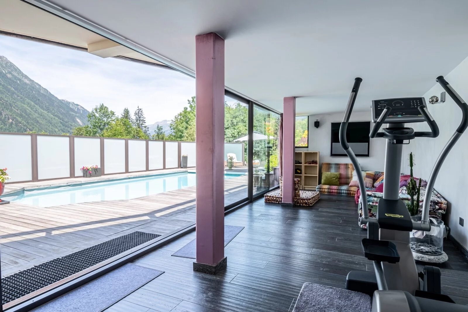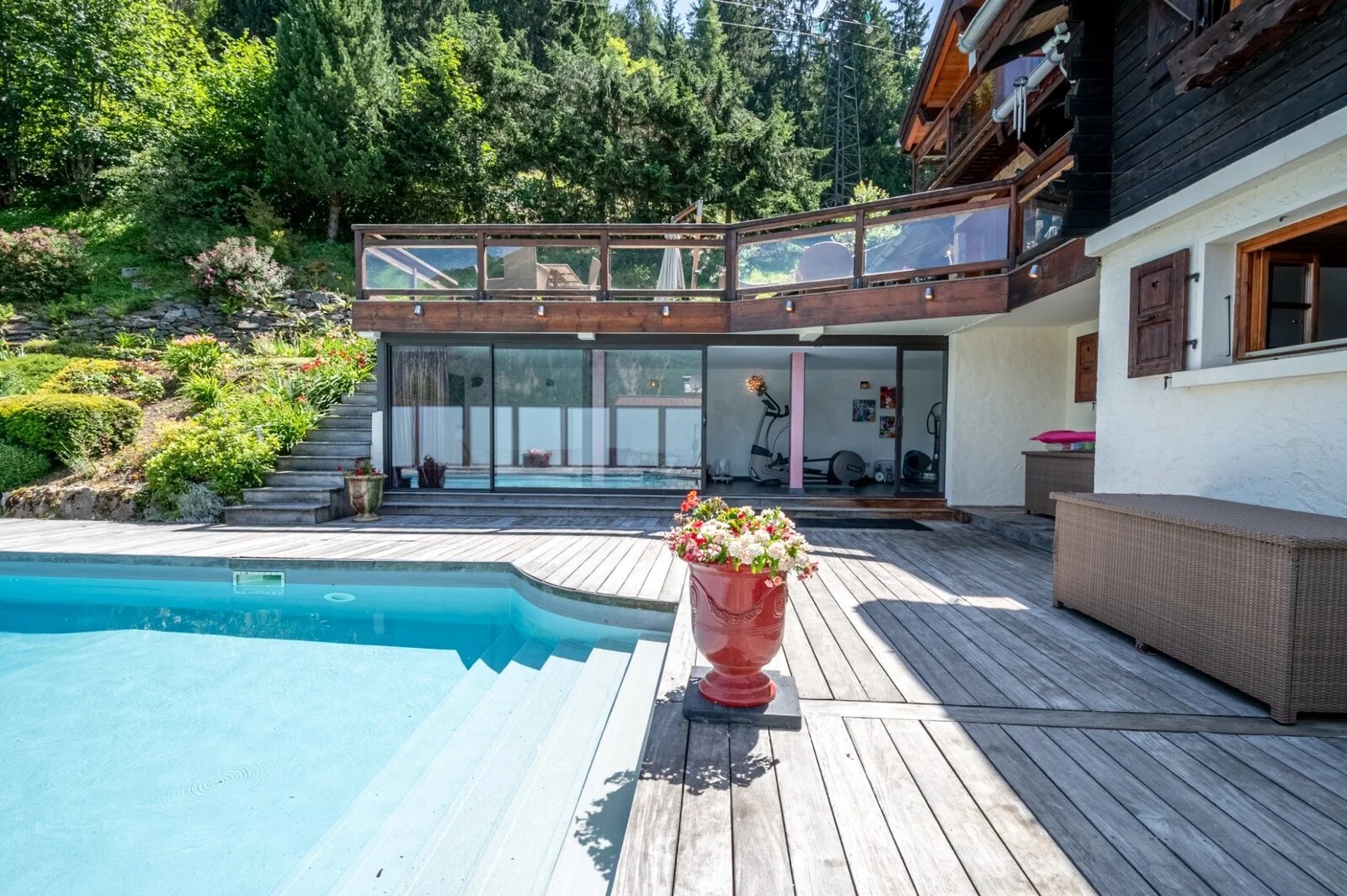 Situé aux Houches dans un secteur calme et proche du centre village, ce chalet de 241m² propose un bel espace de vie organisé autour de sa piscine chauffée et ses grandes terrasses ensoleillées.