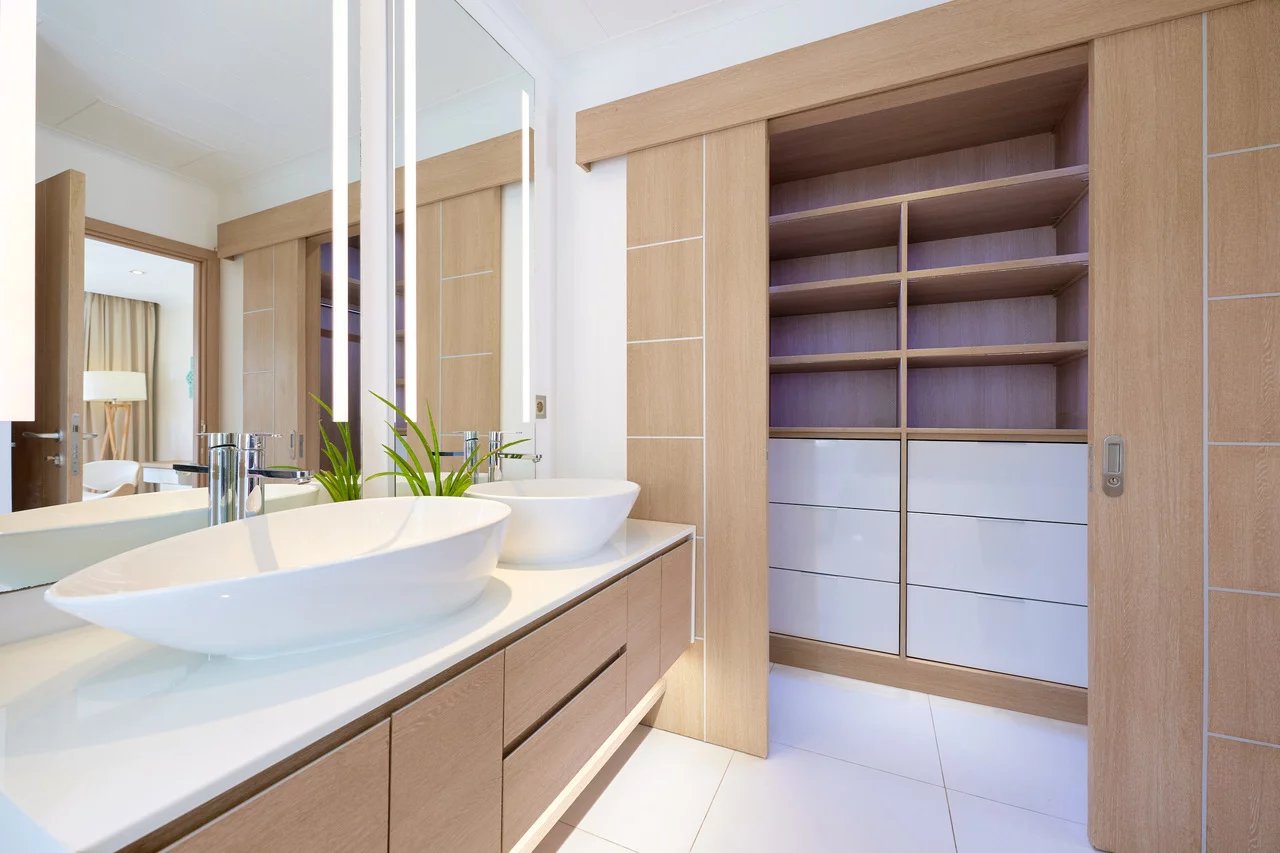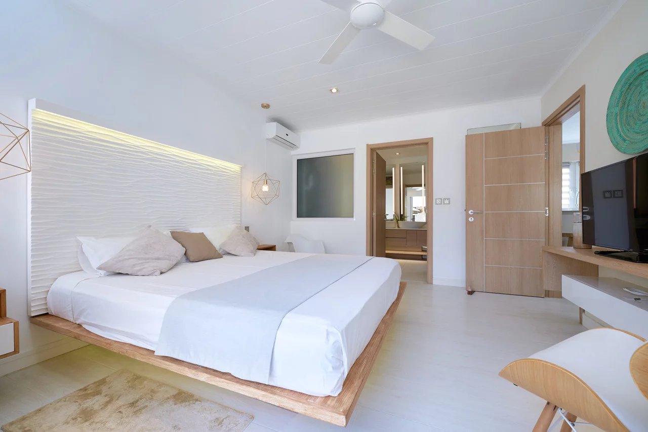 Villa de plain-pied comprenant 3 chambres à coucher, chacune avec sa salle de bain attenante.