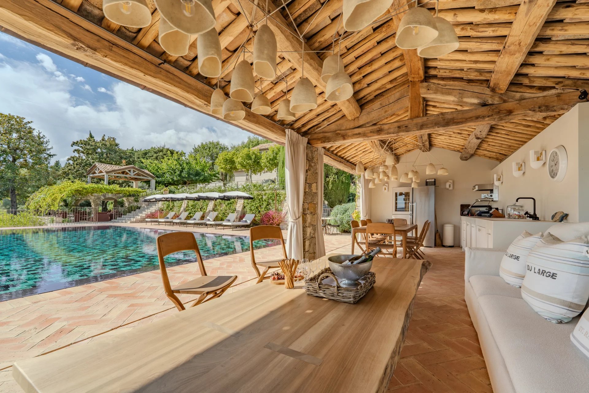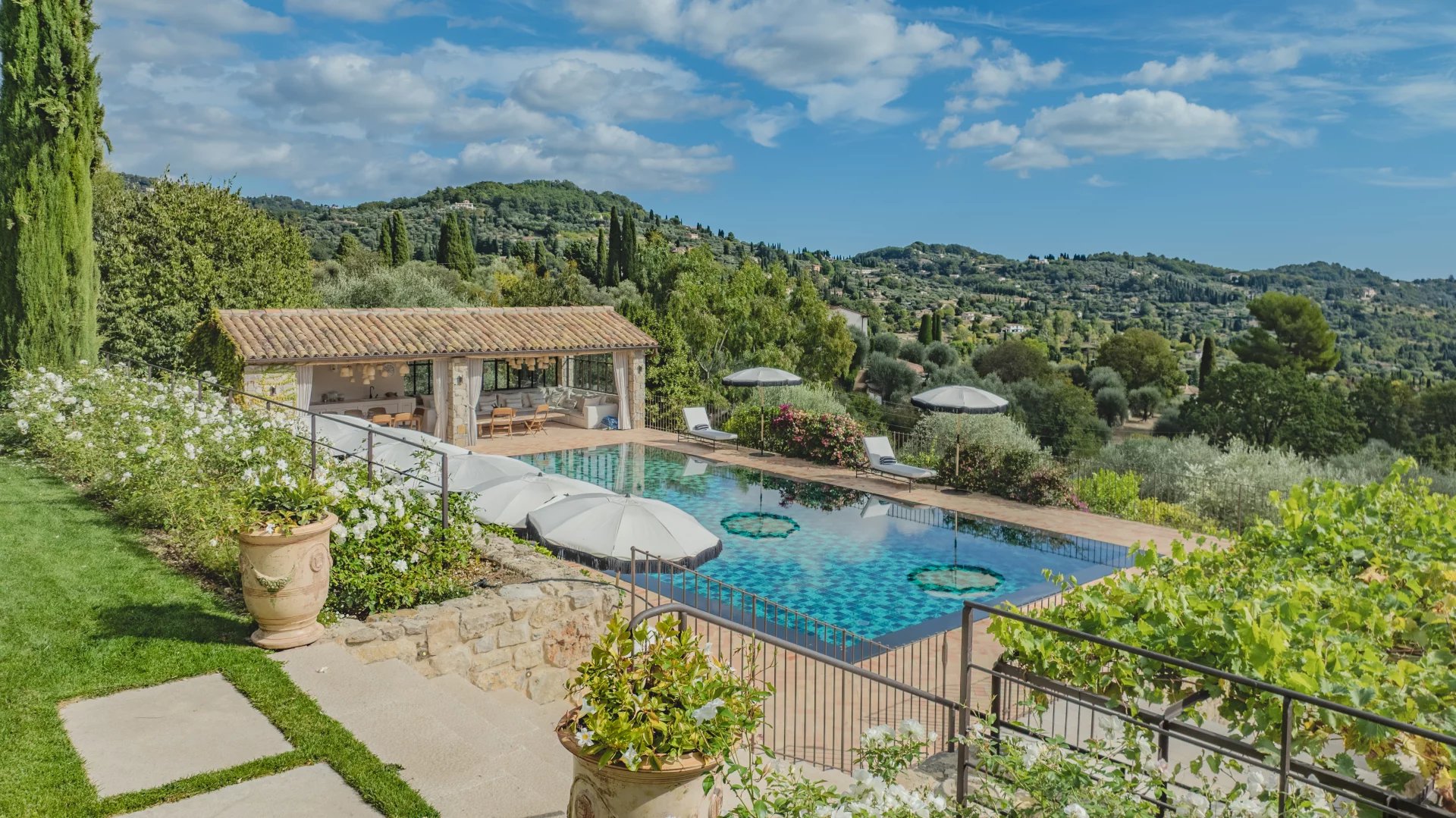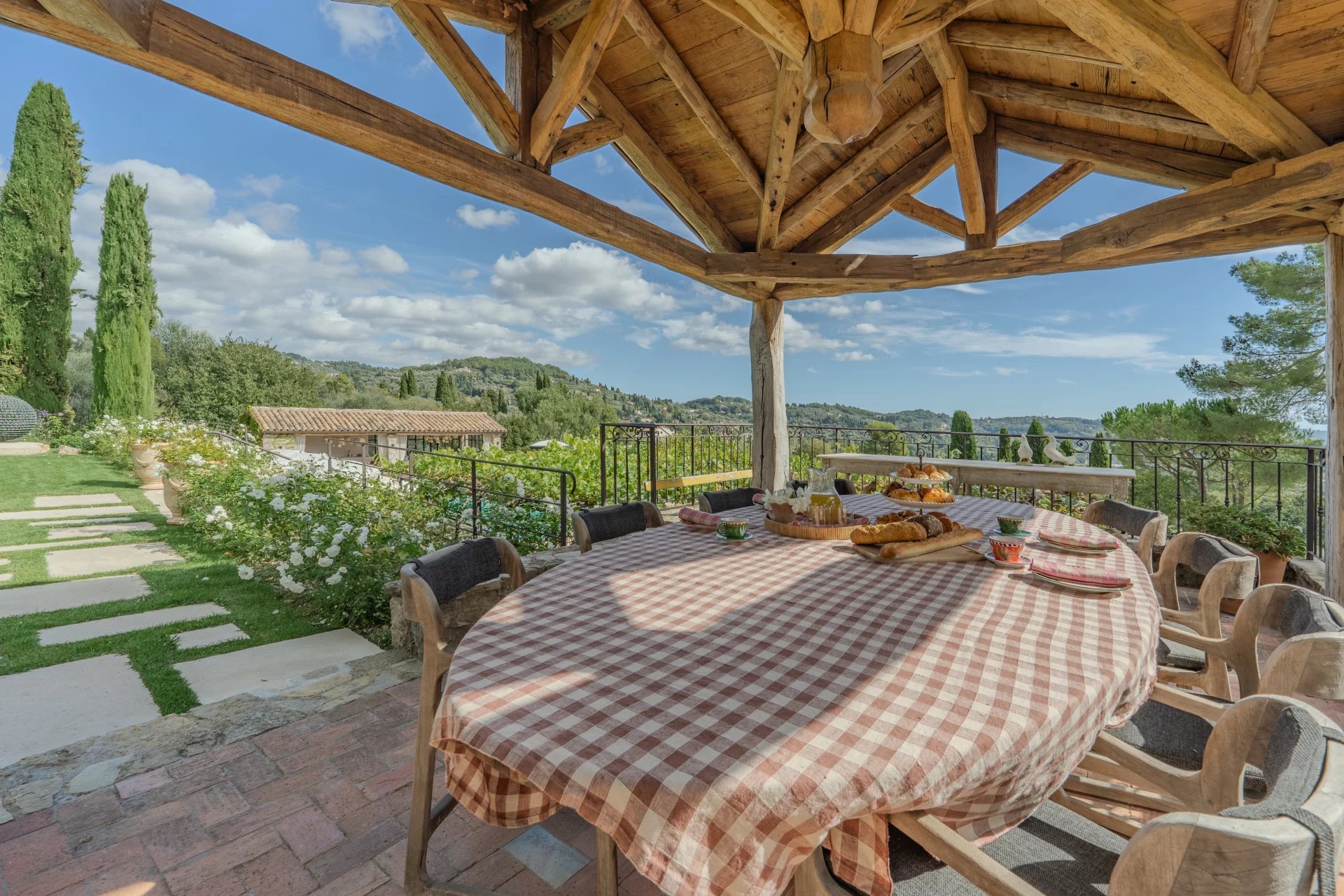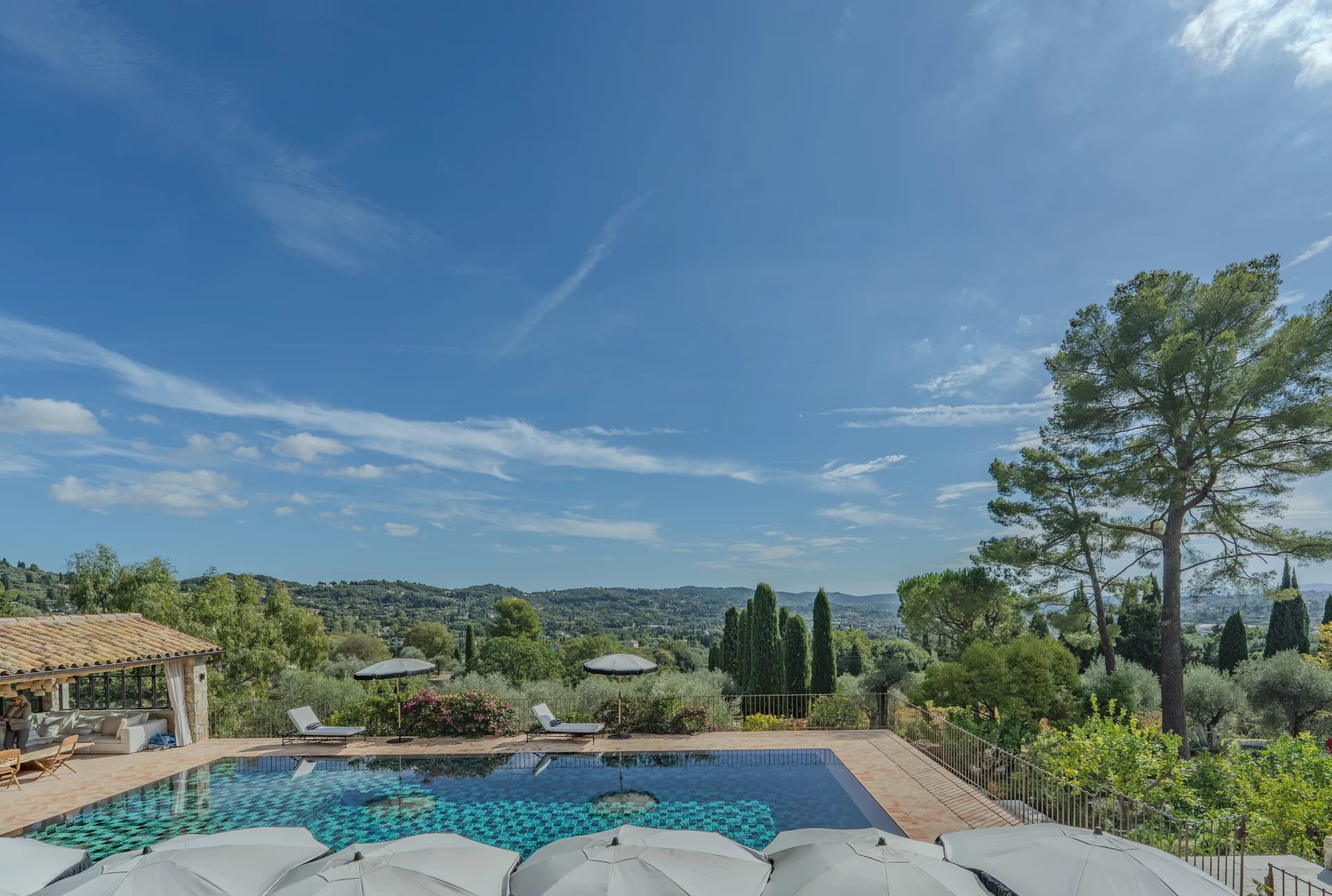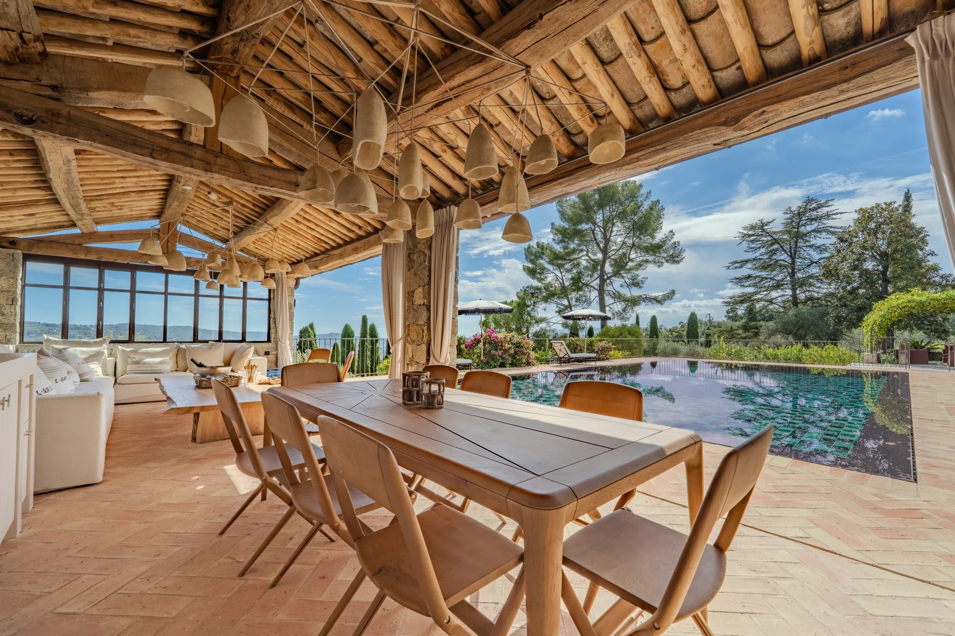 Plusieurs terrasses couvertes invitent à profiter pleinement de la douceur de vivre méditerranéenne, avec un panorama exceptionnel.