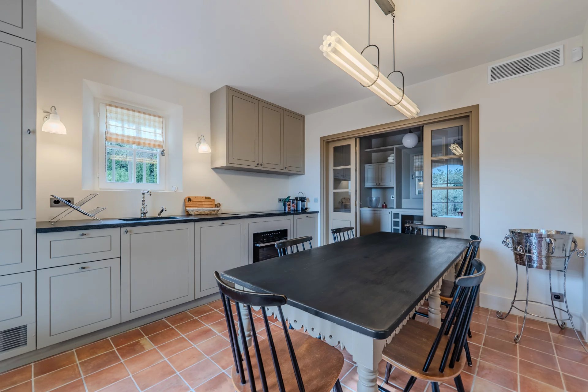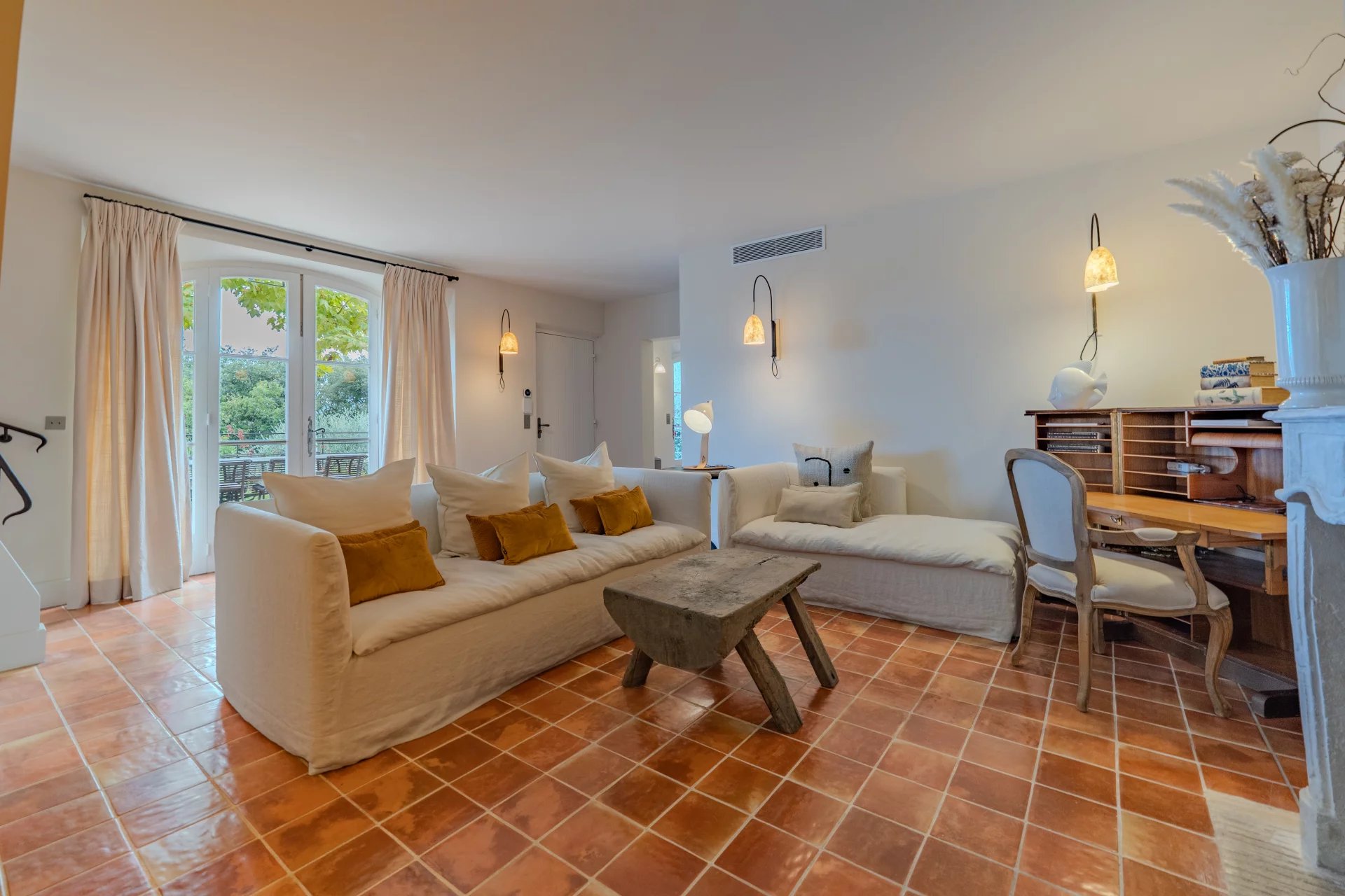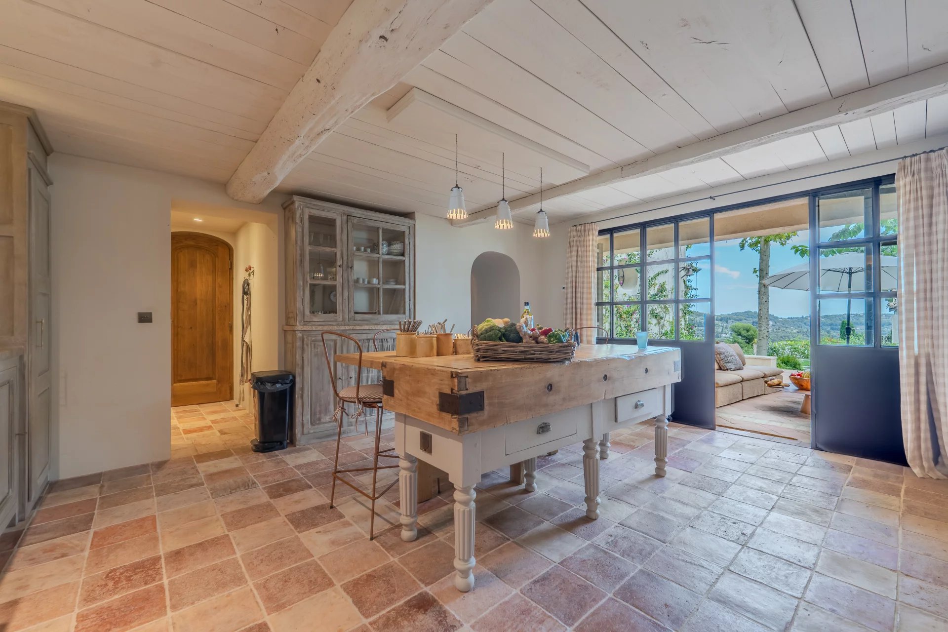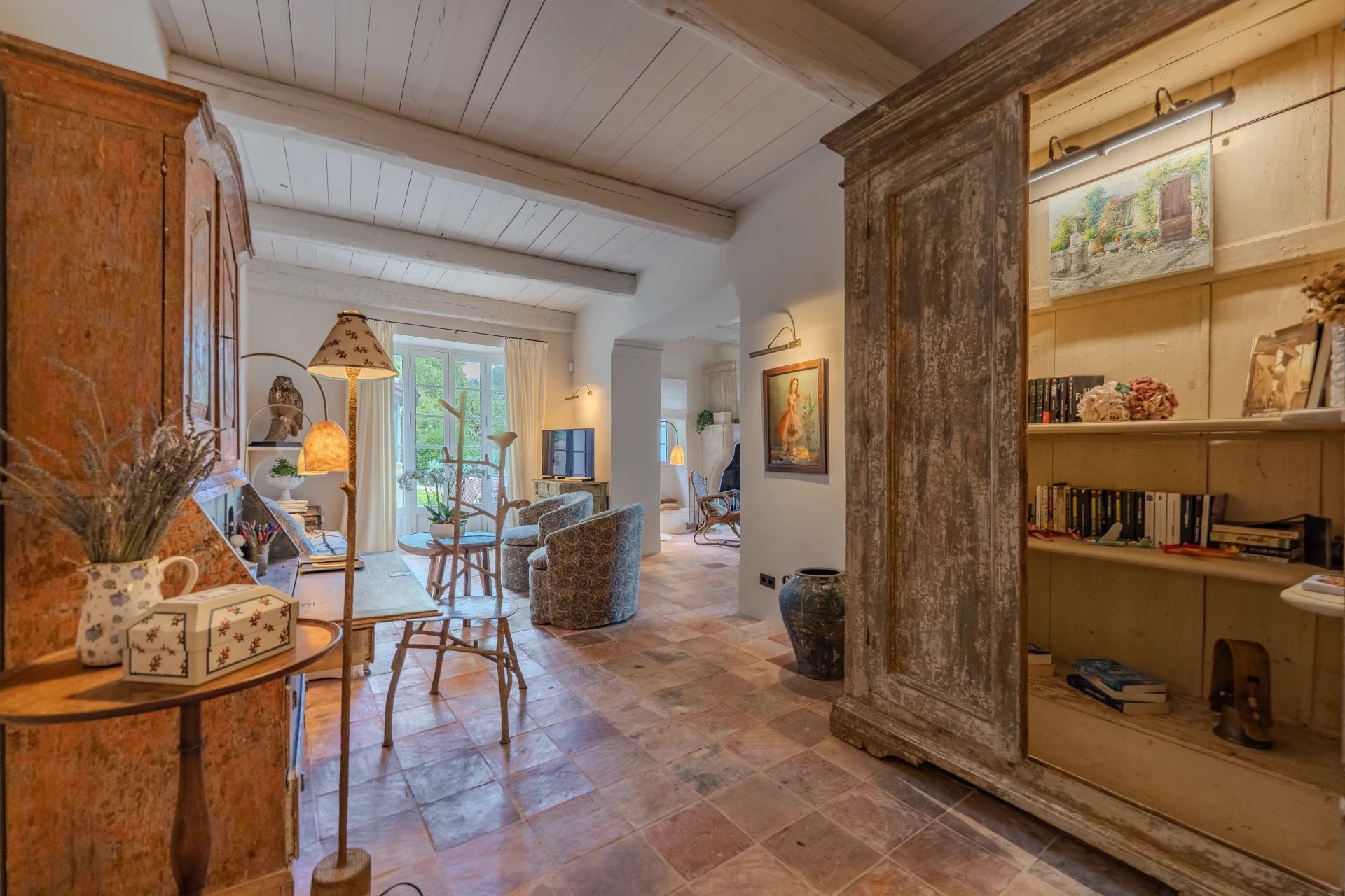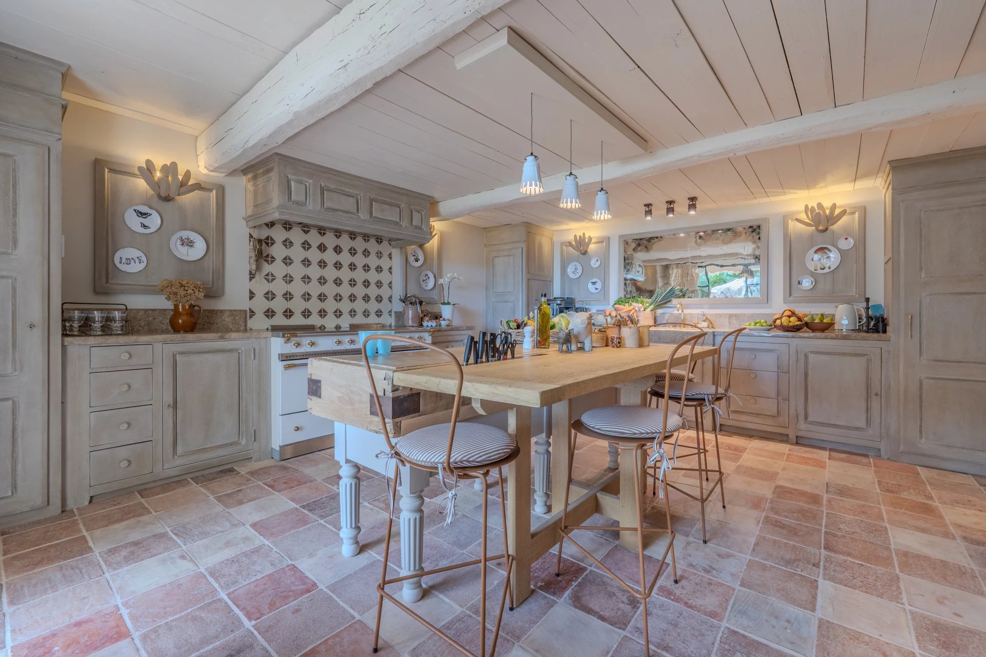 Répartie sur trois niveaux, cette belle bastide allie avec harmonie le charme authentique à un confort contemporain. Le rez-de-chaussée accueille un salon raffiné avec une grande cheminée, un coin TV chaleureux, une salle à manger également avec cheminée – ainsi qu’une cuisine provençale donnant accès à une terrasse conviviale. Une cave à vin climatisée complète ce niveau.
