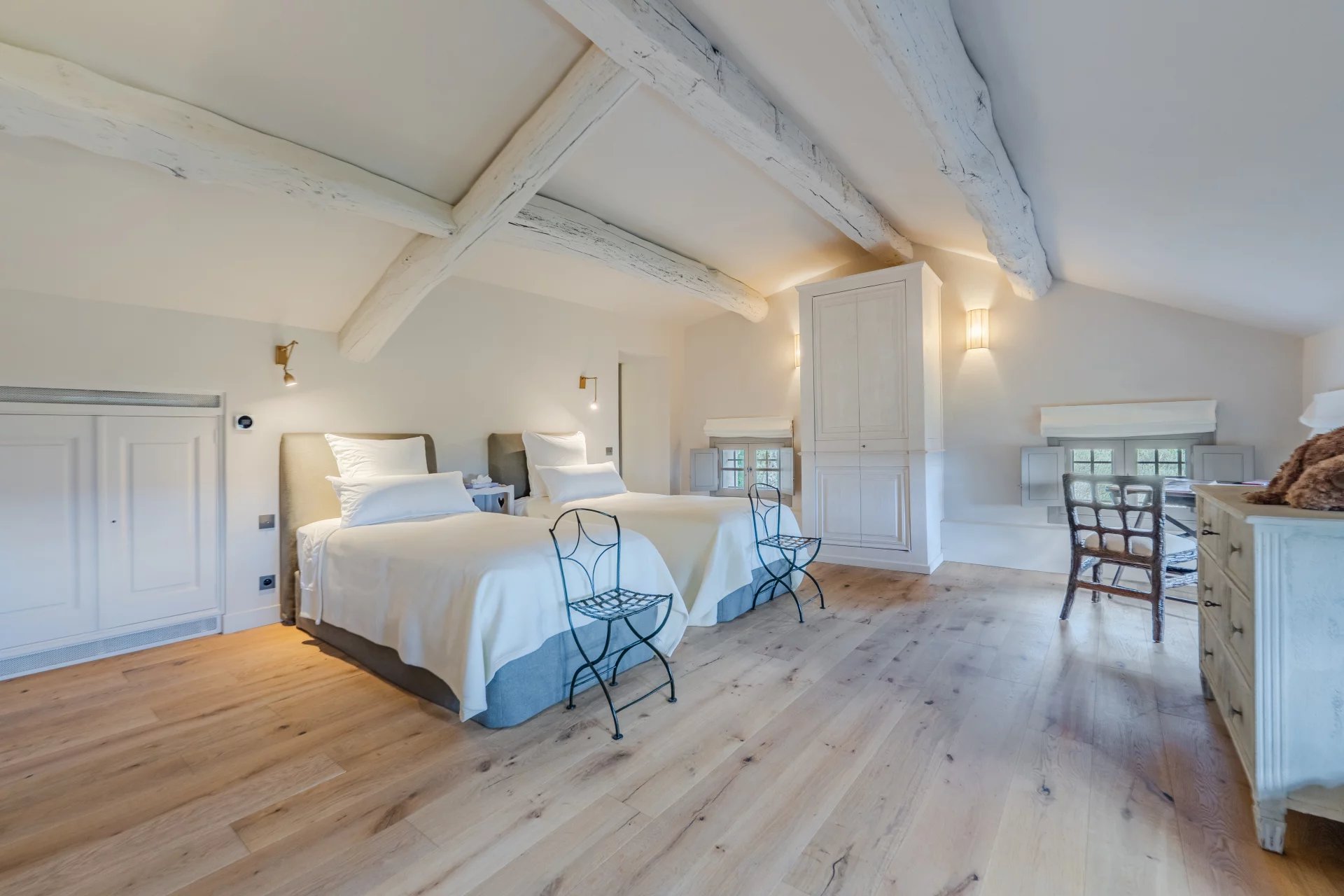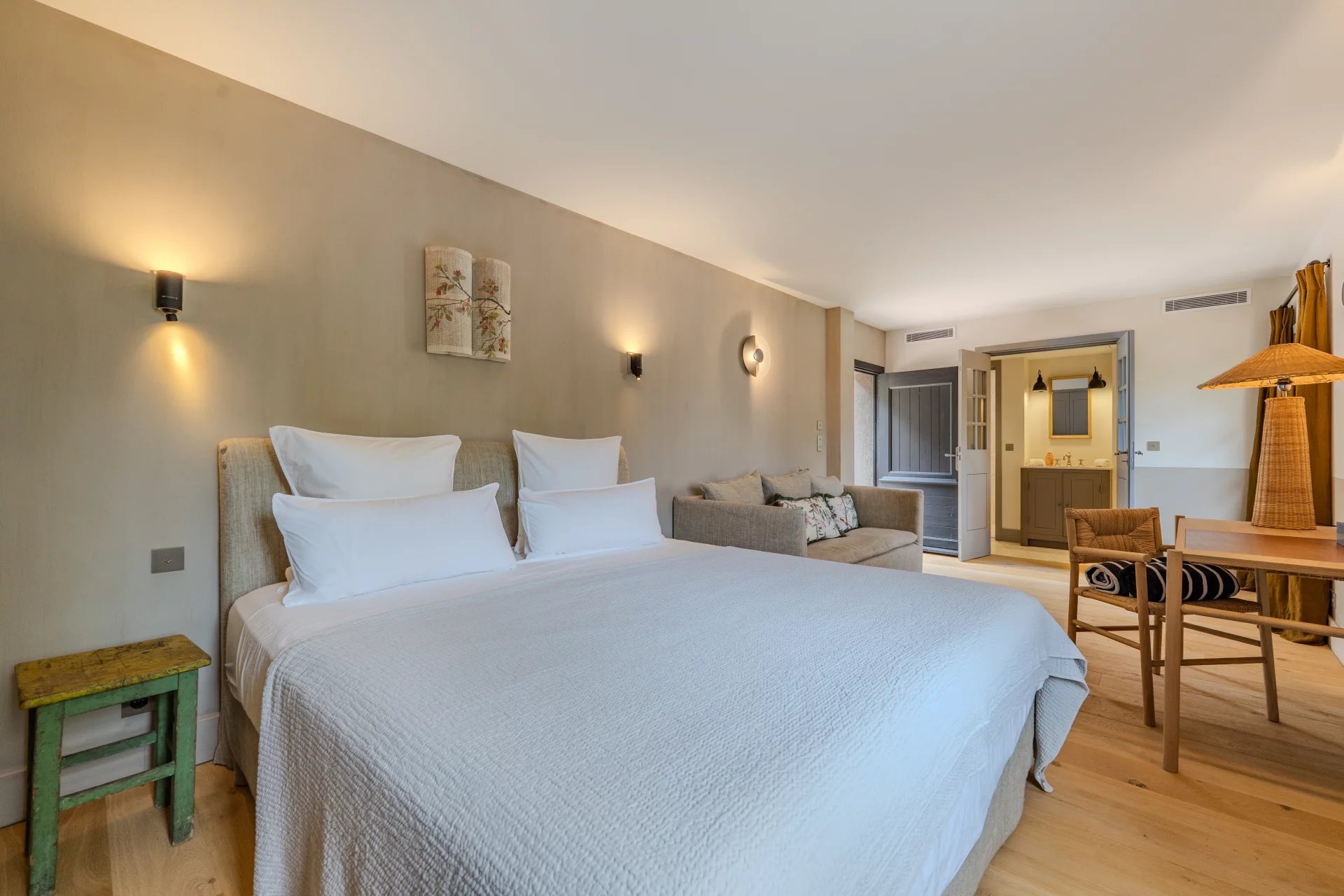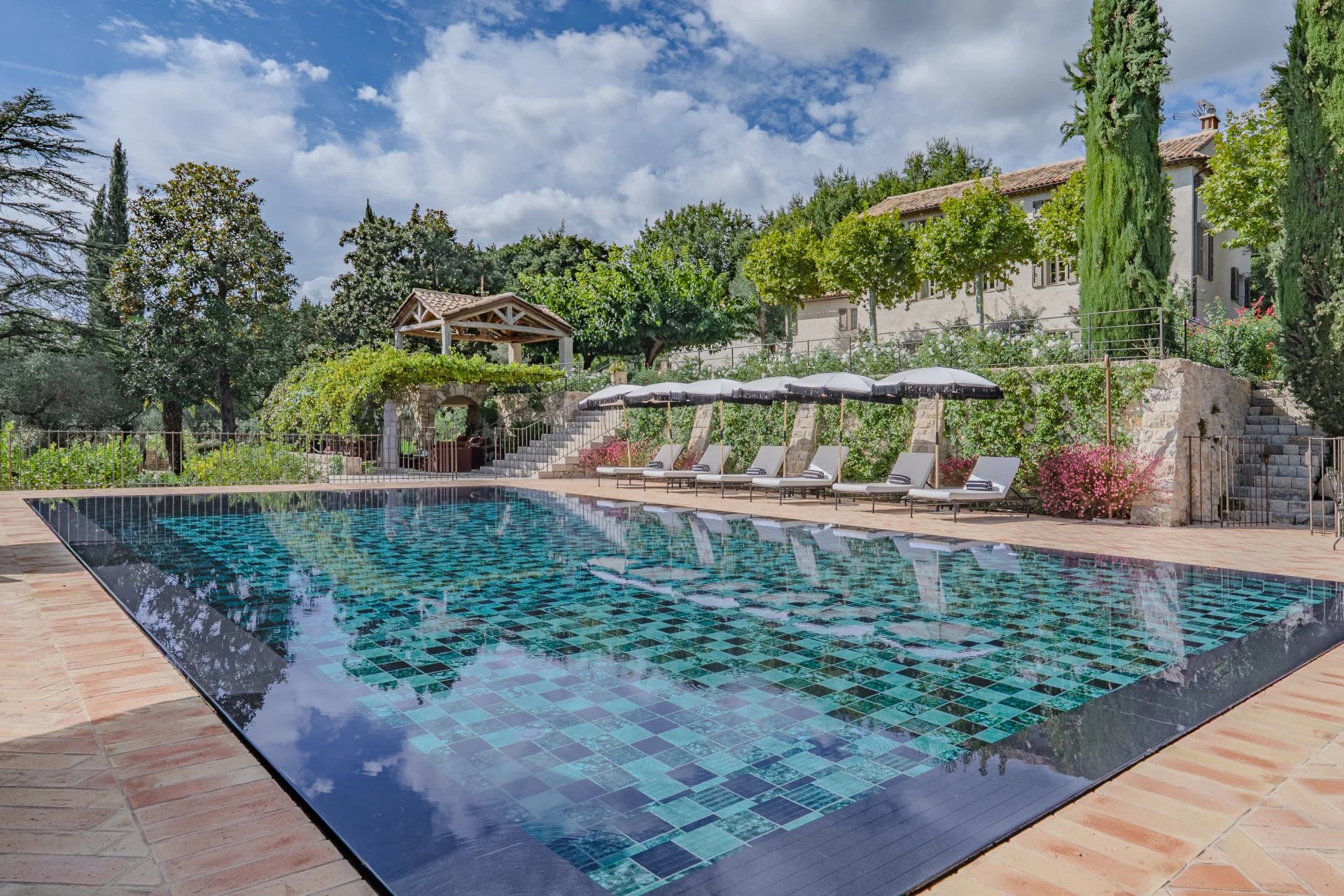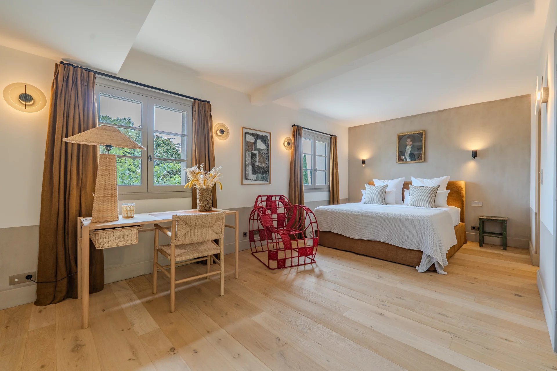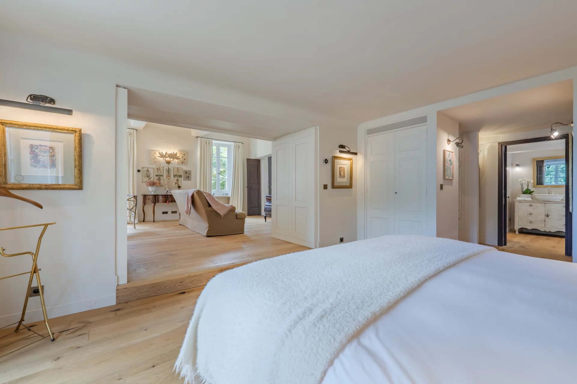 Les étages supérieurs abritent quatre superbes suites, dont une somptueuse suite parentale avec bureau privé. Deux studios indépendants, attenants à la bastide principale, offrent des espaces généreux supplémentaires. Une buanderie spacieuse et un double garage complètent ce bien d’exception.