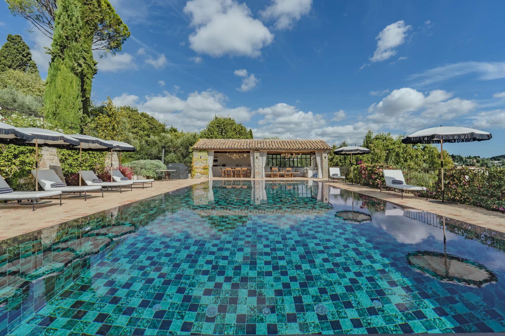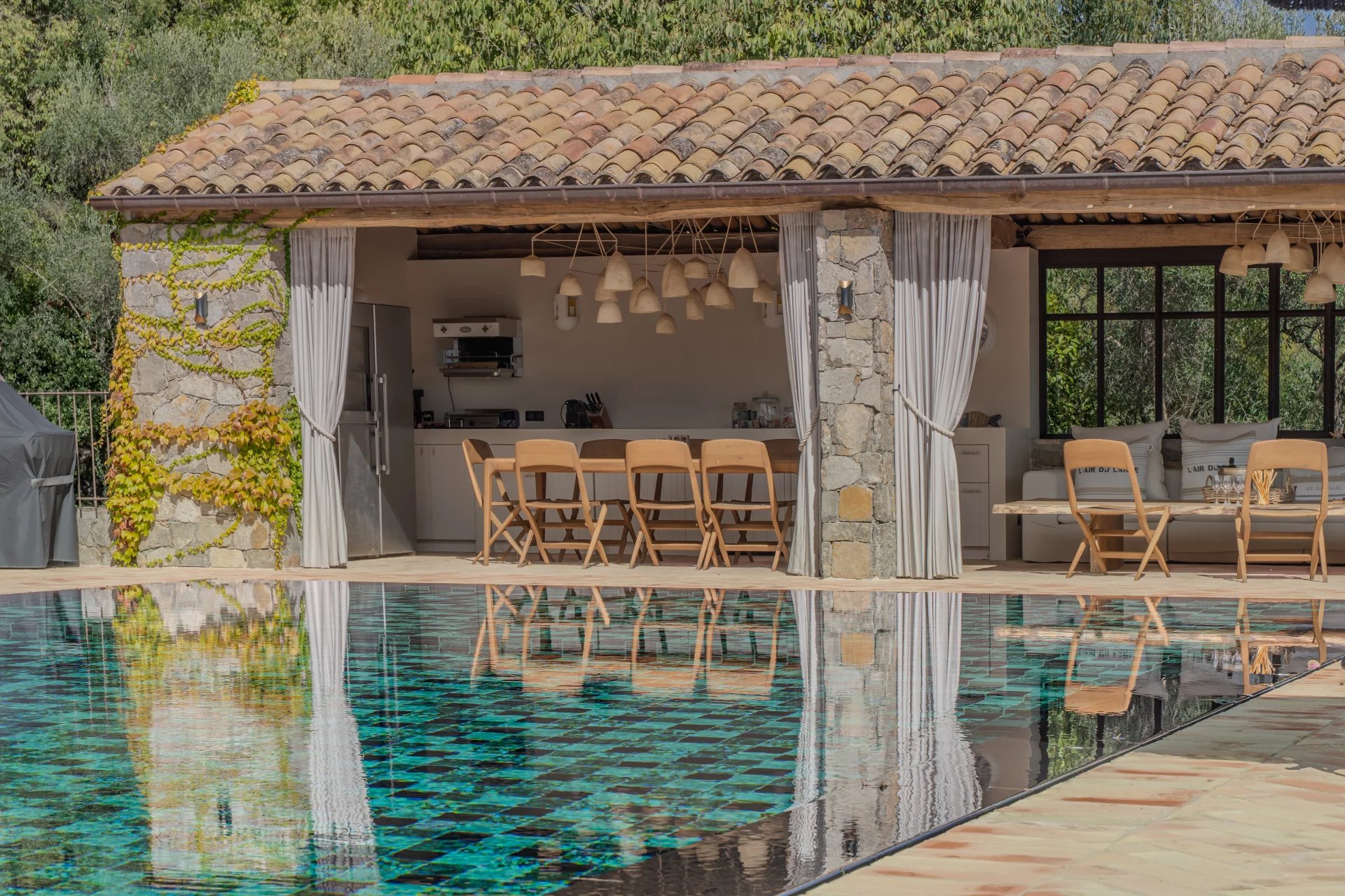 La piscine miroir chauffée à débordement, accompagnée d’un pool house avec cuisine équipée, d’un sauna et d’un spa, promet un cadre de détente incomparable. Un court de tennis neuf et éclairé complète cet ensemble dédié aux loisirs.